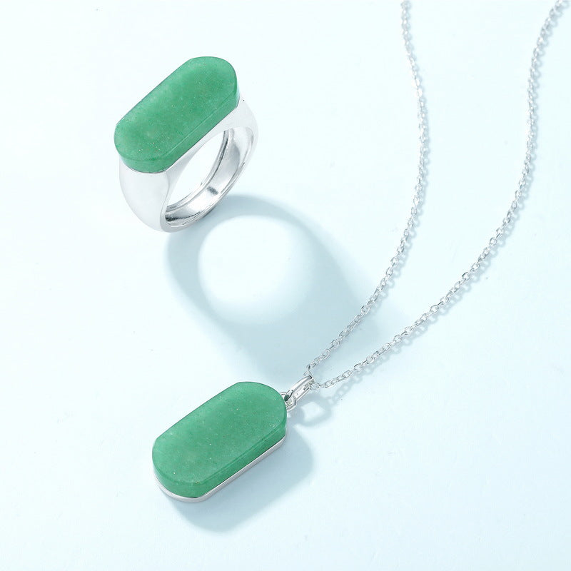 S925 純銀鍍亮銀歐美風首飾套組|天然東陵玉幾何造型 質感高級首選