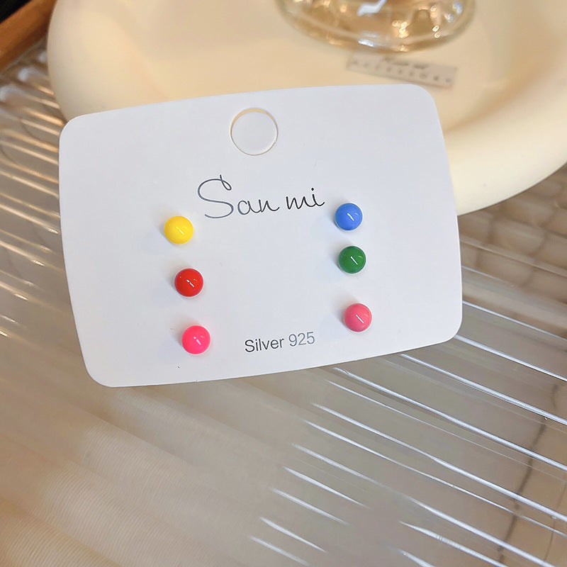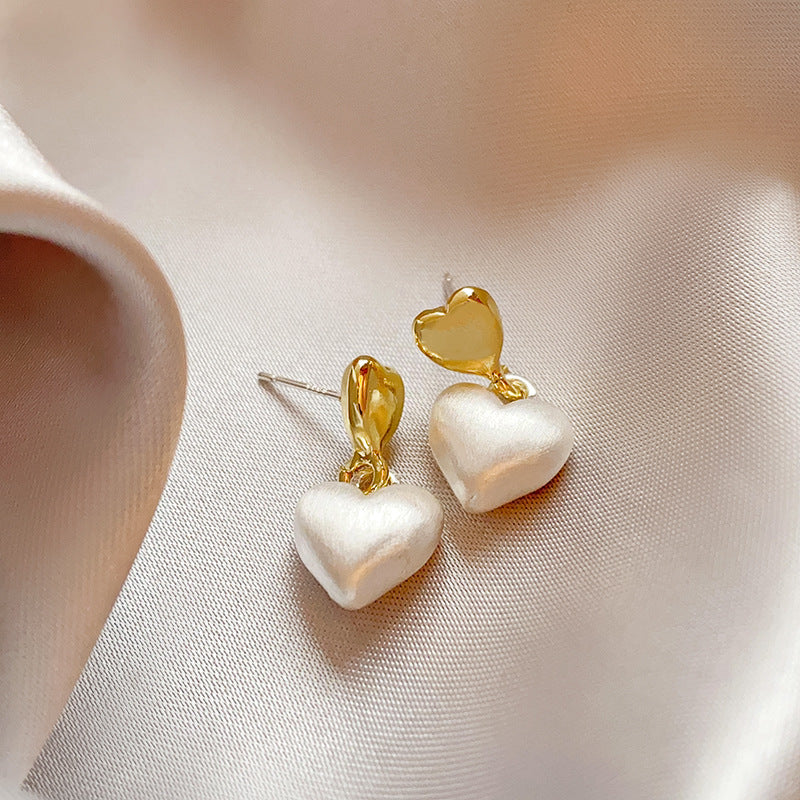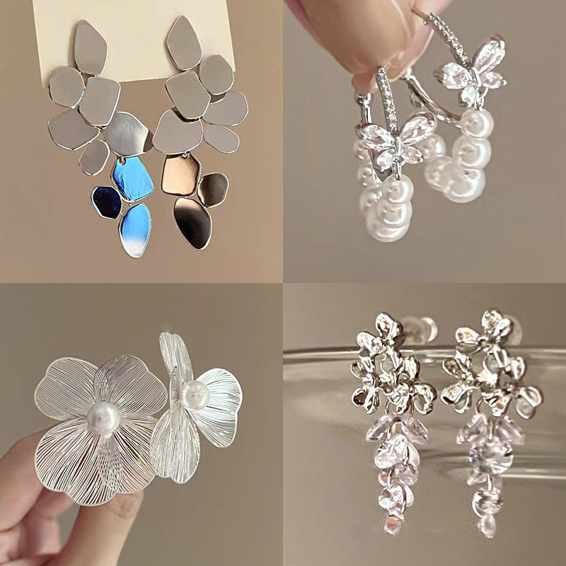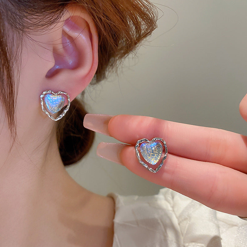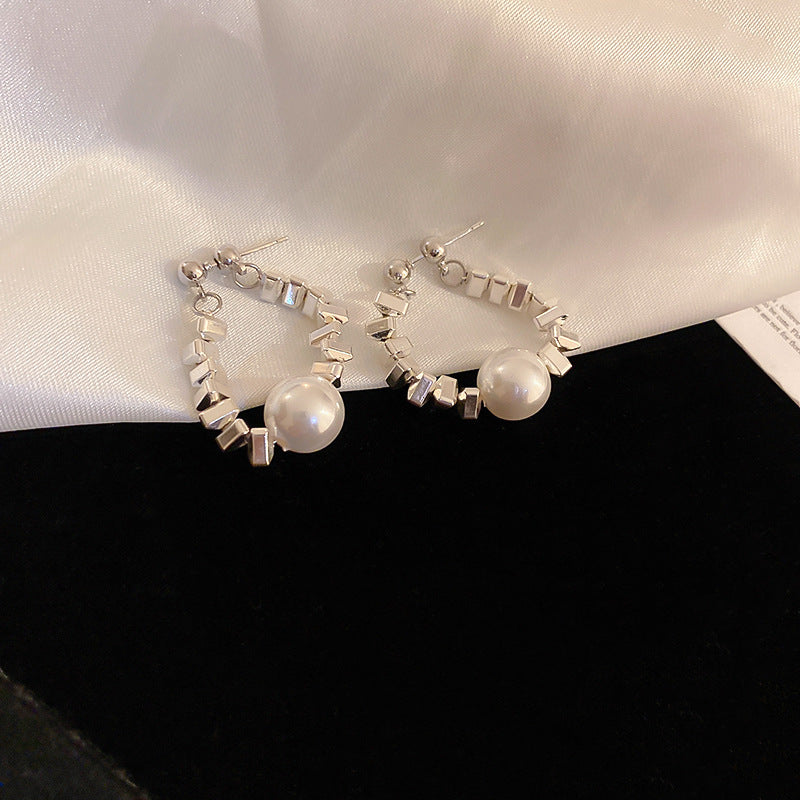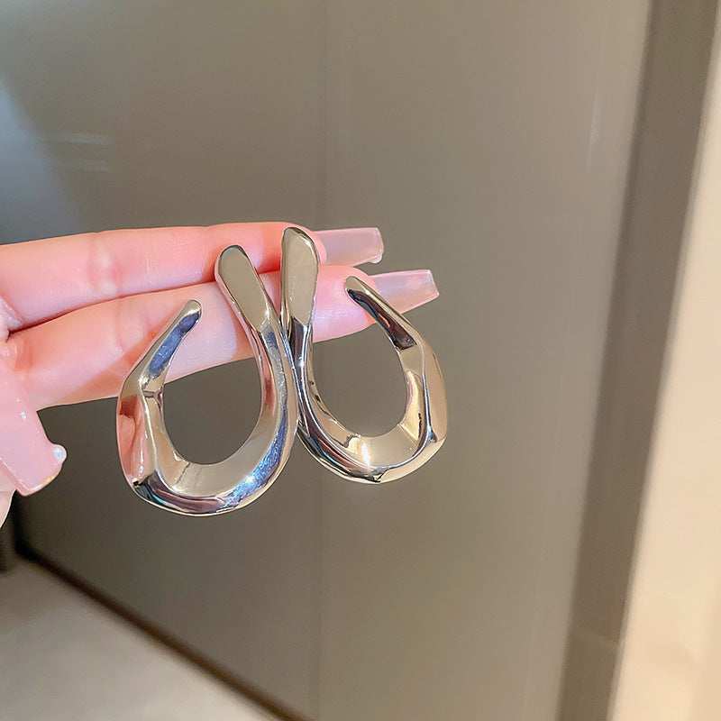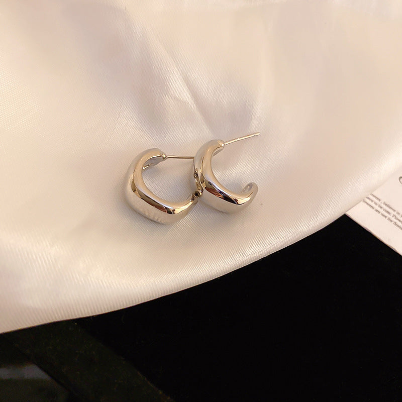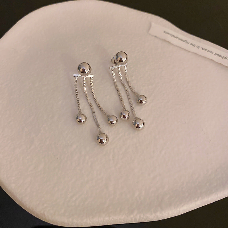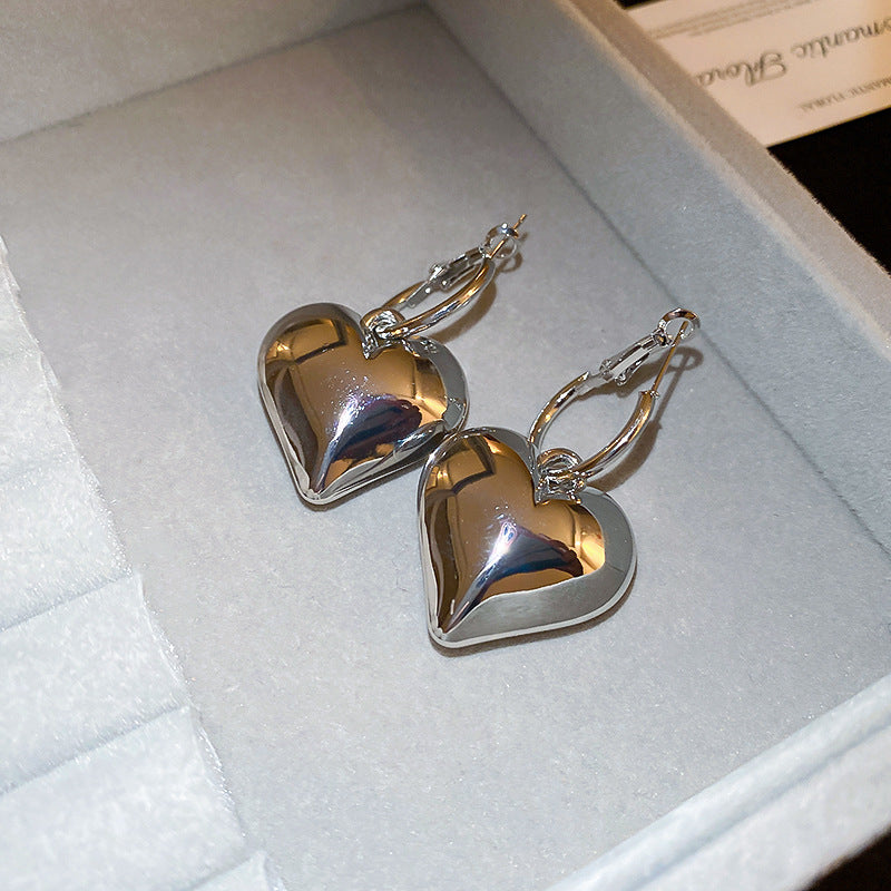 銀針跨境高級感銀色幾何圓珠愛心耳釘小衆個性耳環冷淡風耳飾