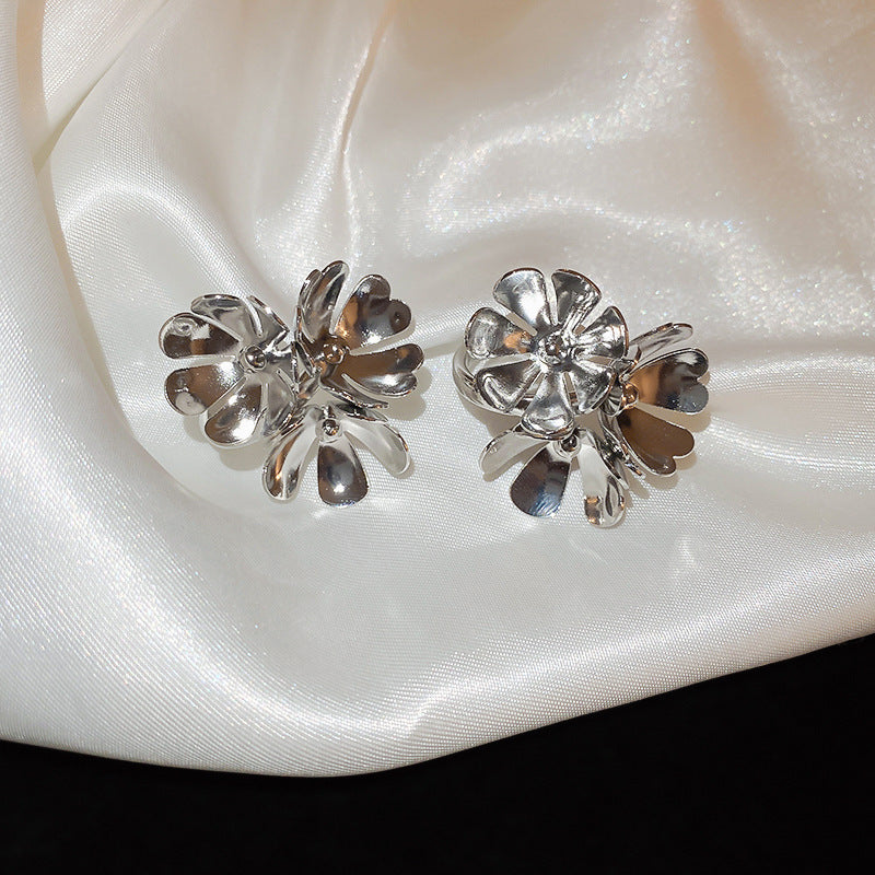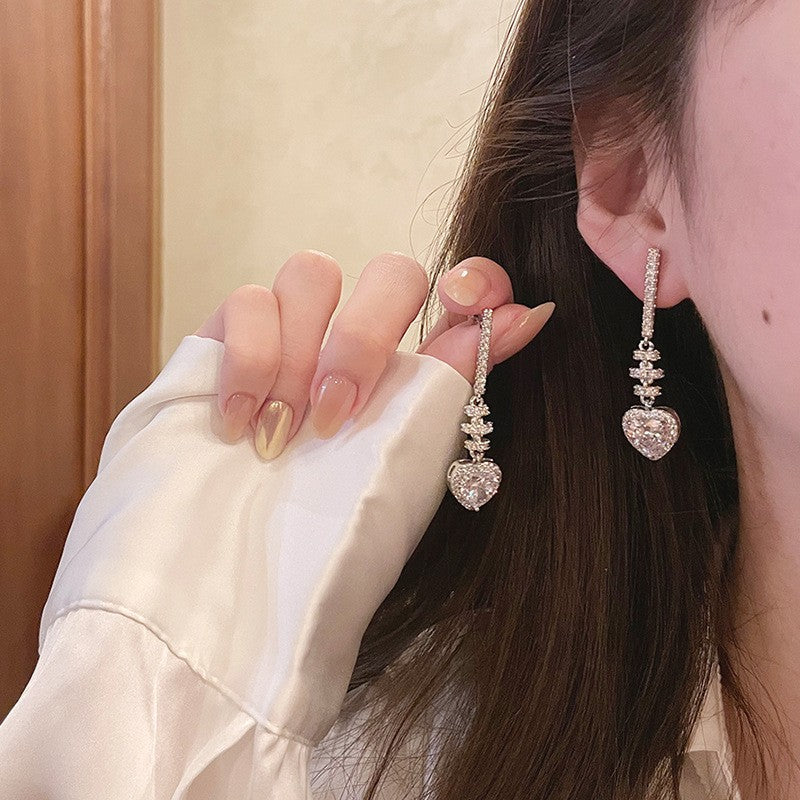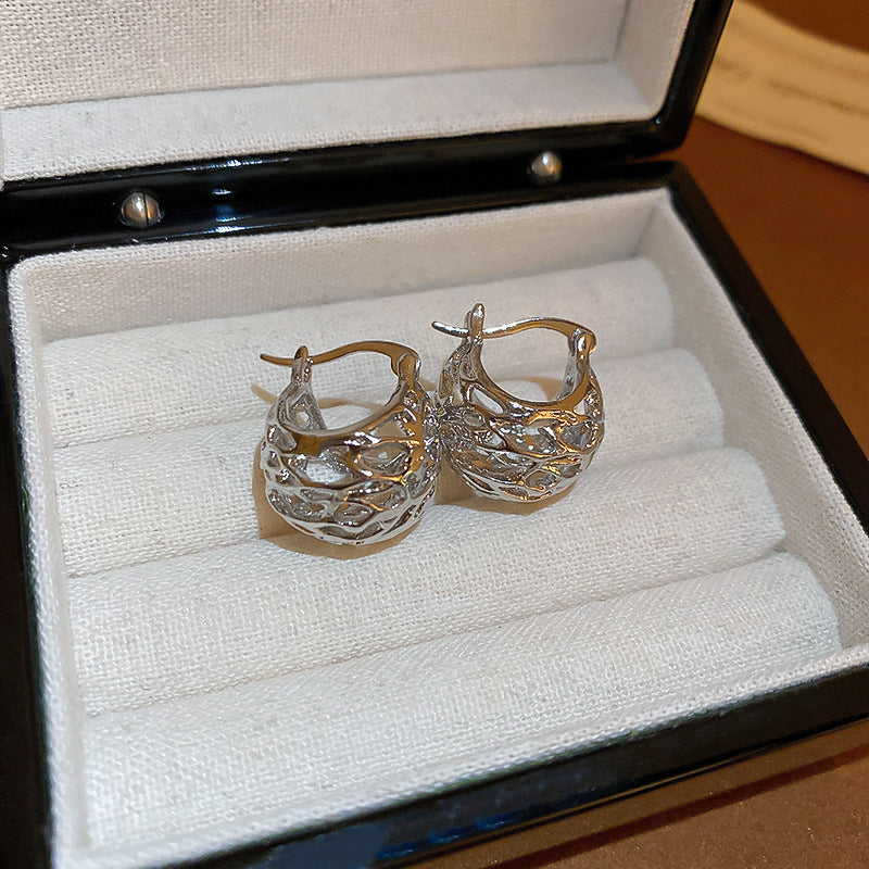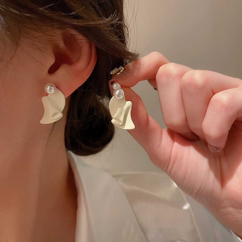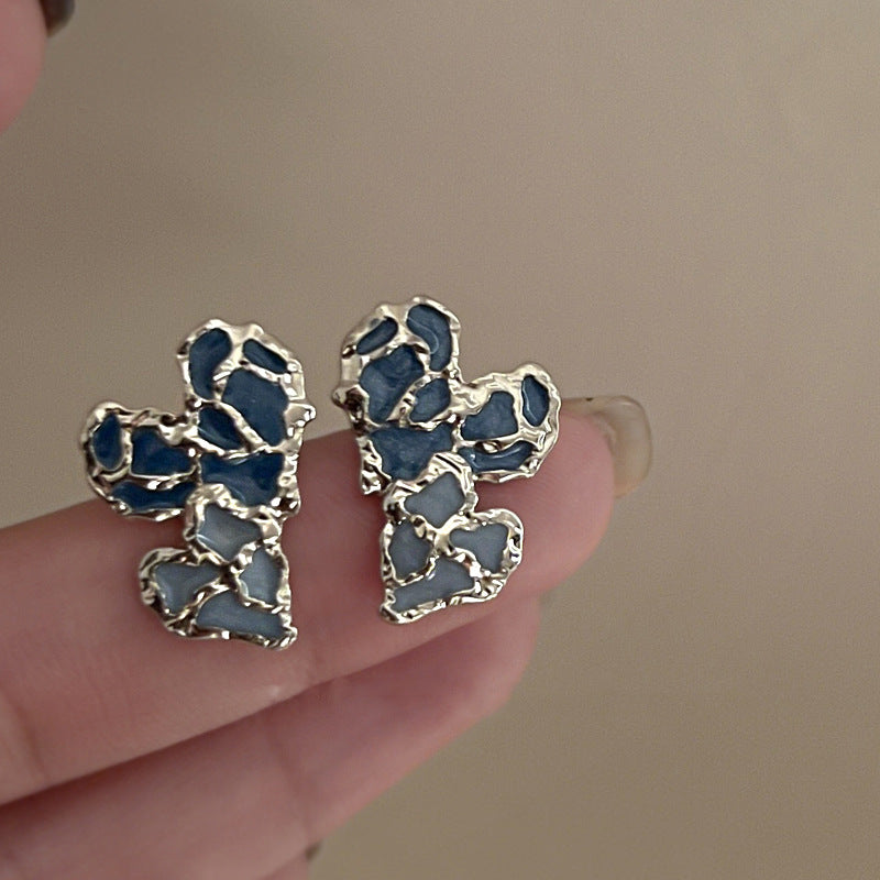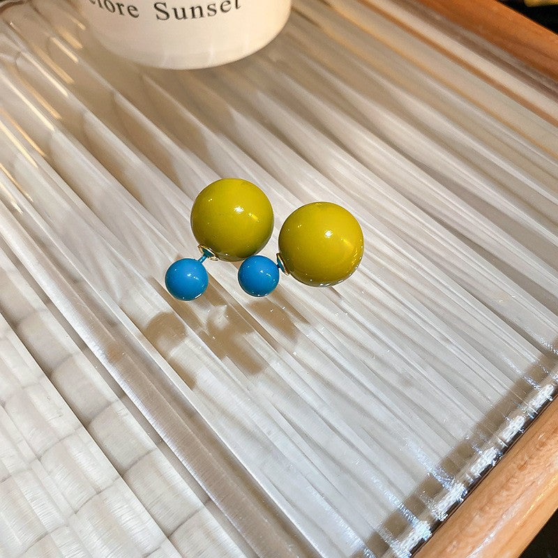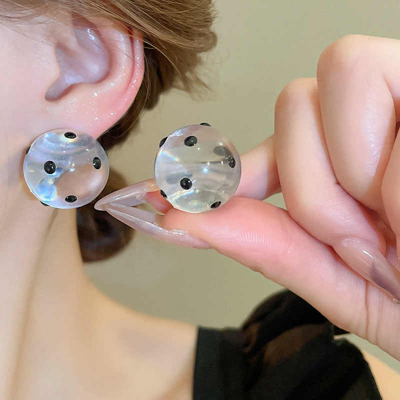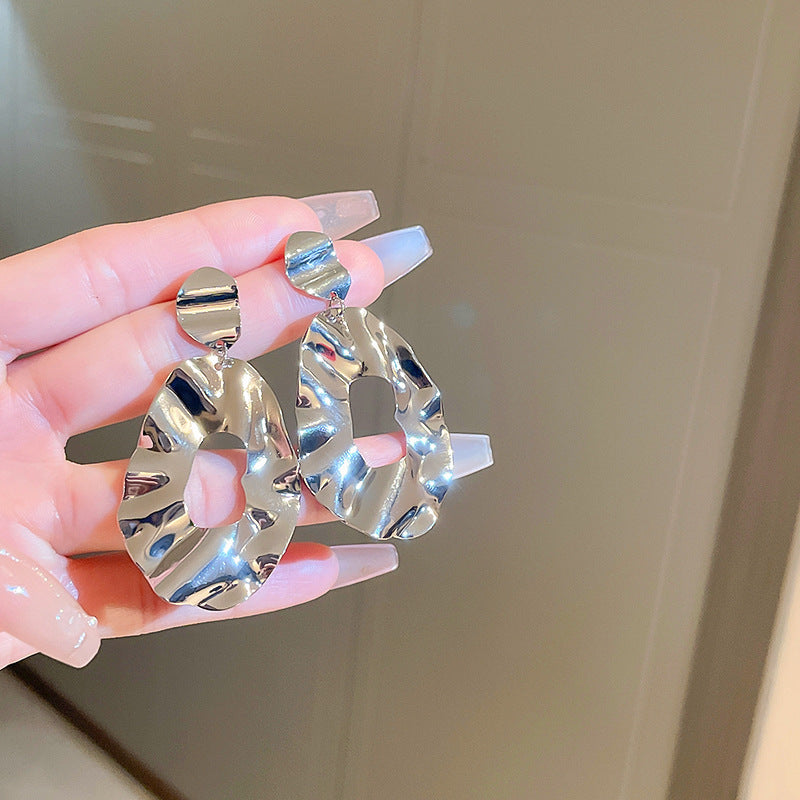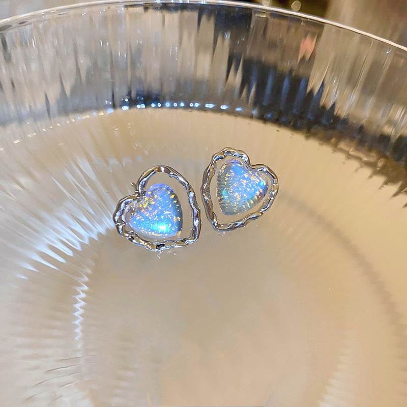 銀針跨境高級感銀色幾何圓珠愛心耳釘小衆個性耳環冷淡風耳飾