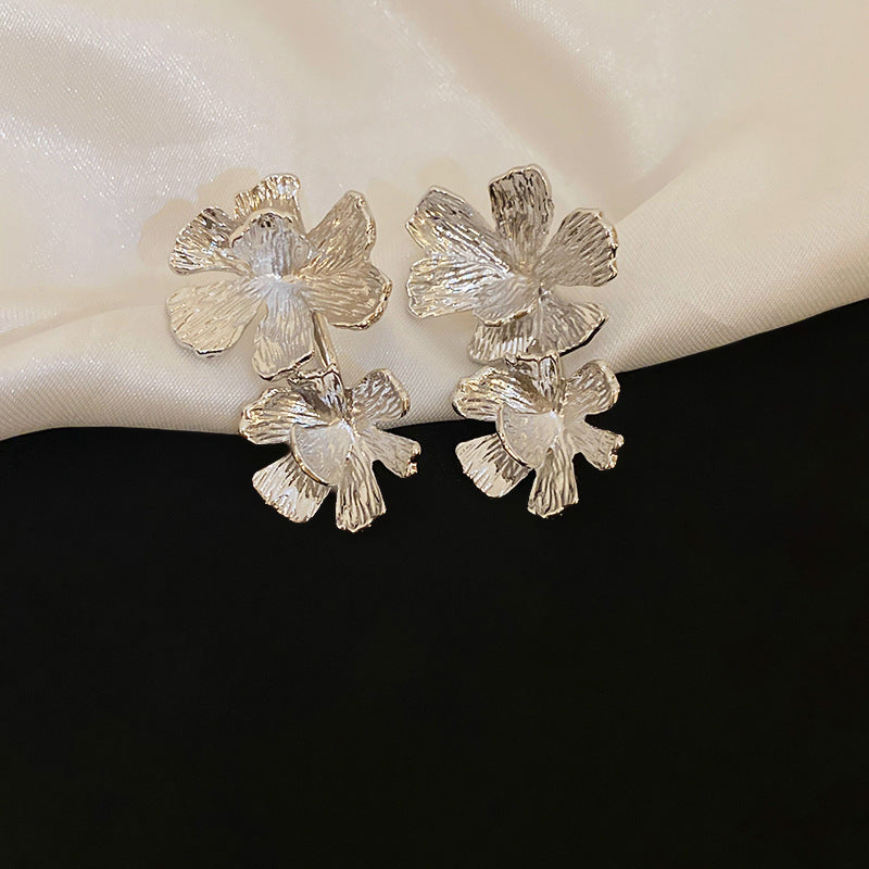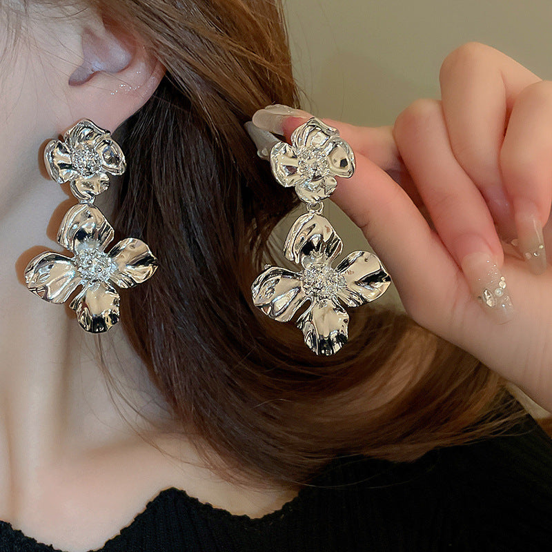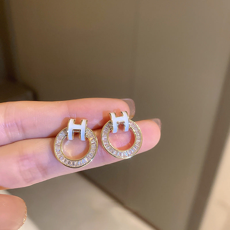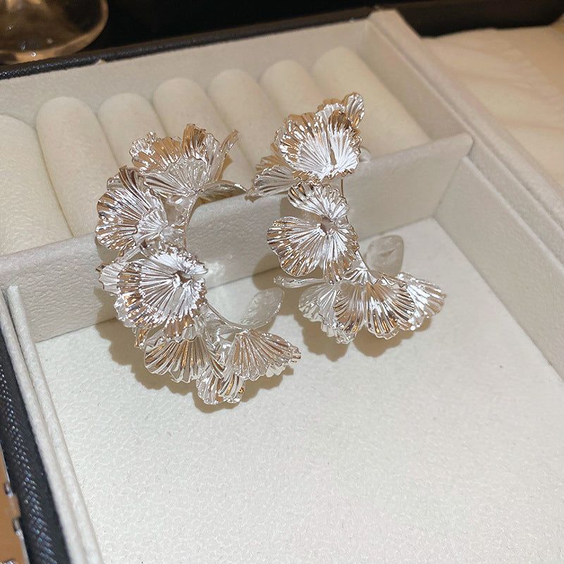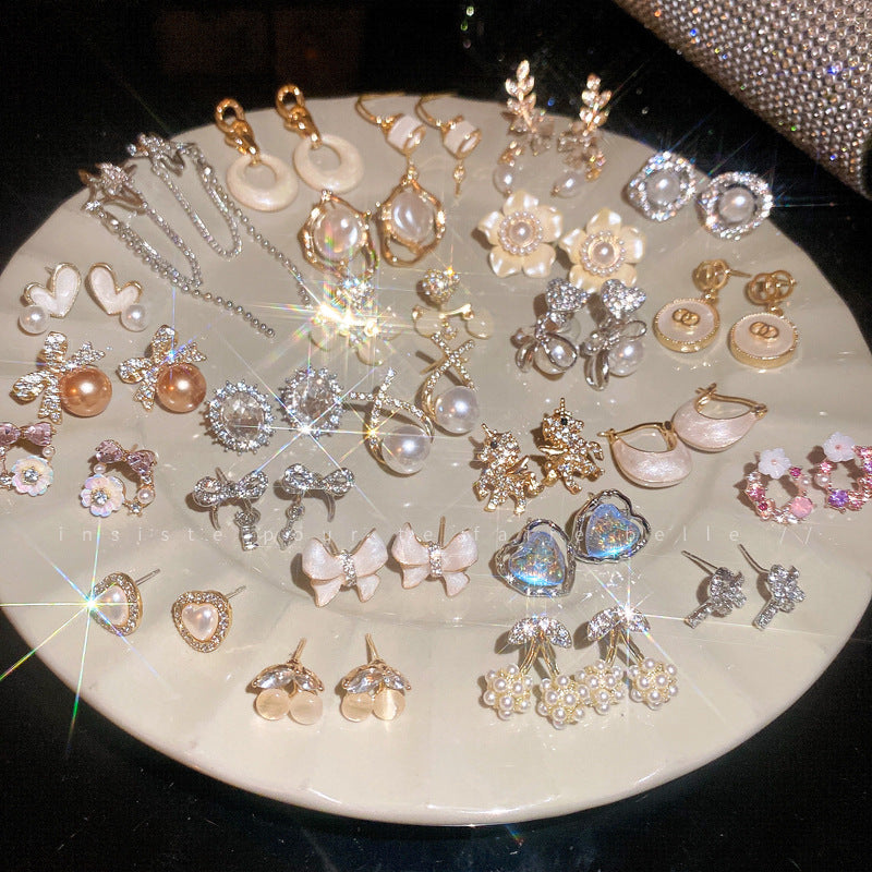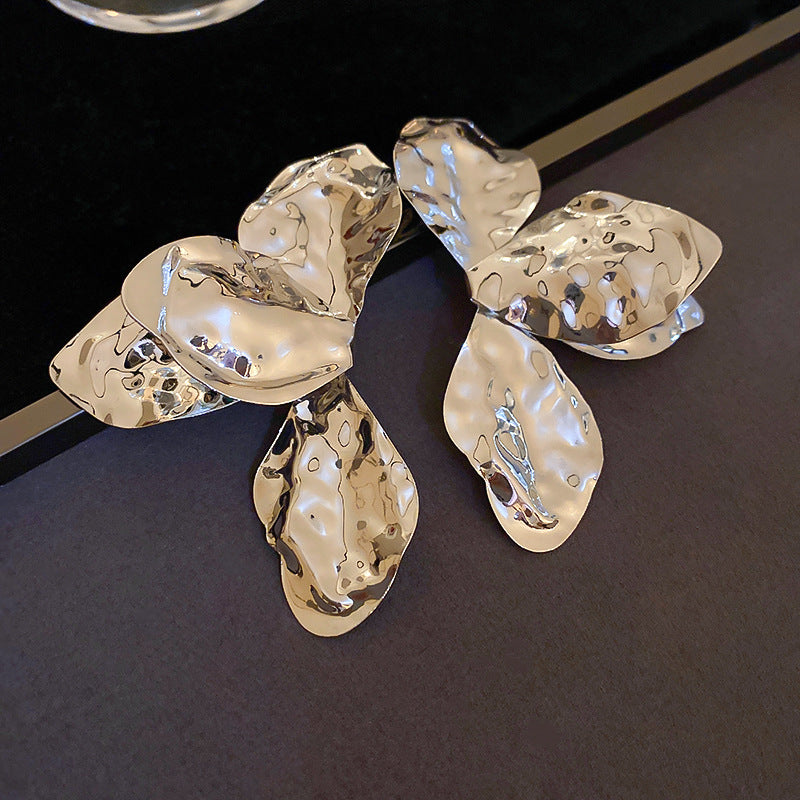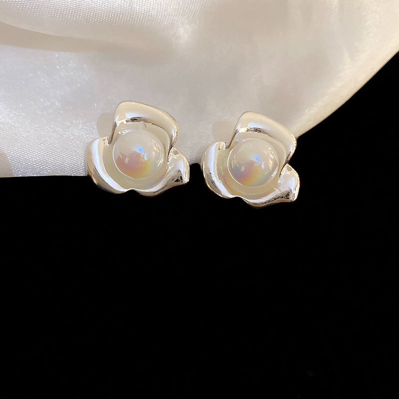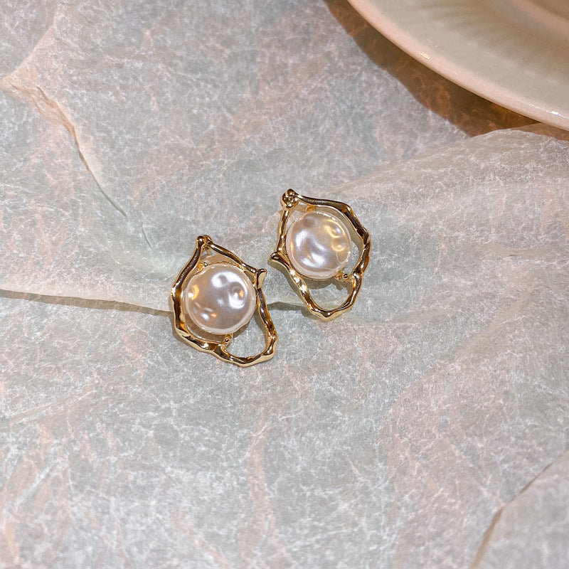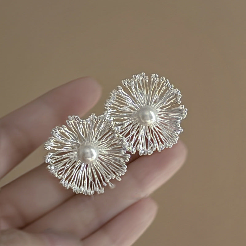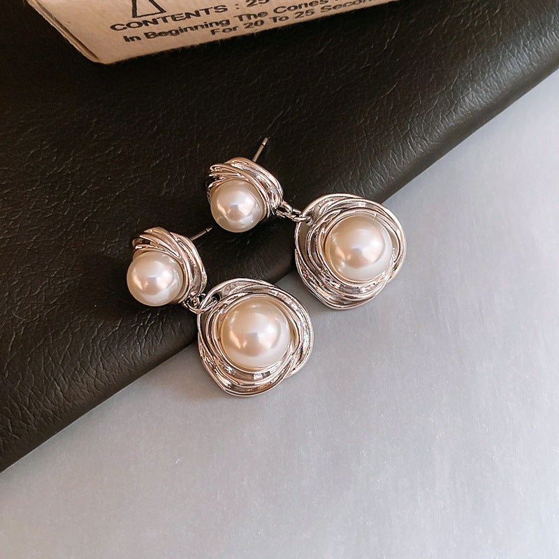 銀針跨境高級感銀色幾何圓珠愛心耳釘小衆個性耳環冷淡風耳飾
