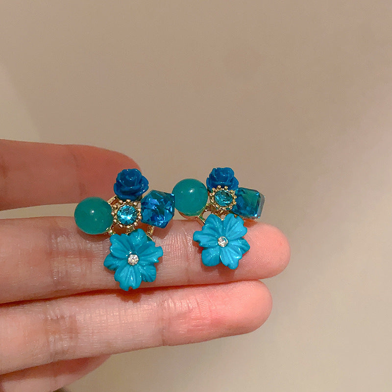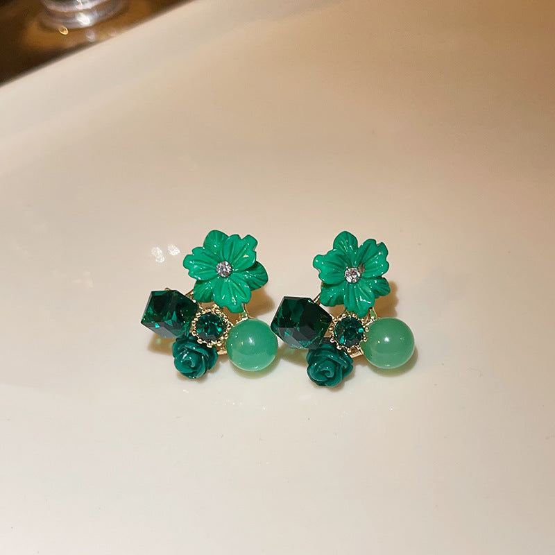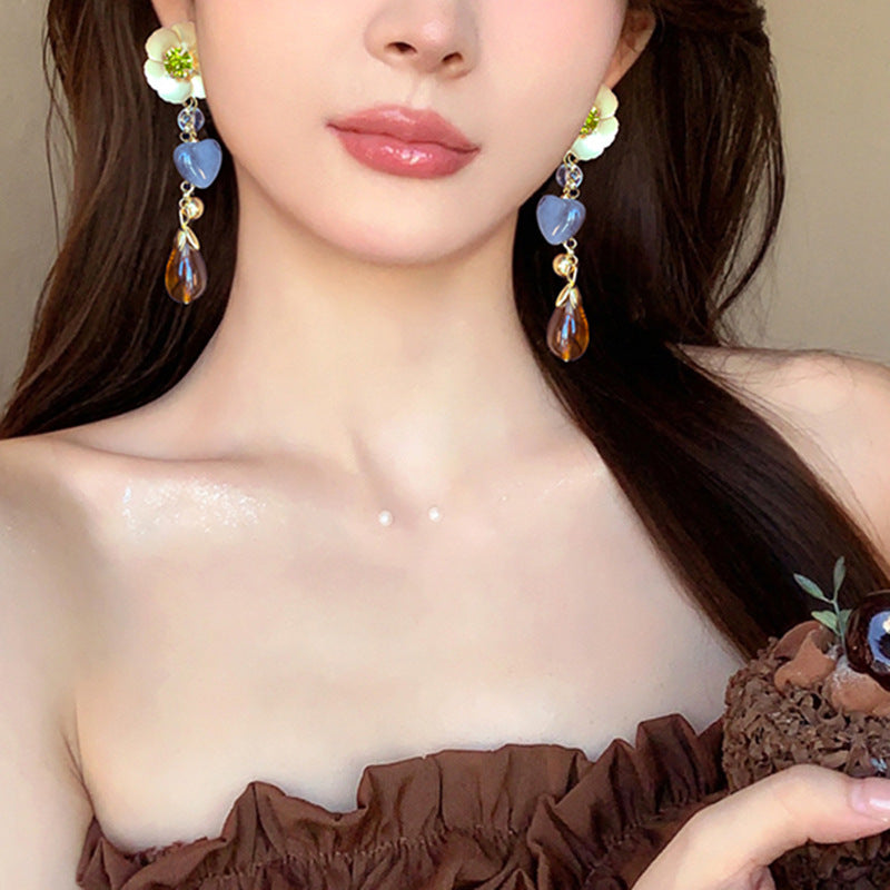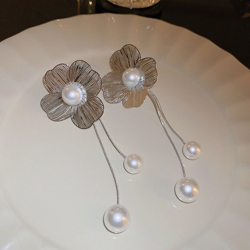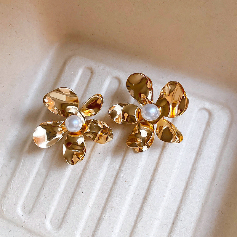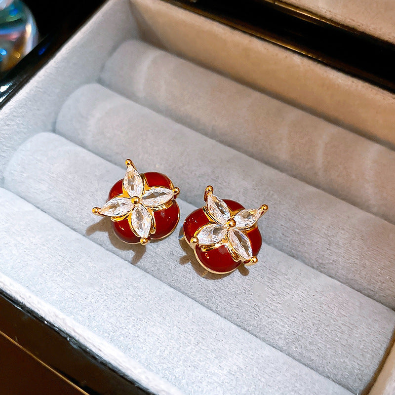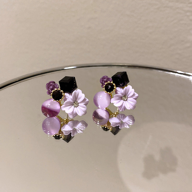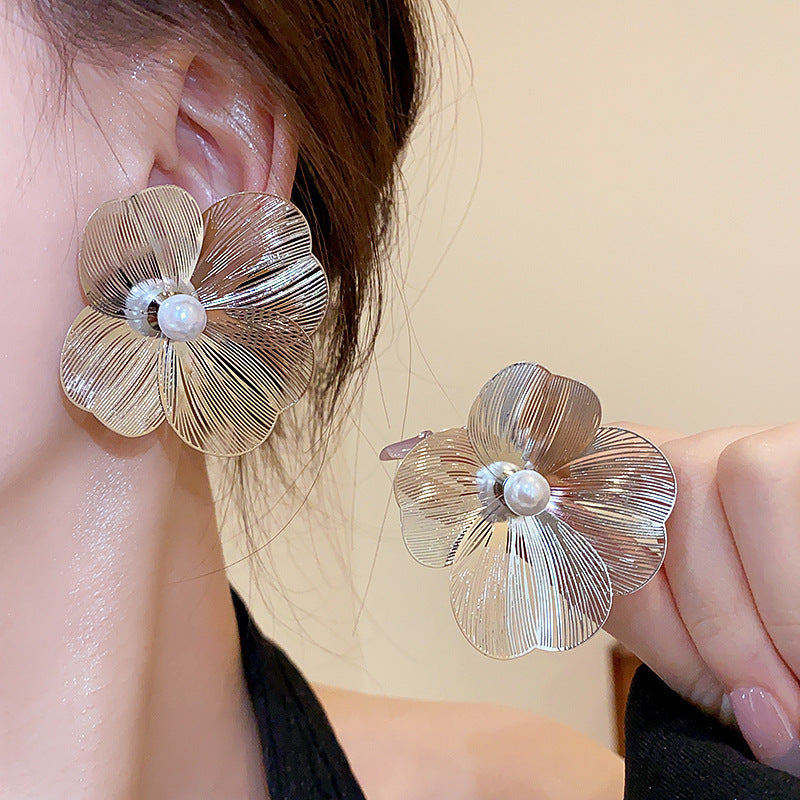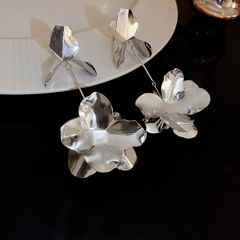 銀針跨境高級感銀色幾何圓珠愛心耳釘小衆個性耳環冷淡風耳飾