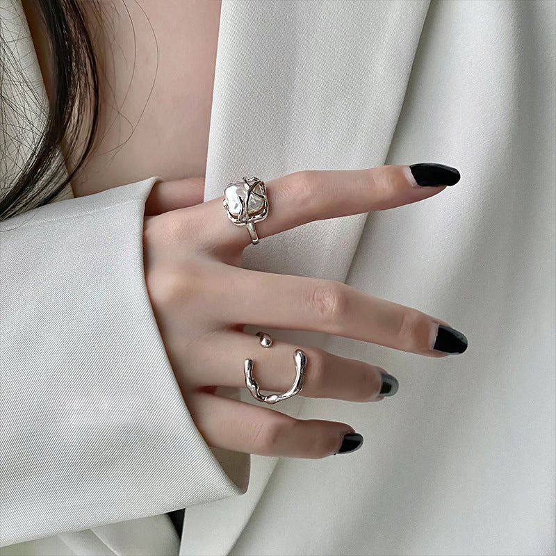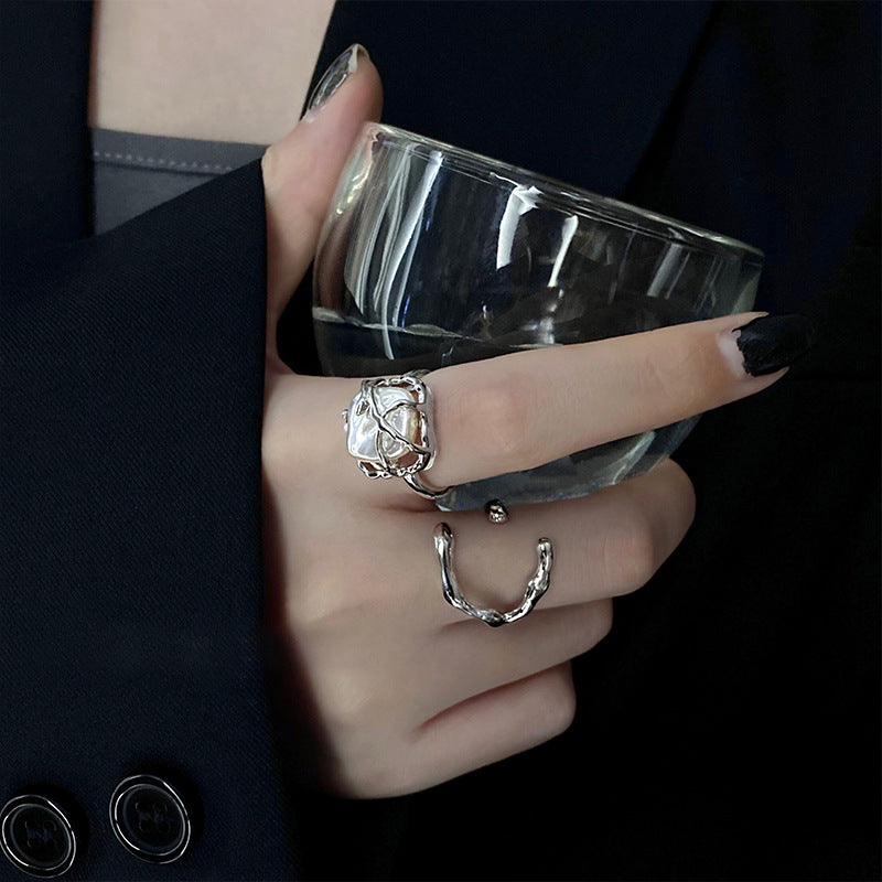 不規則幾何線條開口戒指復古簡約個性設計感指環時尚小衆食指戒女