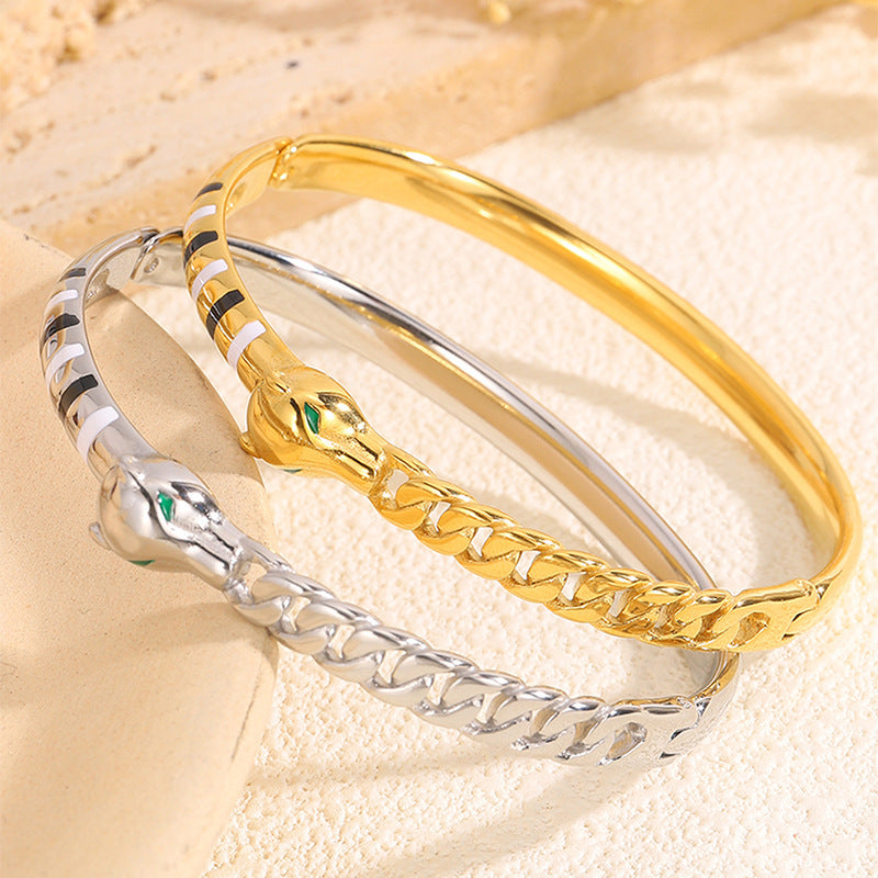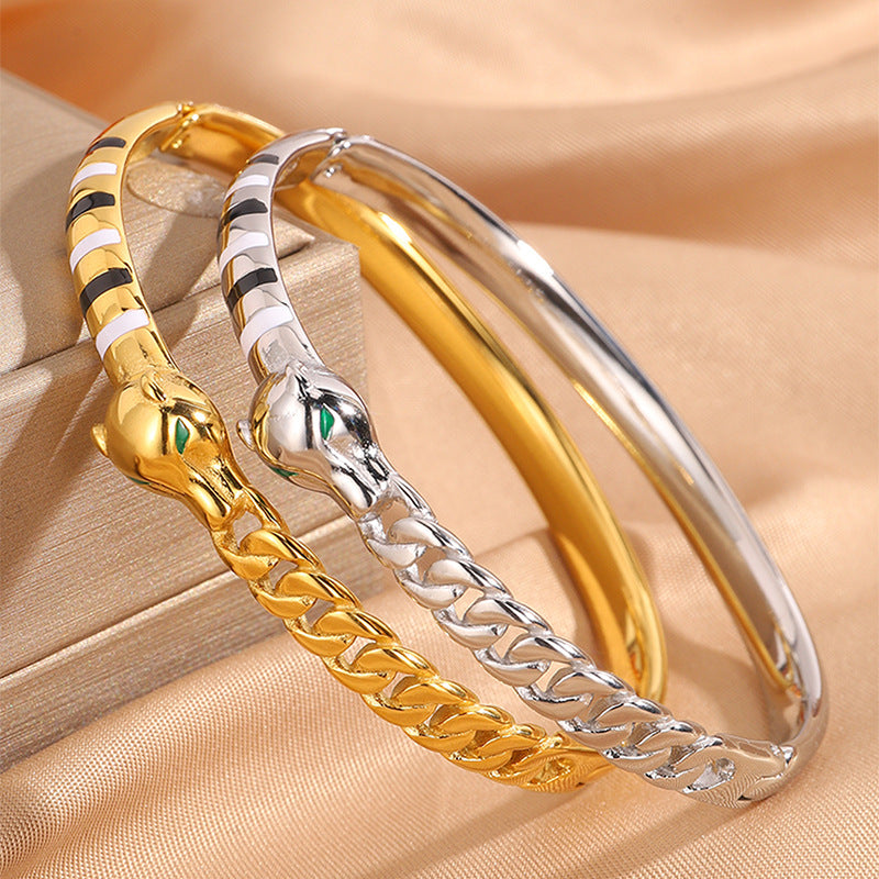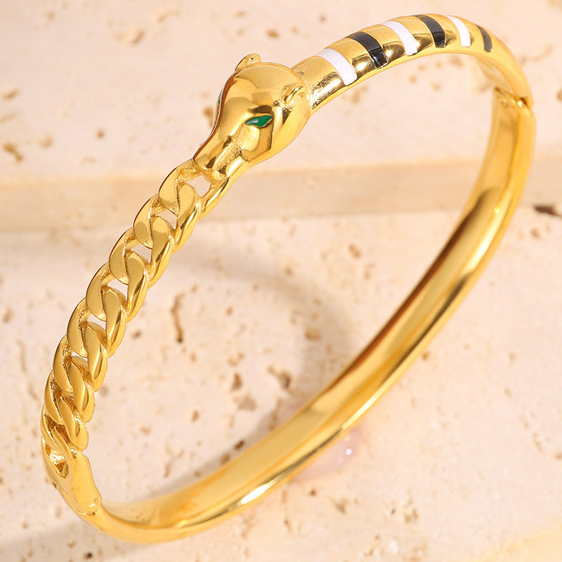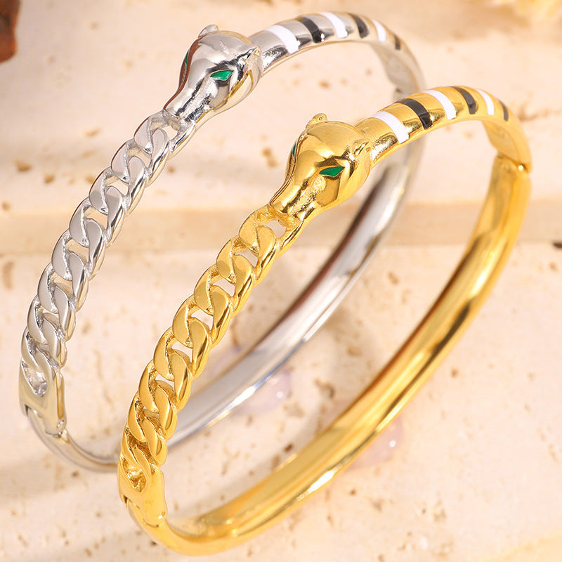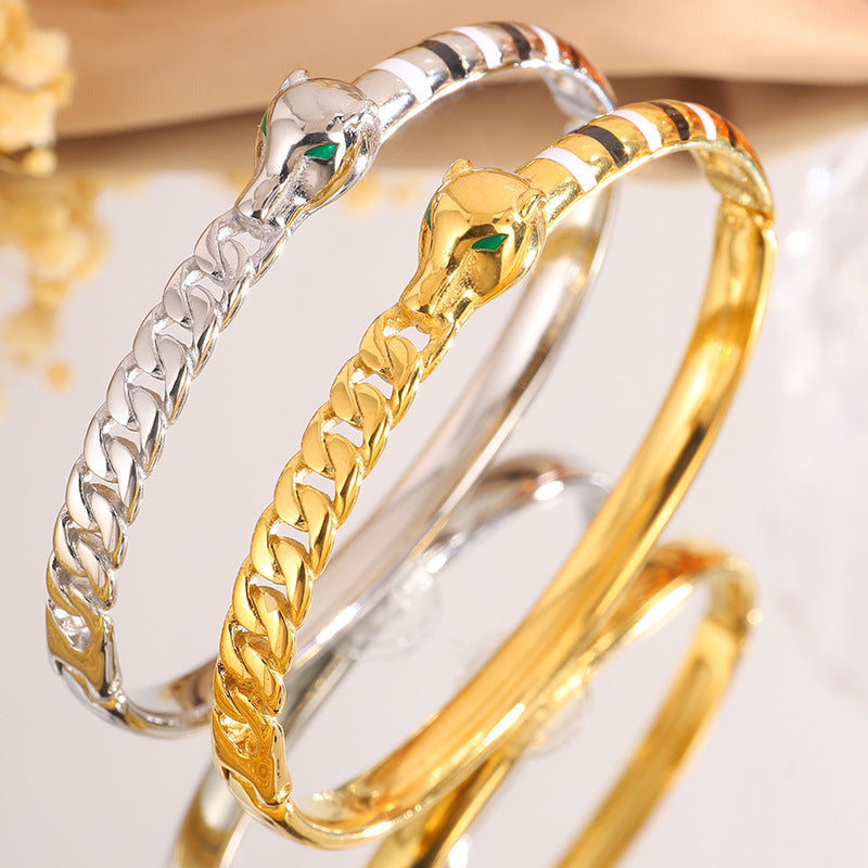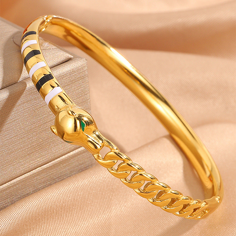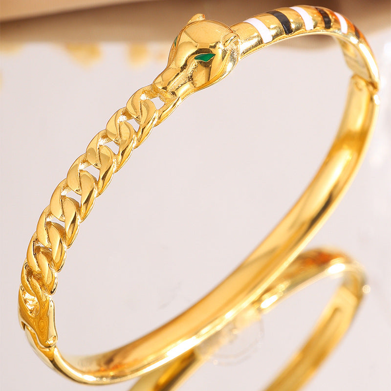 新品時尚輕奢不鏽鋼滴油豹頭手鐲女跨境爆款18K金不掉色飾品