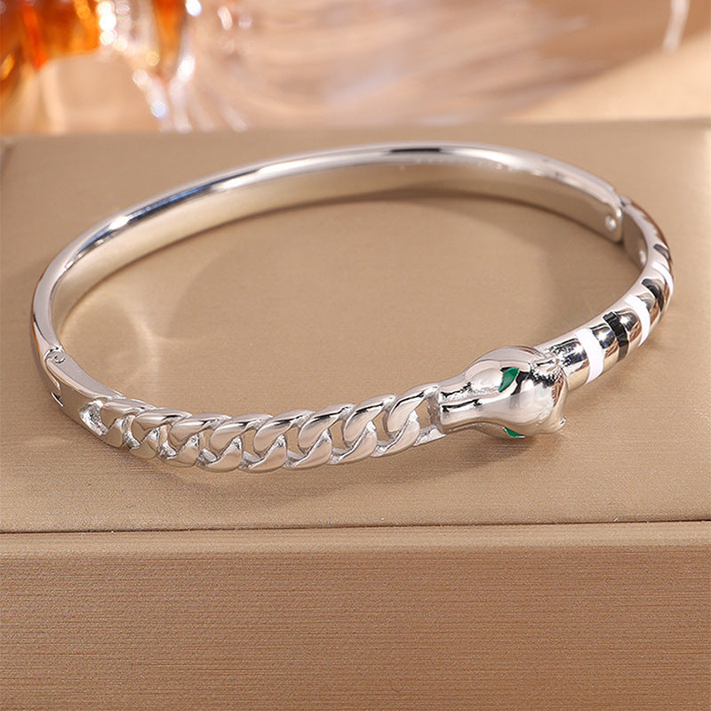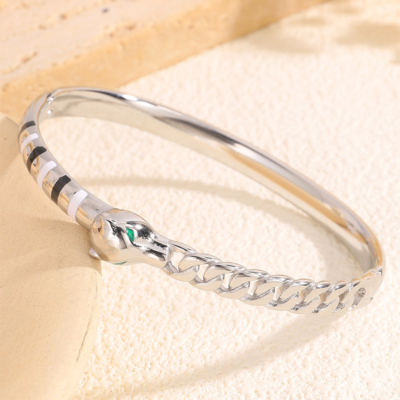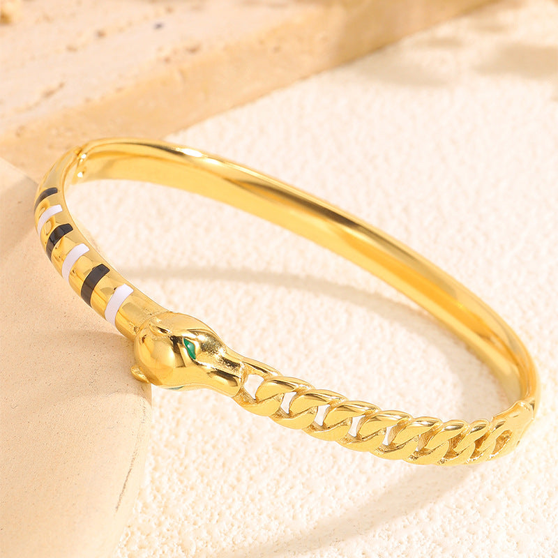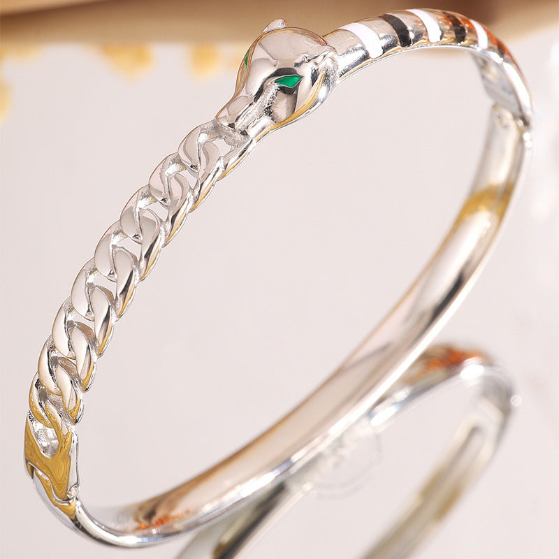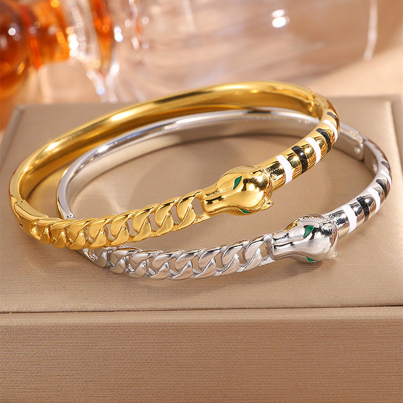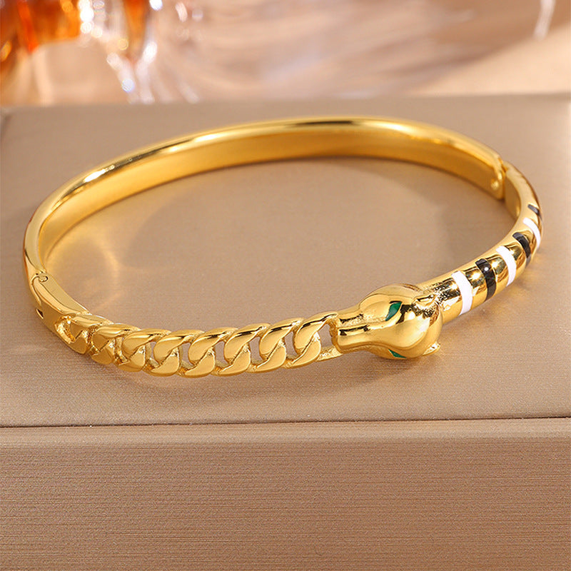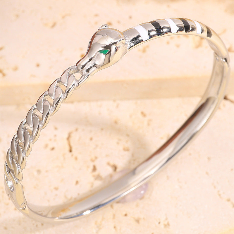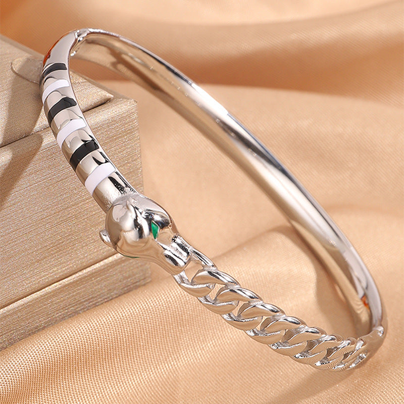 新品時尚輕奢不鏽鋼滴油豹頭手鐲女跨境爆款18K金不掉色飾品