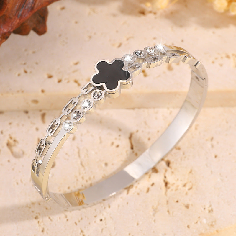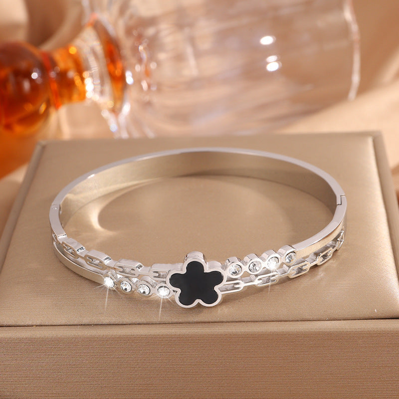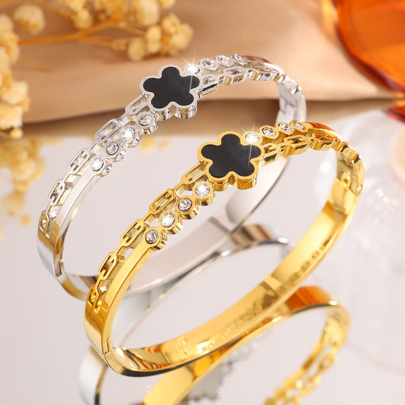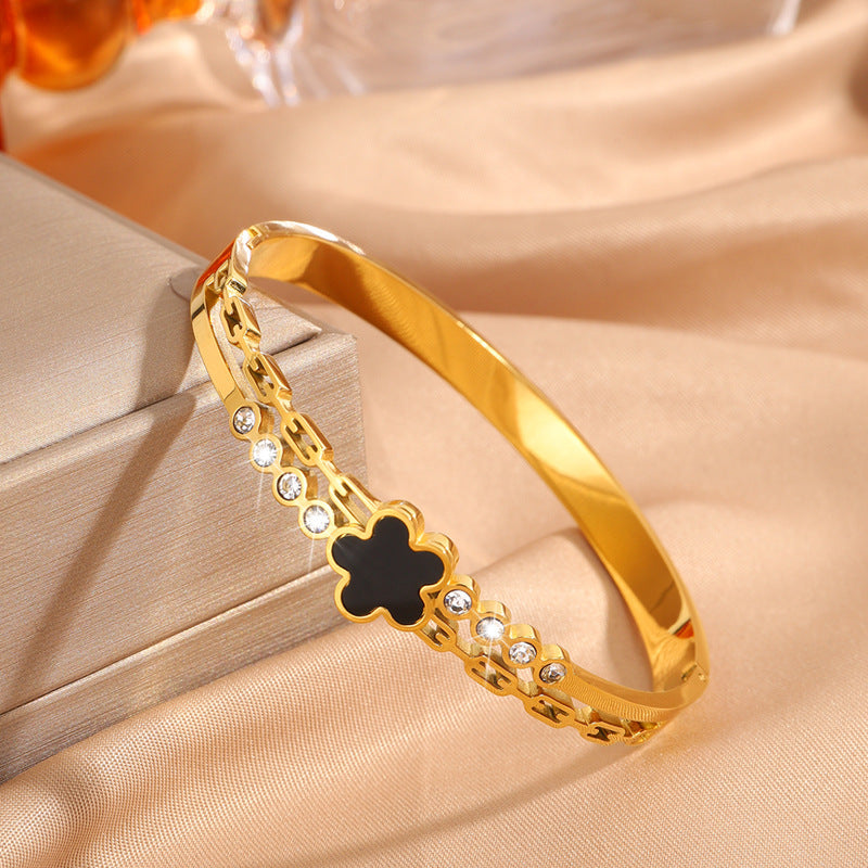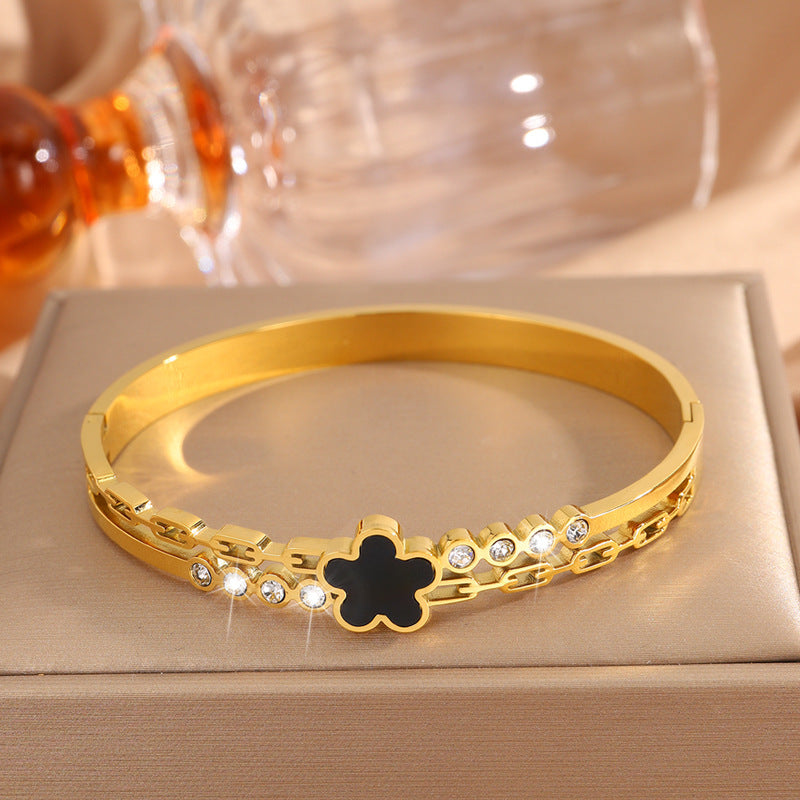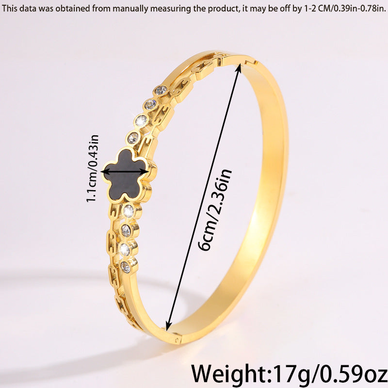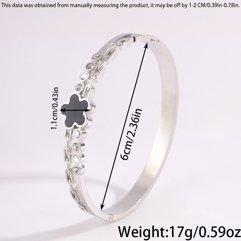 新品熱賣五葉花點鑽不鏽鋼手鐲女跨境高級感韓版輕奢手環飾品