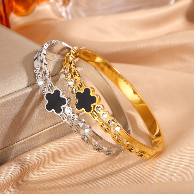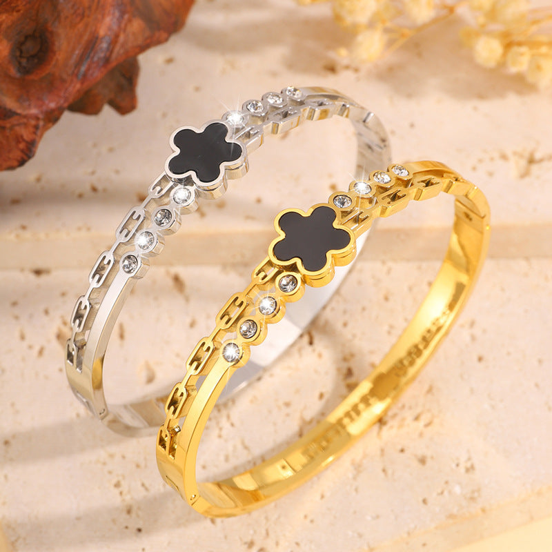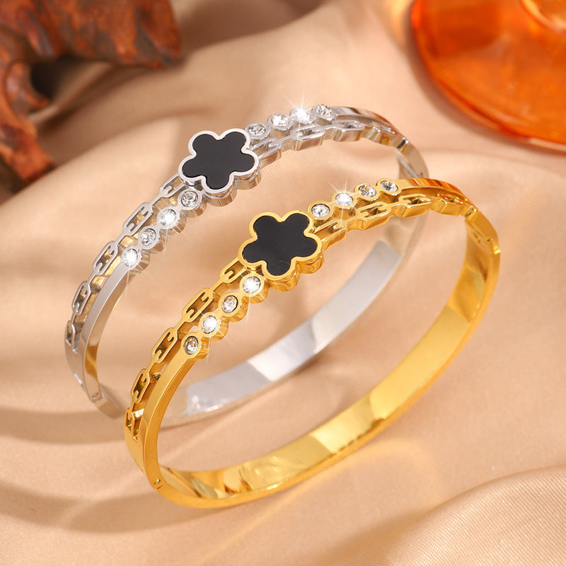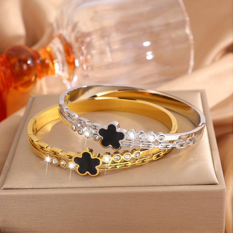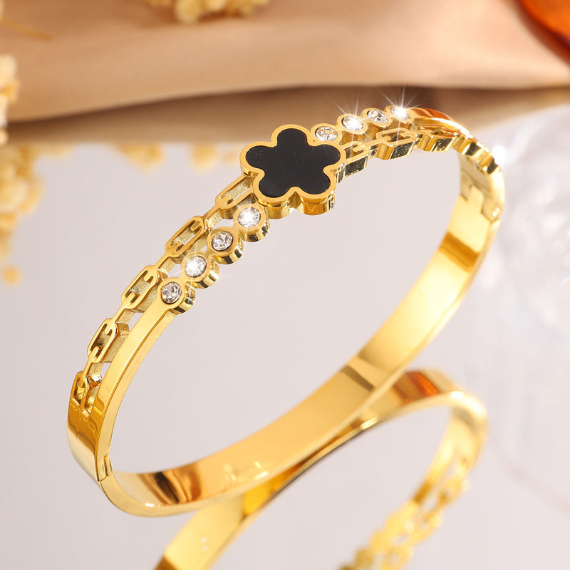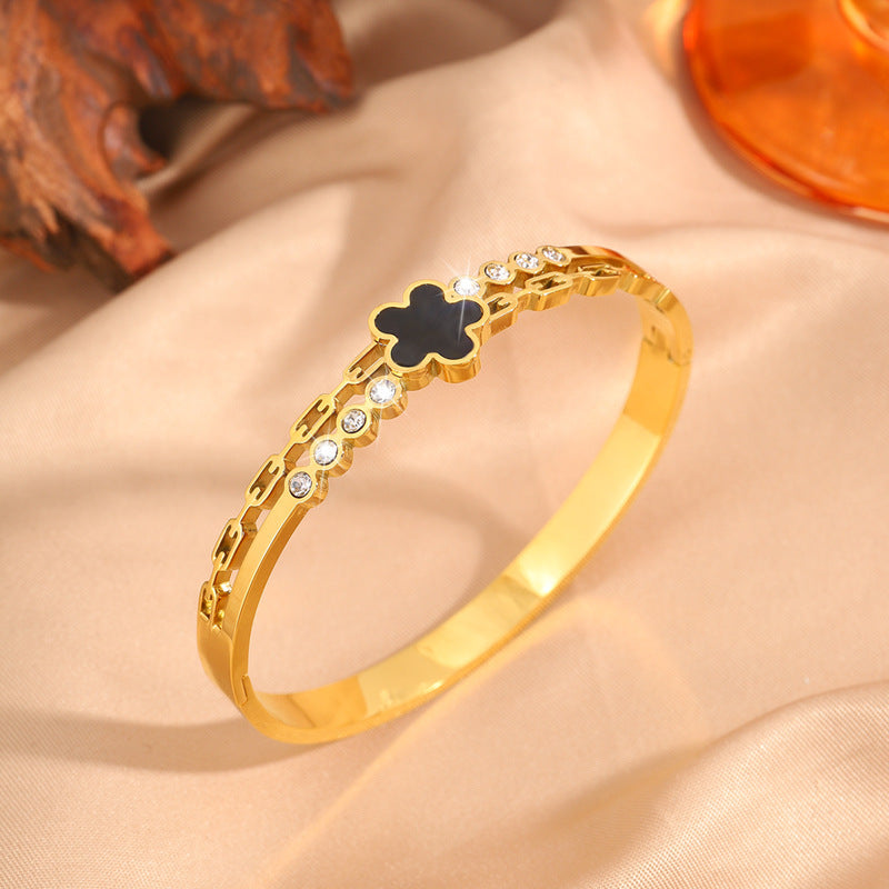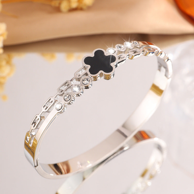 新品熱賣五葉花點鑽不鏽鋼手鐲女跨境高級感韓版輕奢手環飾品