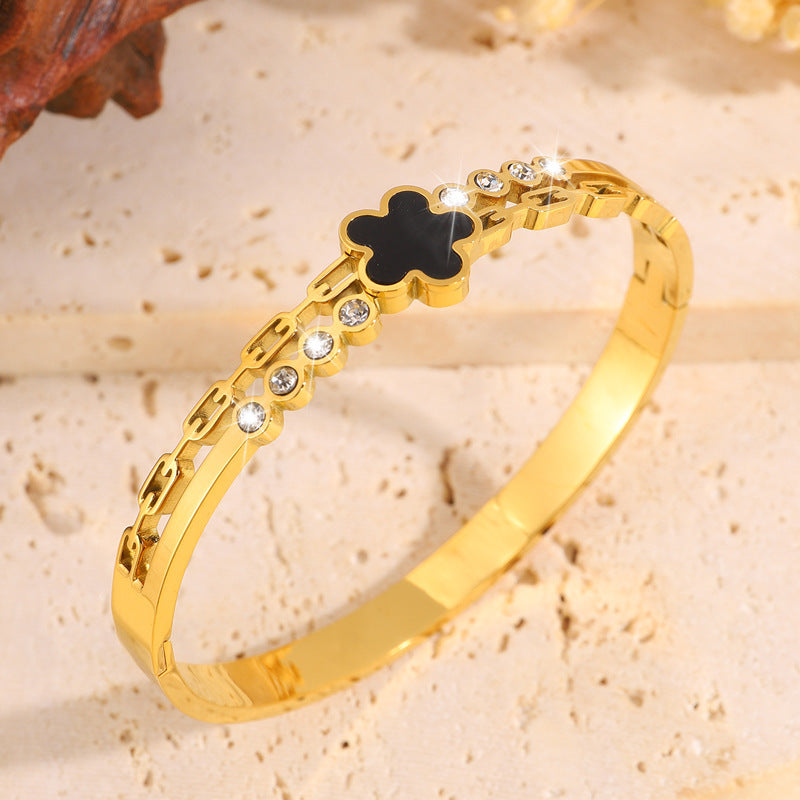 6CM/2.36IN: 金色黑貝五葉花點鑽手鐲