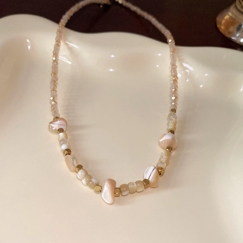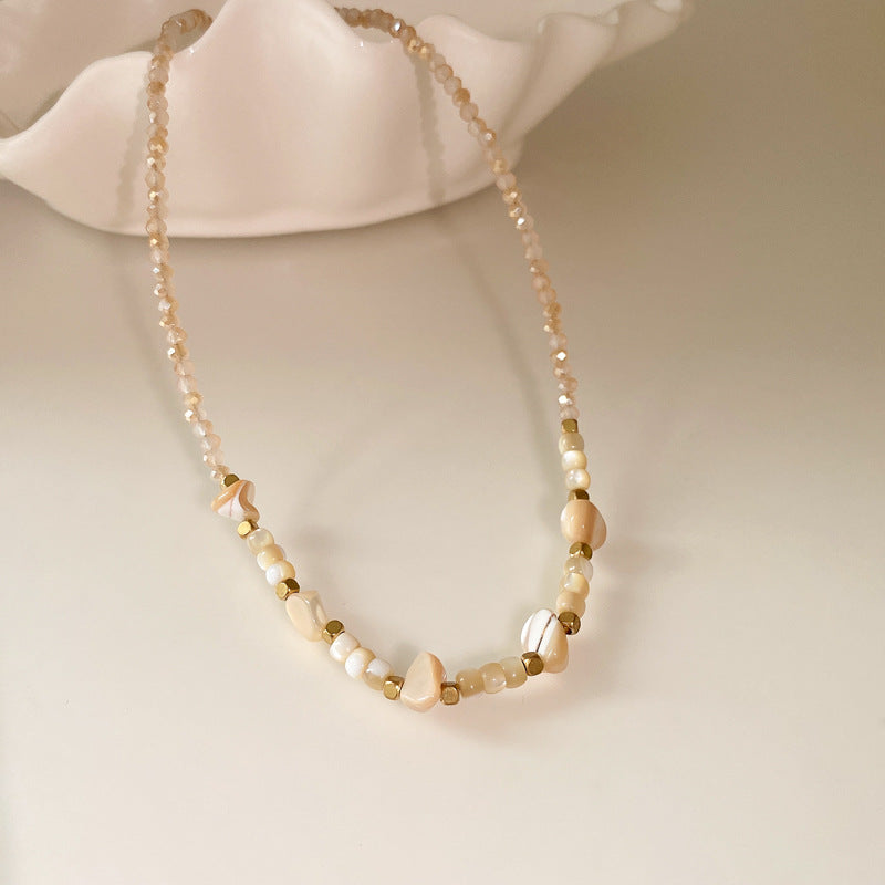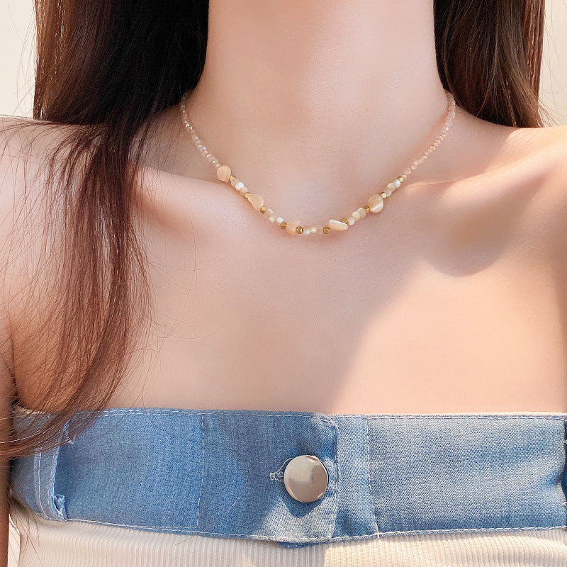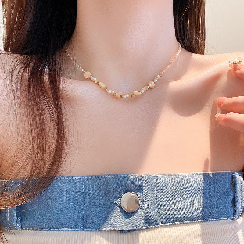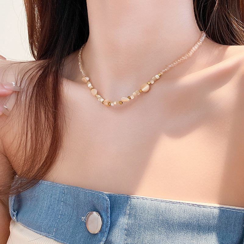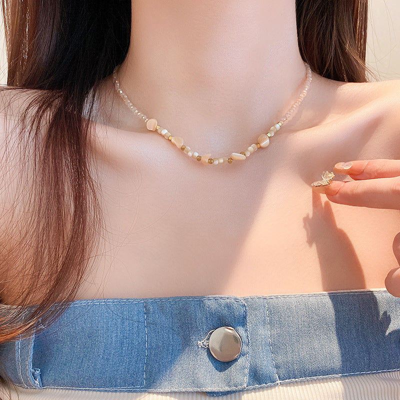 新款不規則貝殼水晶串珠項鍊個性設計感鎖骨鏈小衆輕奢氣質項飾女
