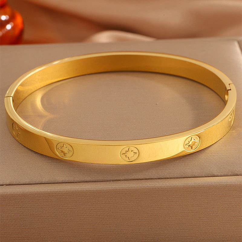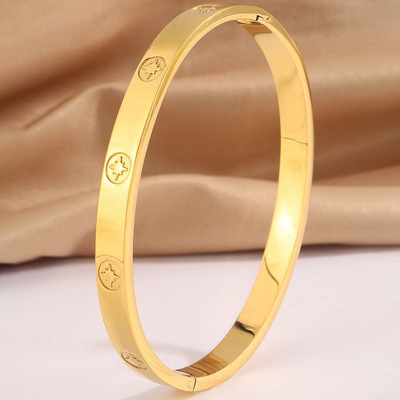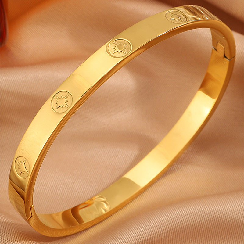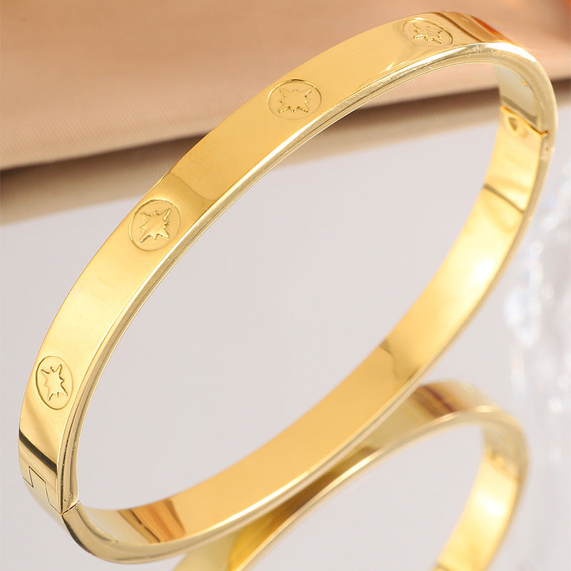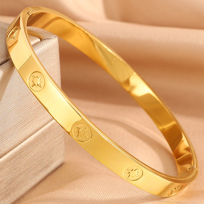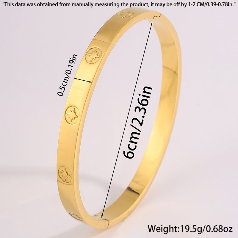 新款壓印八芒星18k金鈦鋼手鐲女士高版本不掉色歐美跨境手鐲飾品
