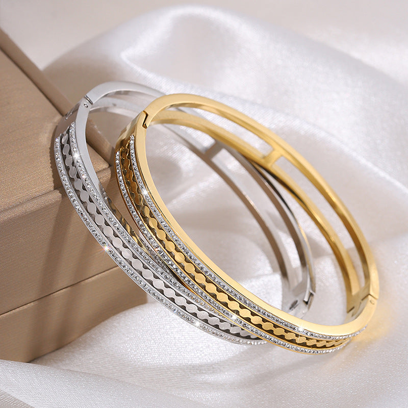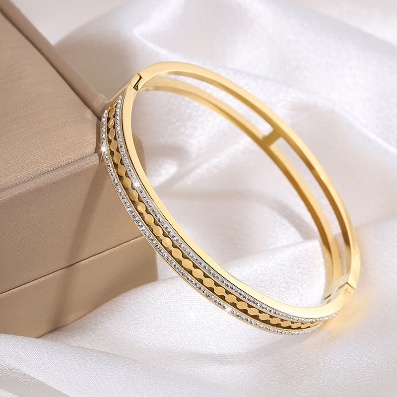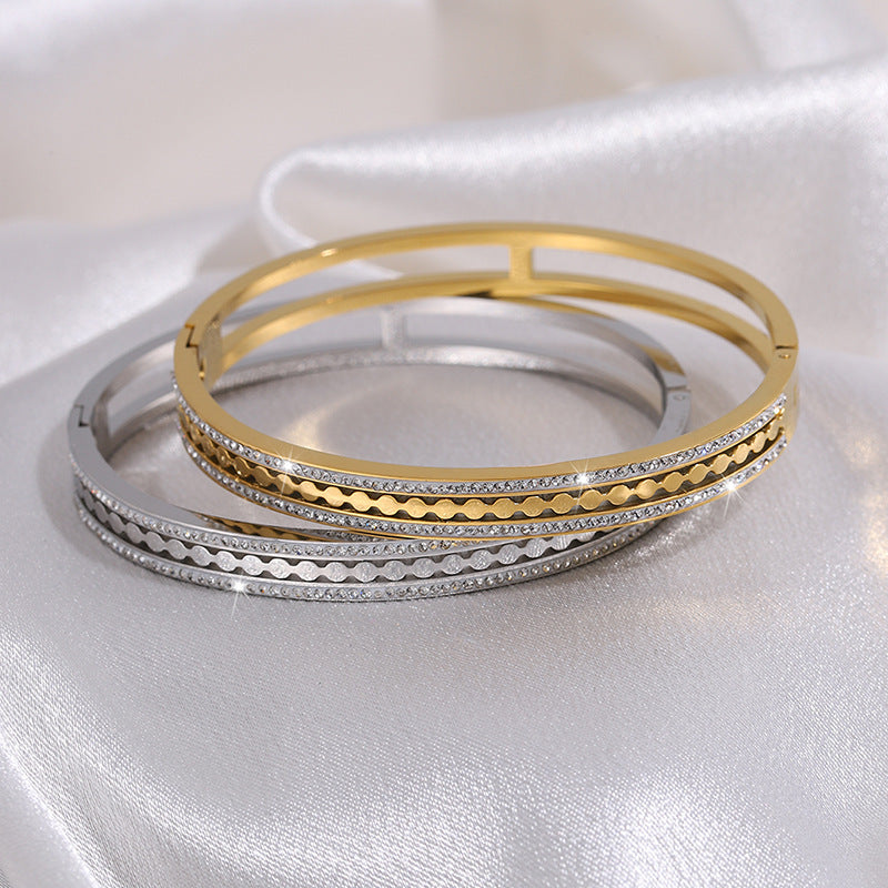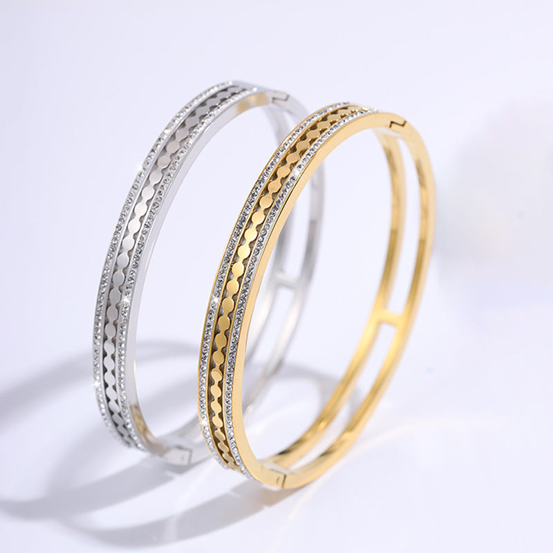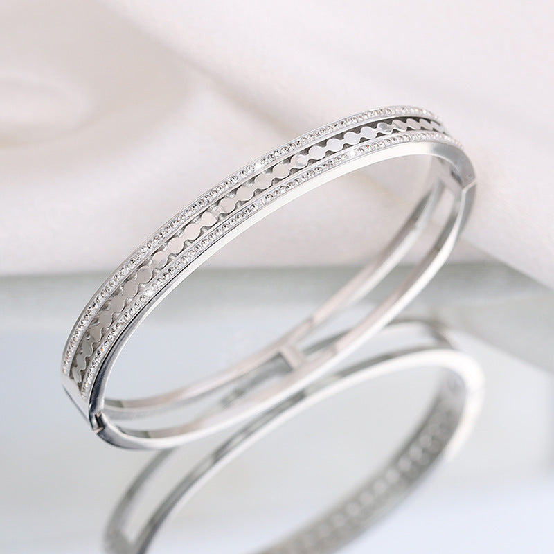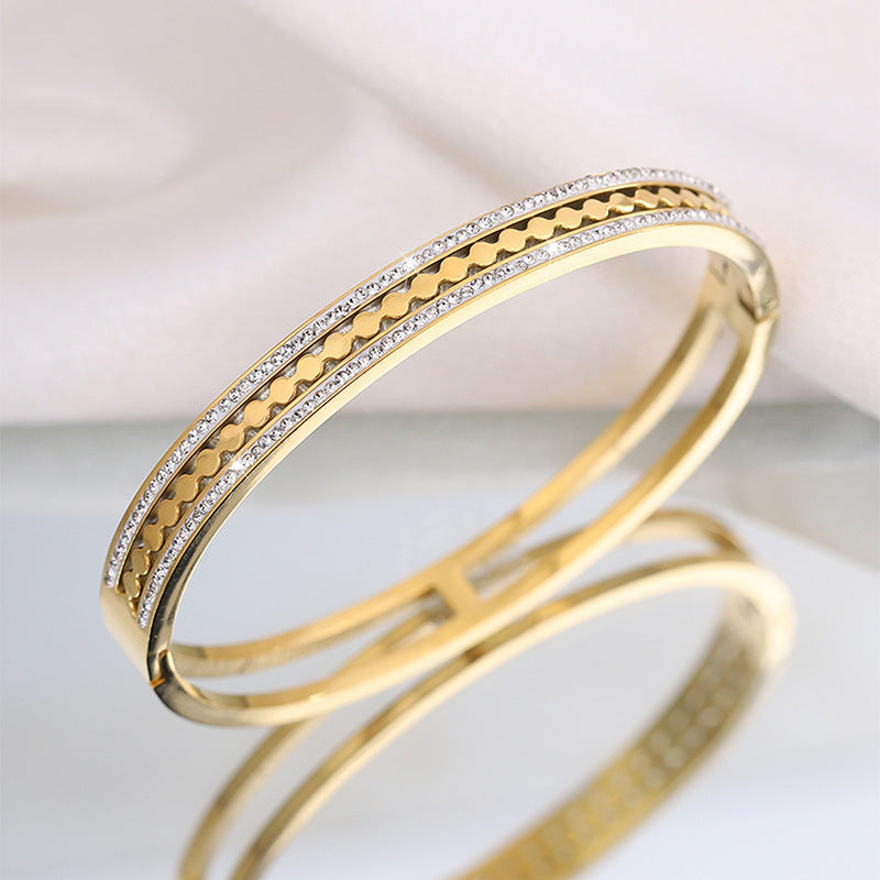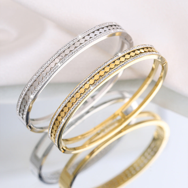 新款歐美時尚滿天星不掉色鈦鋼手鐲女高級感情侶簡約百搭手鐲飾品