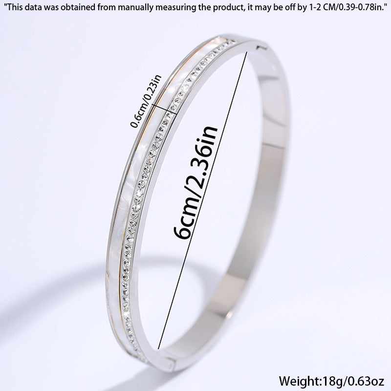 6CM/2.36IN: 銀色貝殼排鑽手鐲