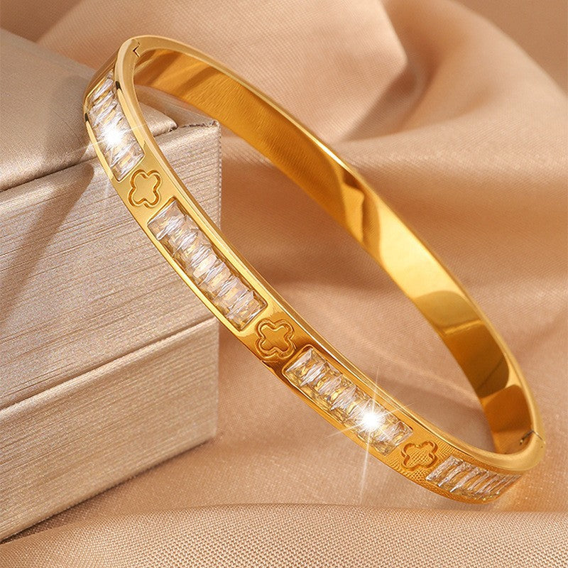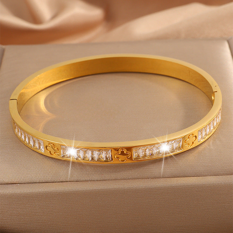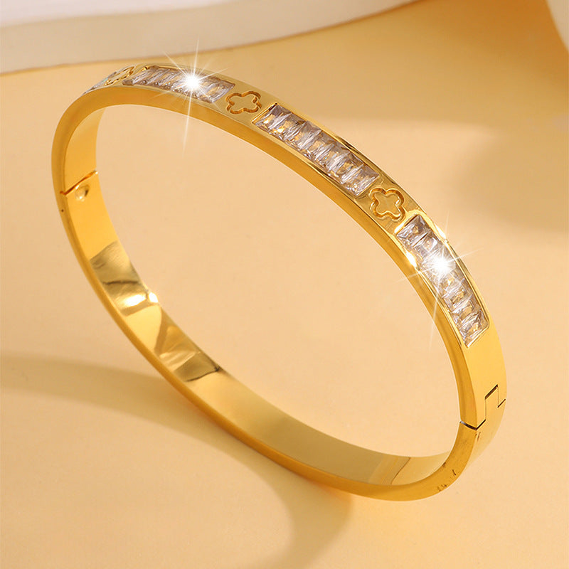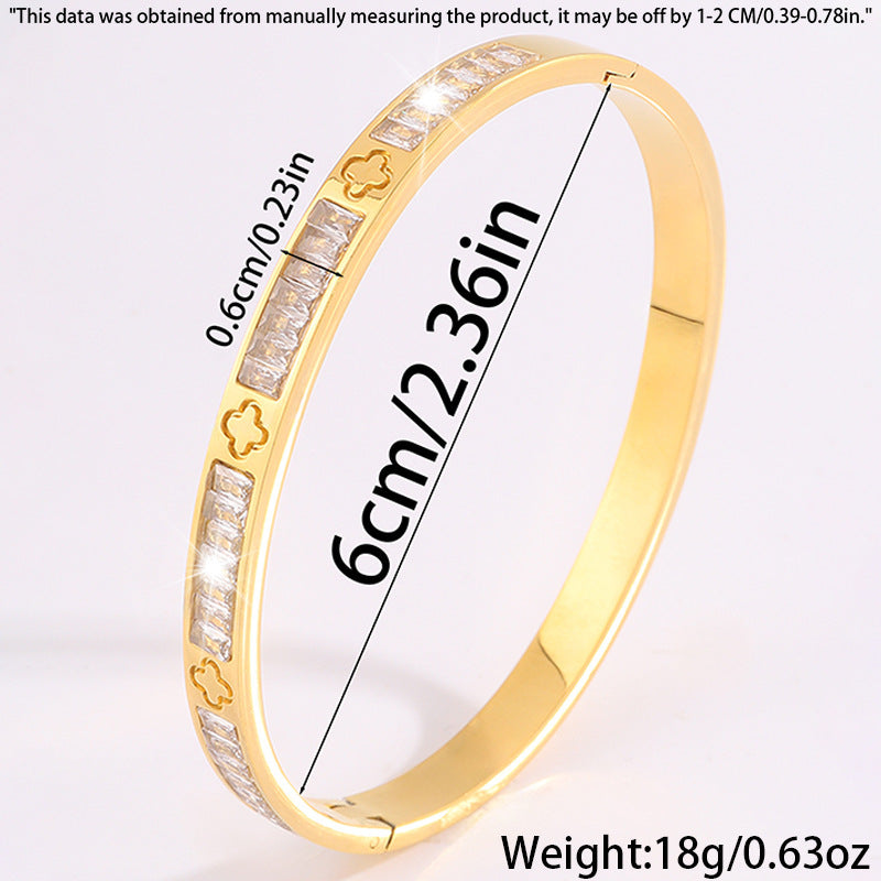 6CM/2.36IN: 金色四葉花排鑽手鐲