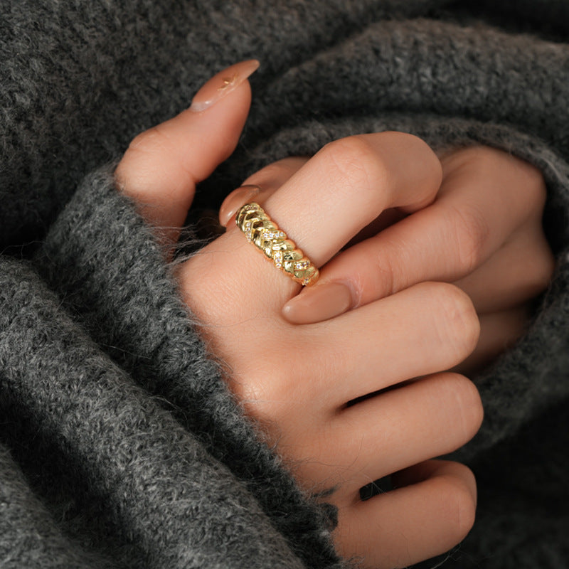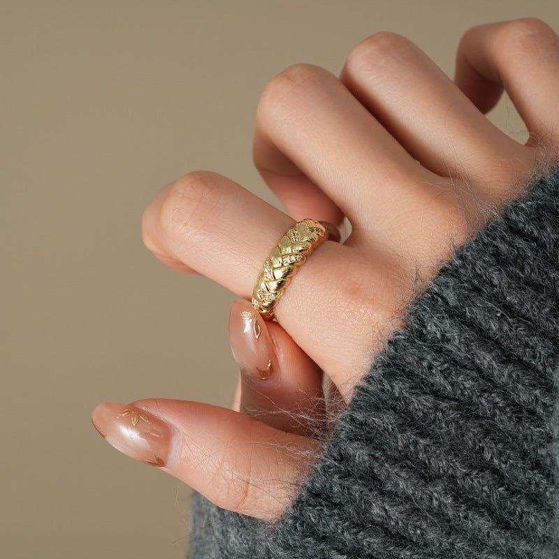 時尚潮流鋯石麥穗麻花戒指 復古高級感食指戒中古vintage手飾