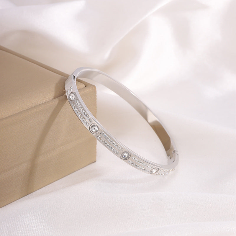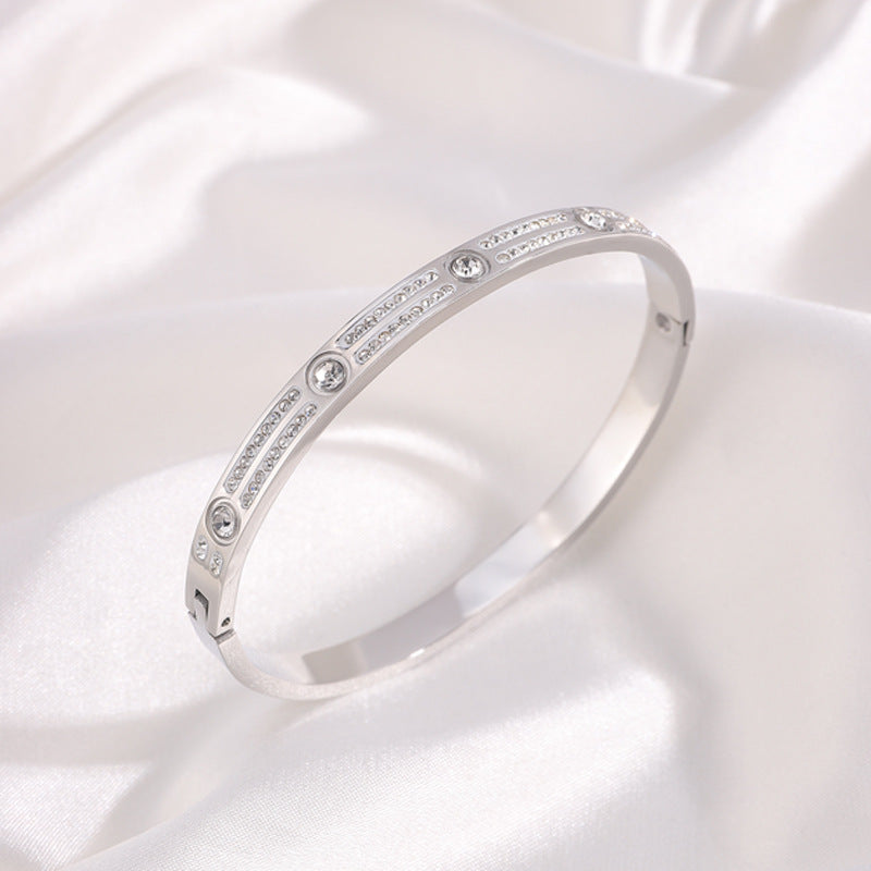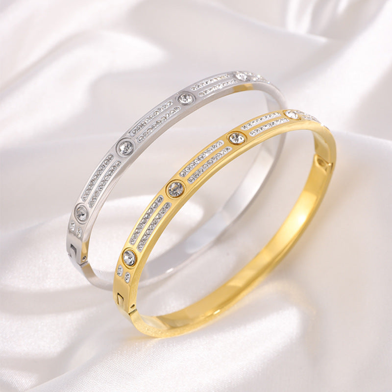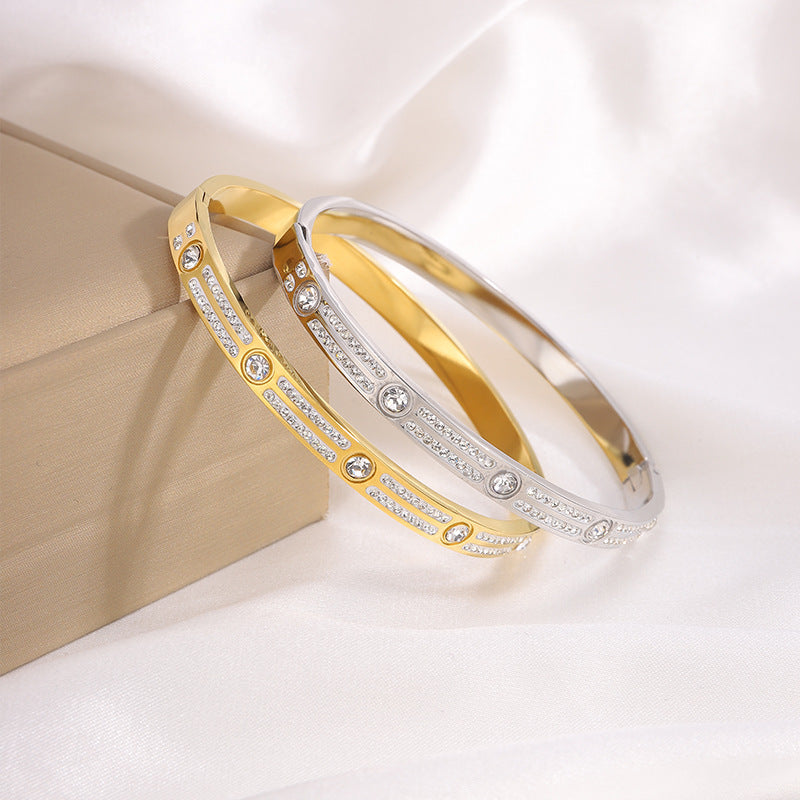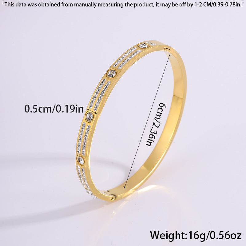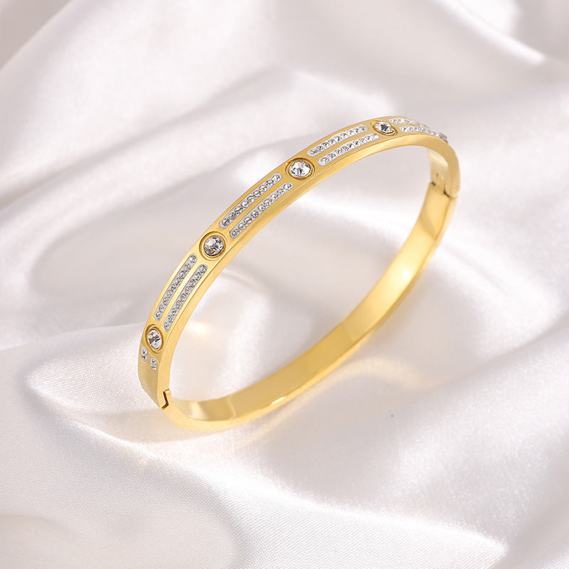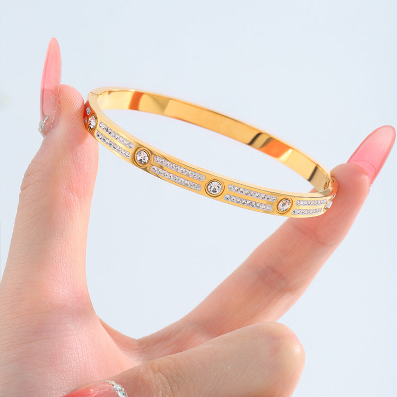 時尚跨境高級感鈦鋼卡扣手鐲飾品不掉色女鋯石微鑲金色不鏽鋼手鐲