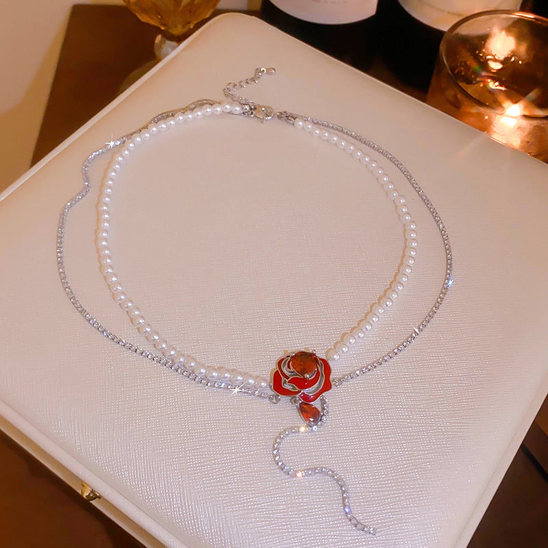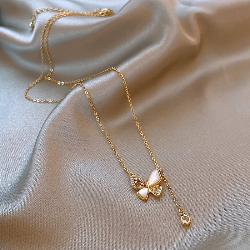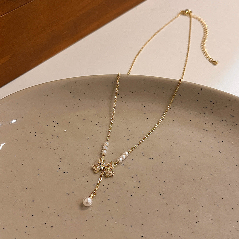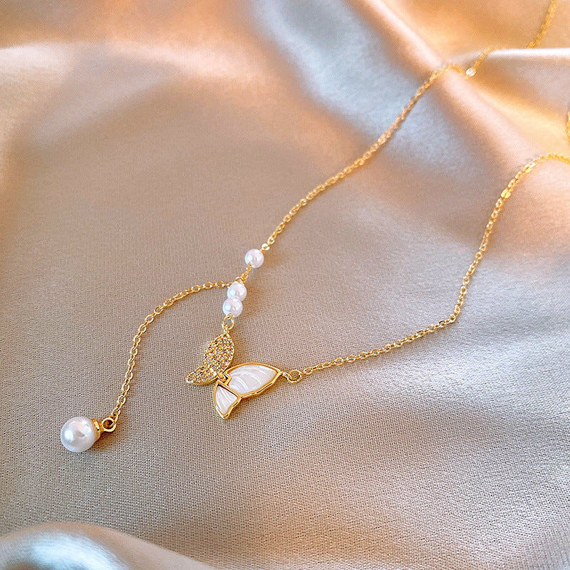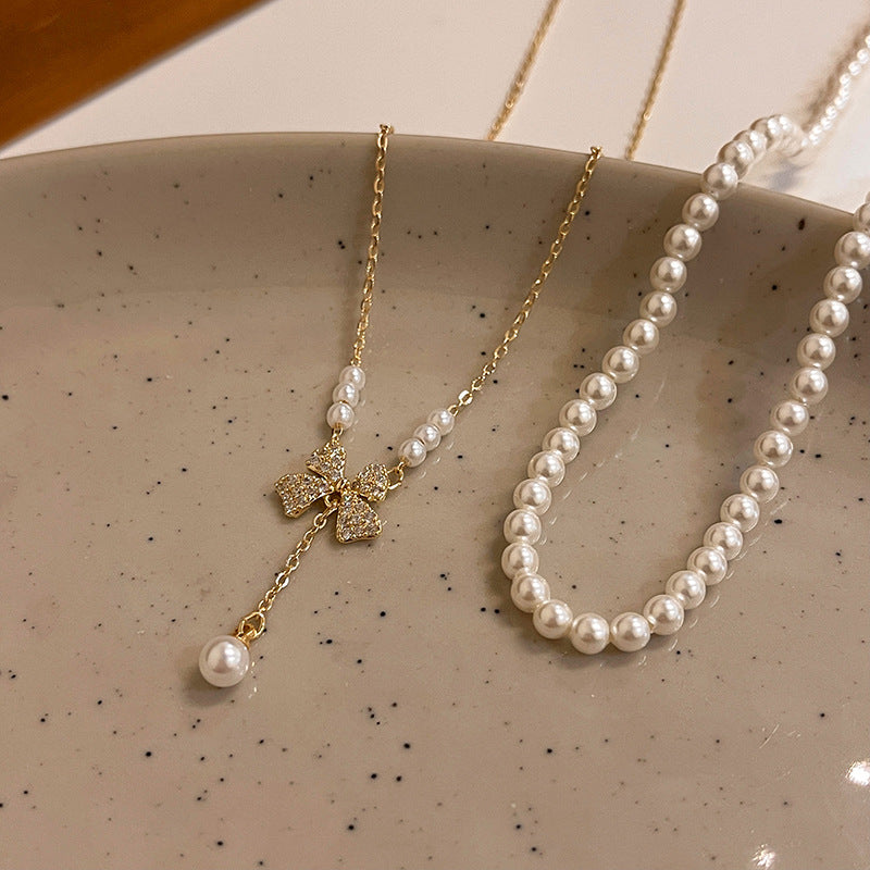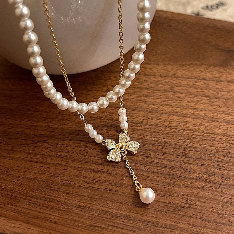 法式復古蝴蝶疊戴珍珠項鍊小衆百搭鎖骨鏈網紅輕奢高級感項飾