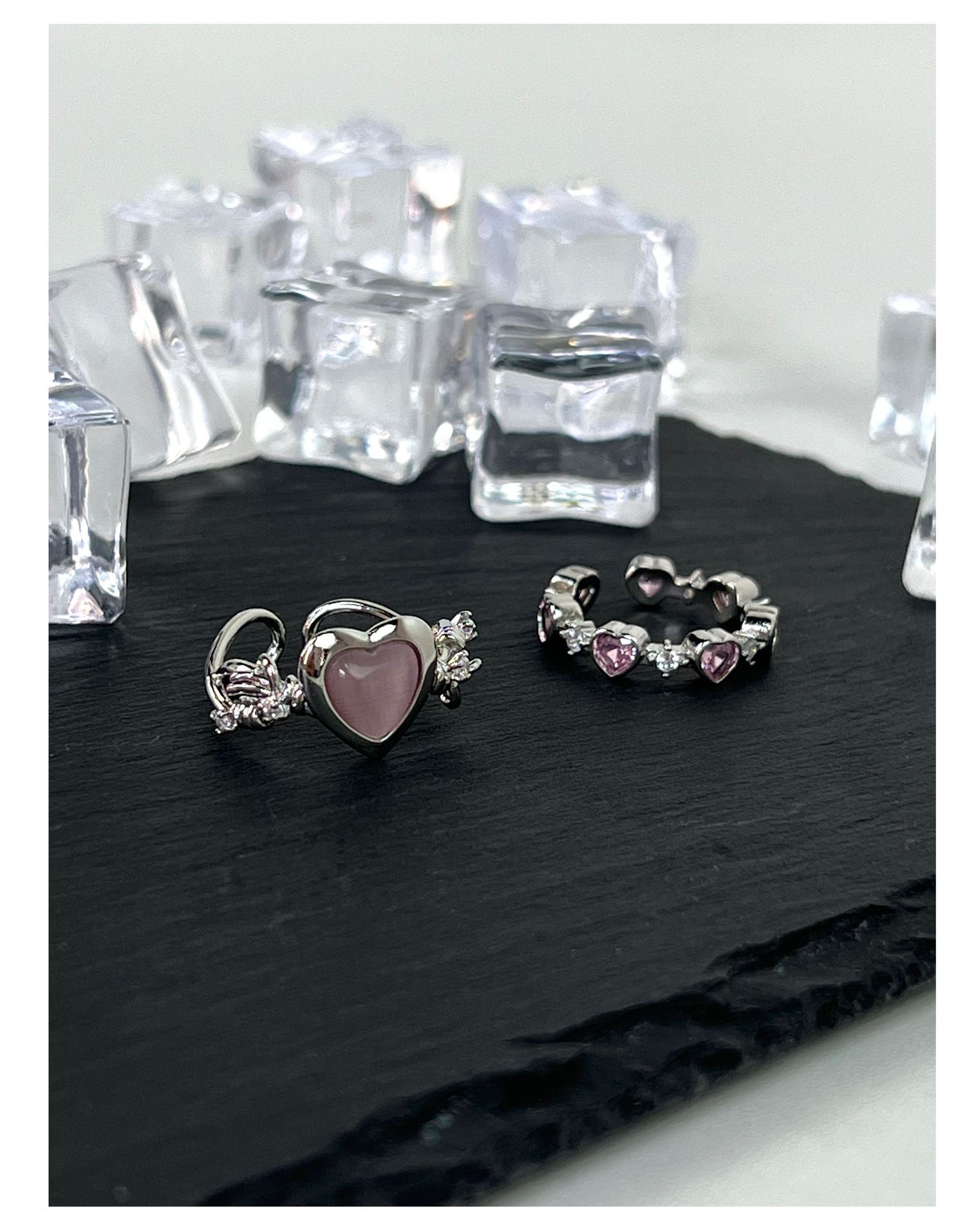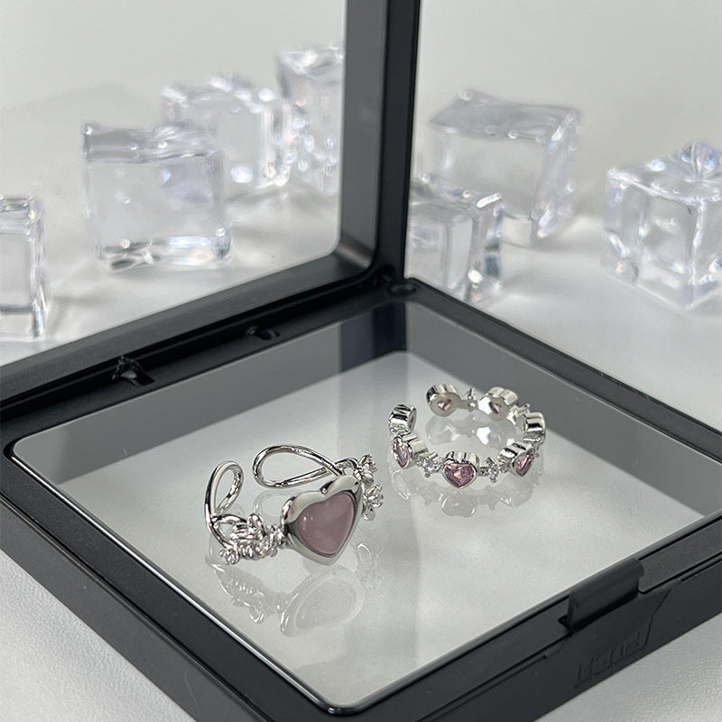 法式輕奢人造貓眼石款愛心戒指時尚氣質食指戒指環個性新款手飾女