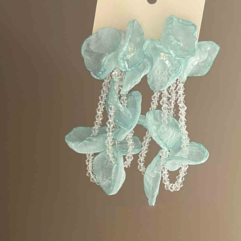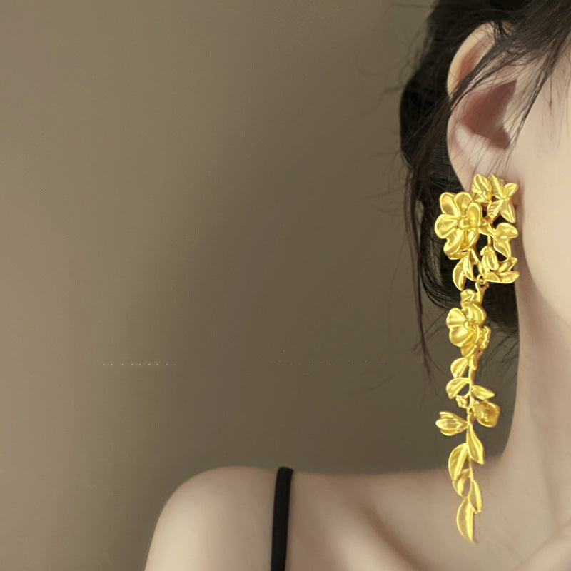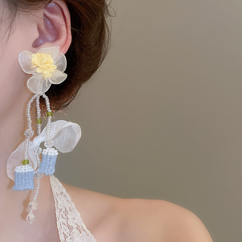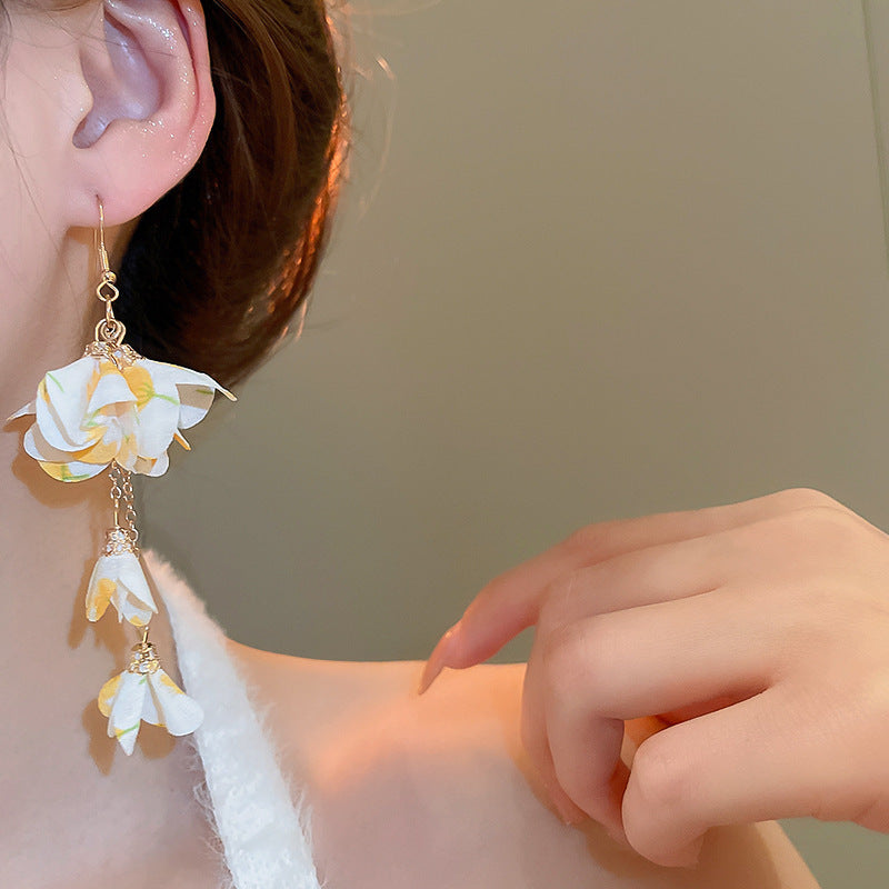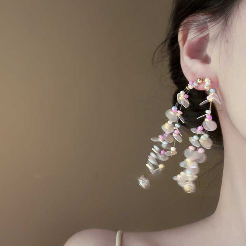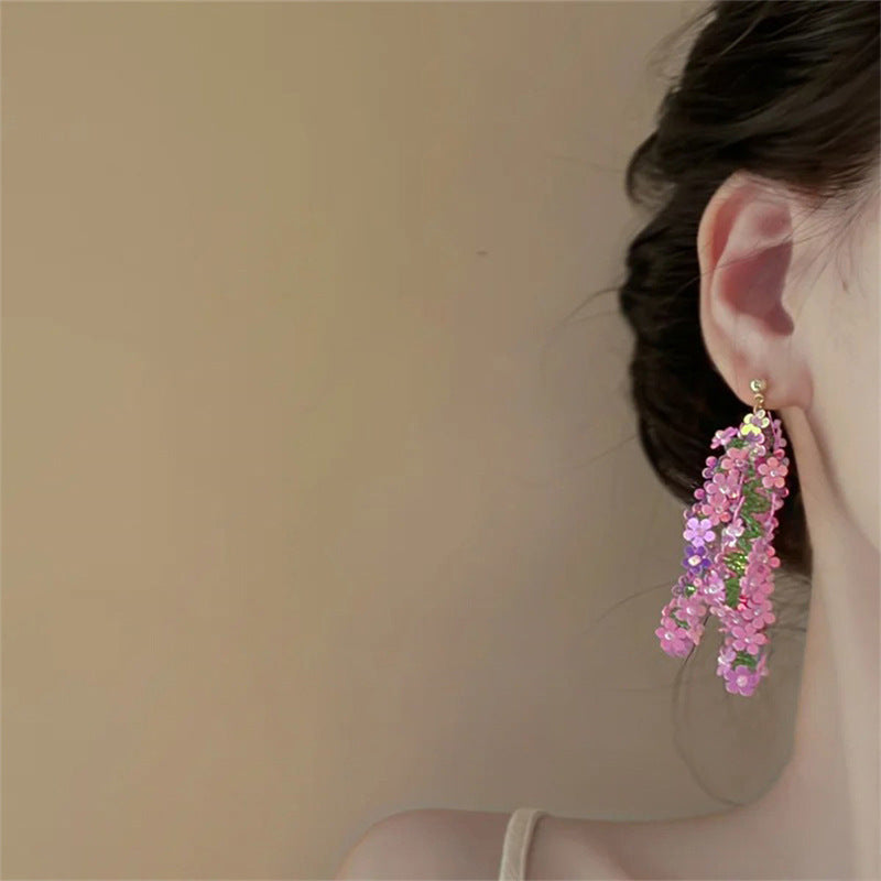 波西米亞超仙花朵流蘇耳環女早春時尚百搭耳釘輕奢高級感耳飾