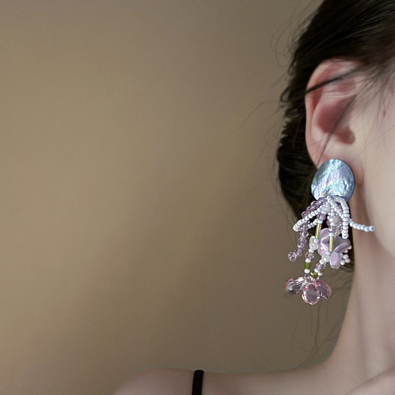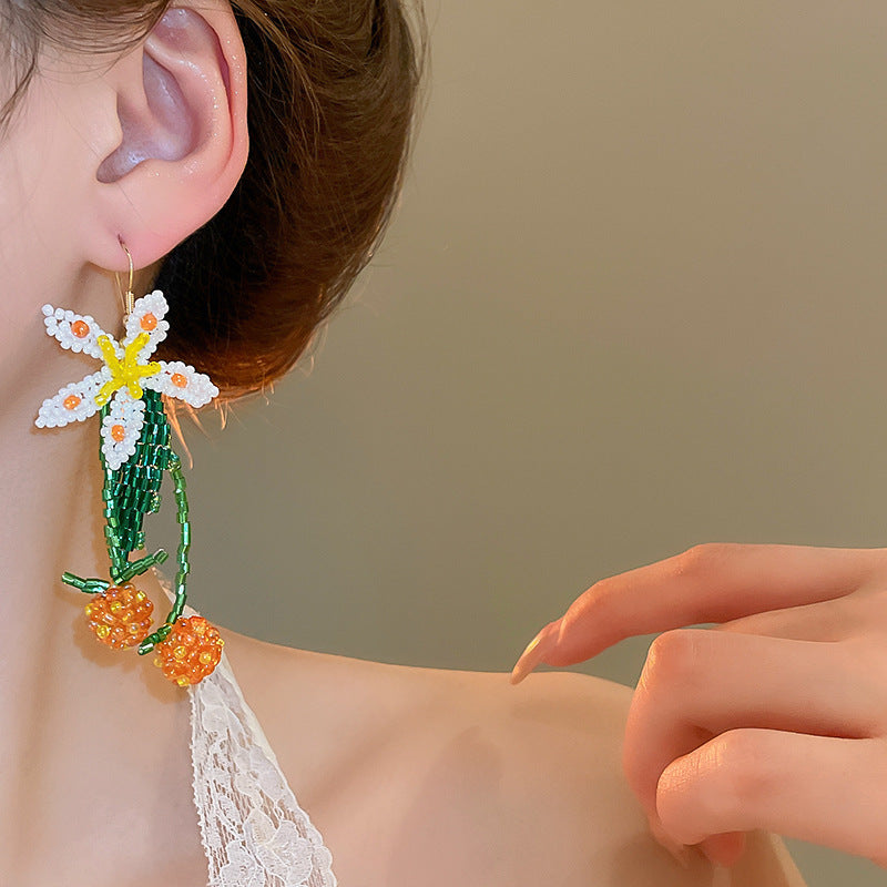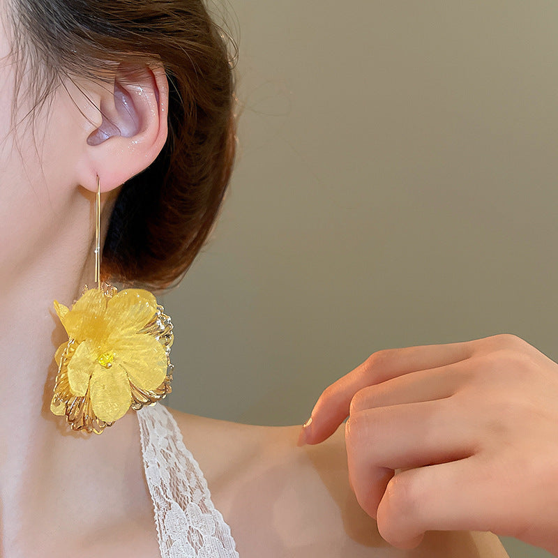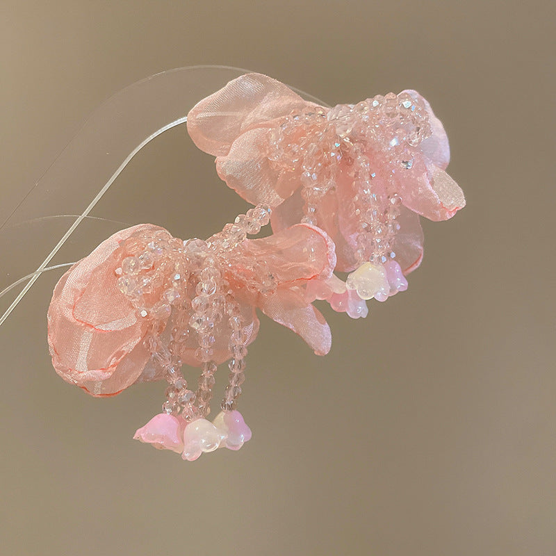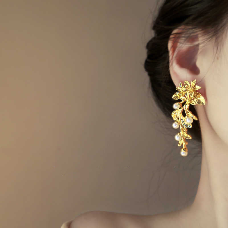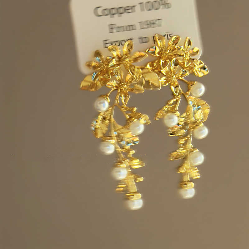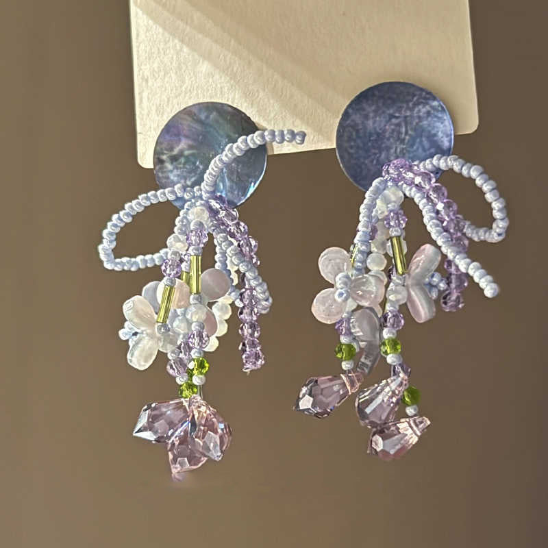波西米亞超仙花朵流蘇耳環女早春時尚百搭耳釘輕奢高級感耳飾