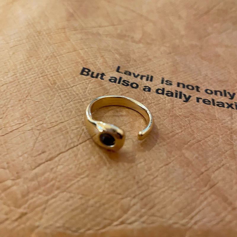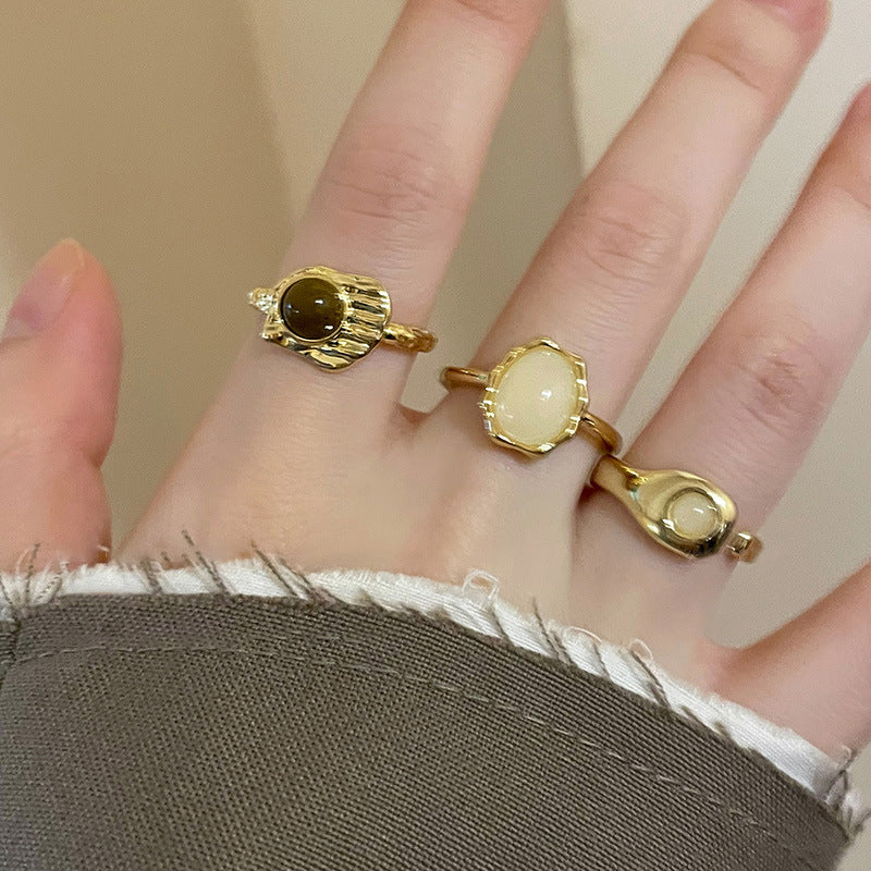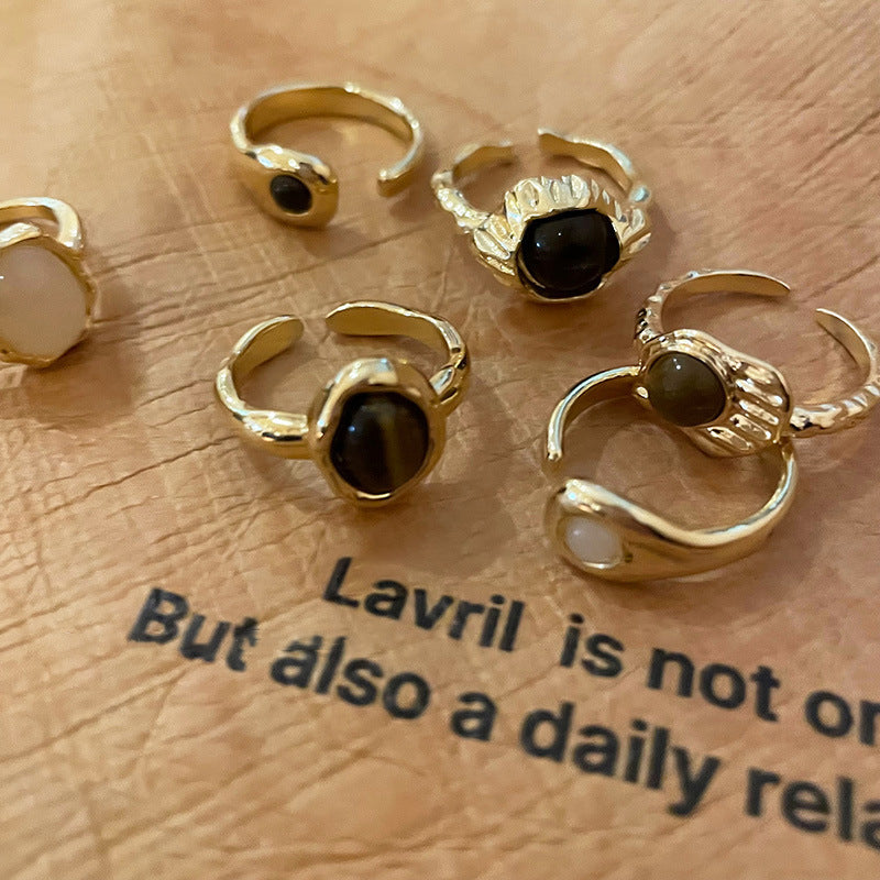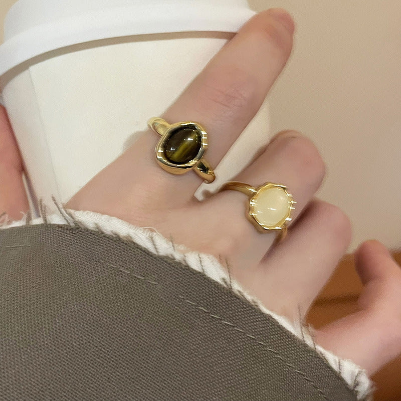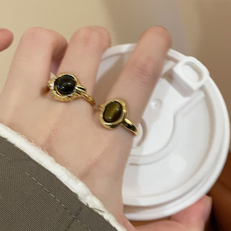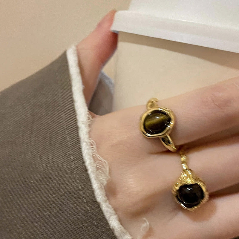 美拉德人造虎眼石開口戒指小衆復古設計感食指戒輕奢高級感手飾女