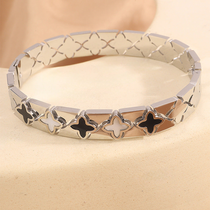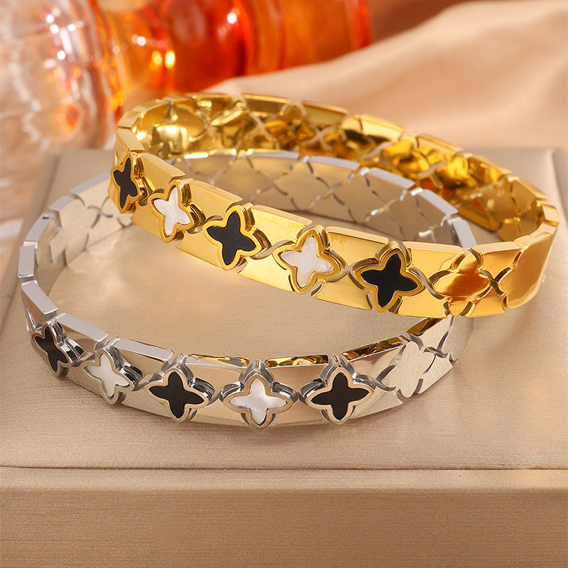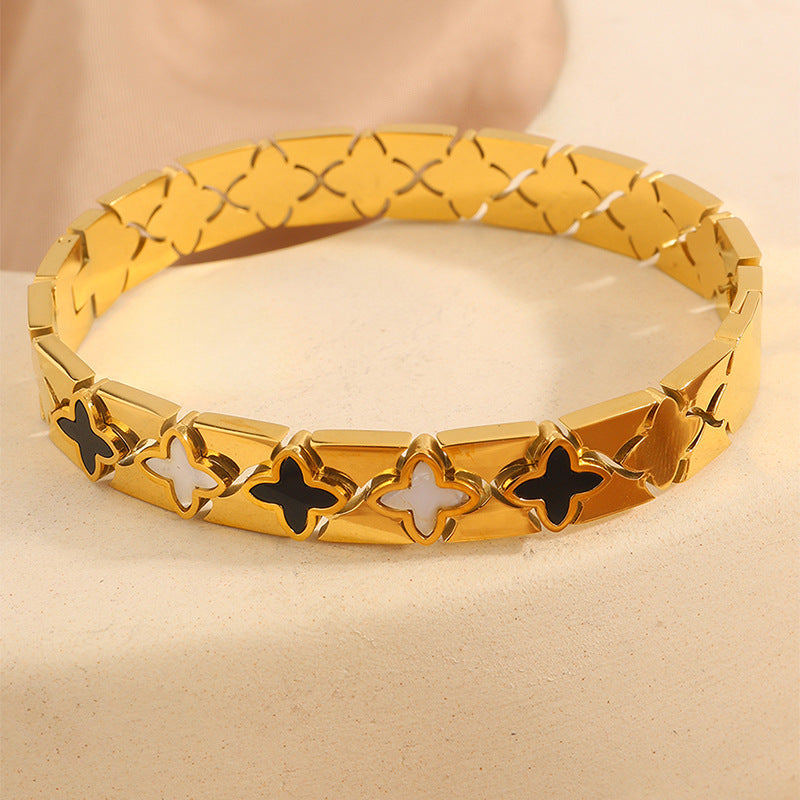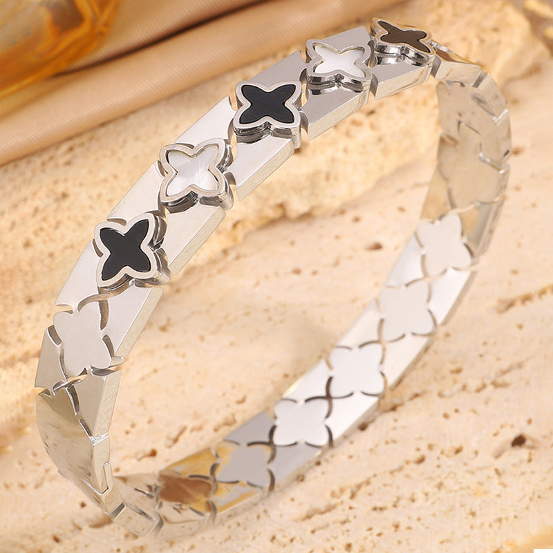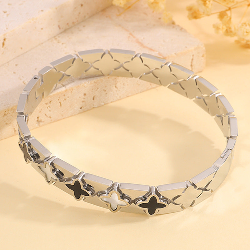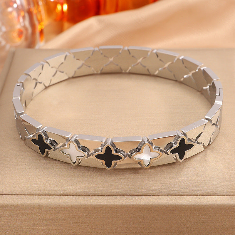 跨境歐美時尚華格夫四葉鈦鋼手鐲鏤空貝殼情侶款不掉色手鐲飾品