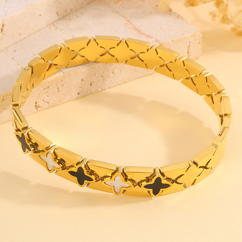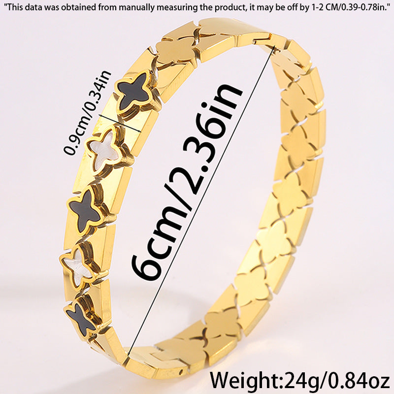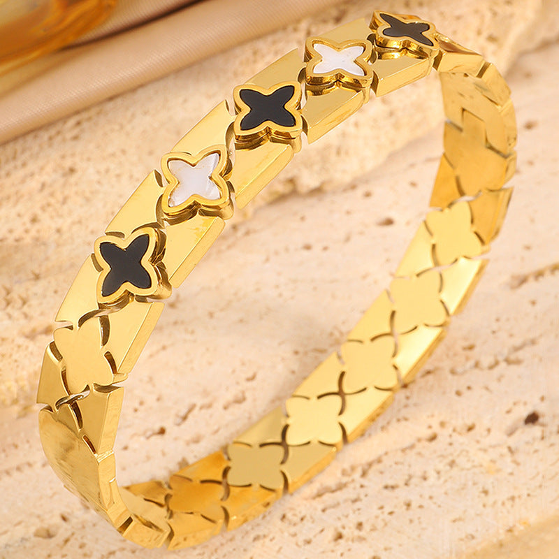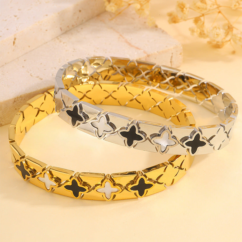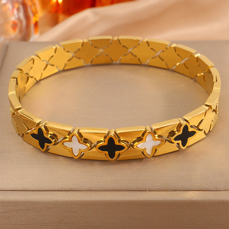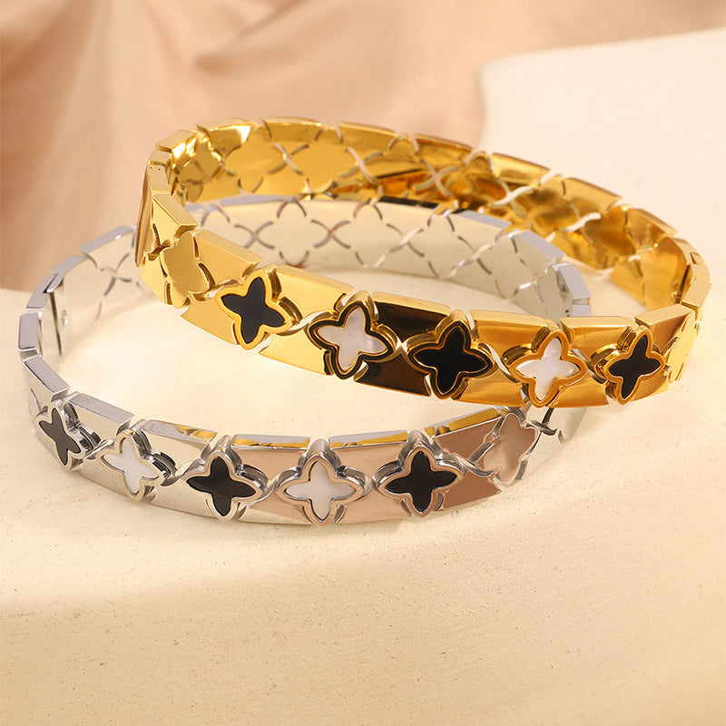 跨境歐美時尚華格夫四葉鈦鋼手鐲鏤空貝殼情侶款不掉色手鐲飾品