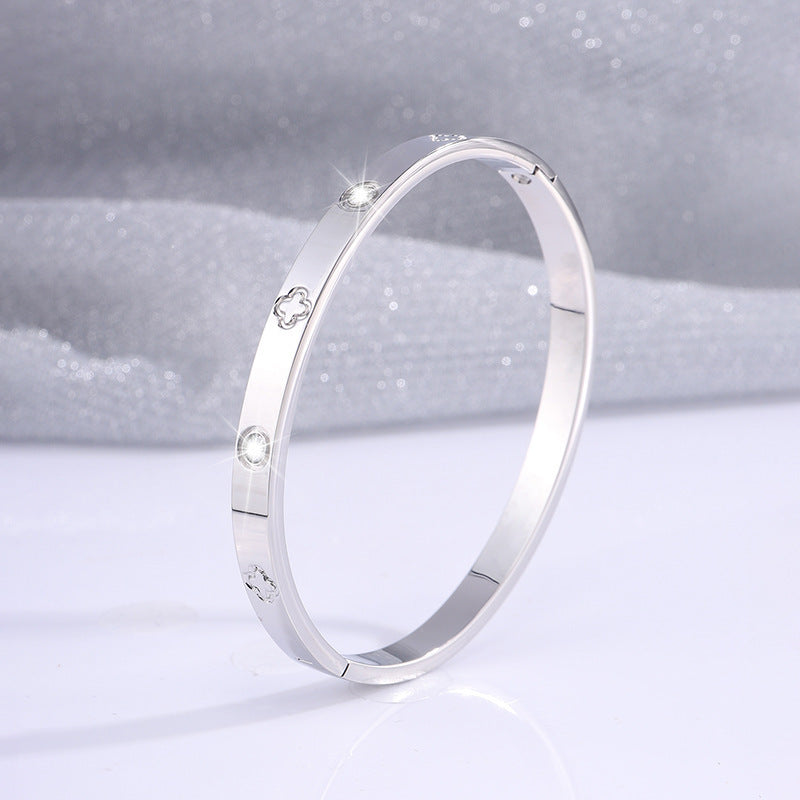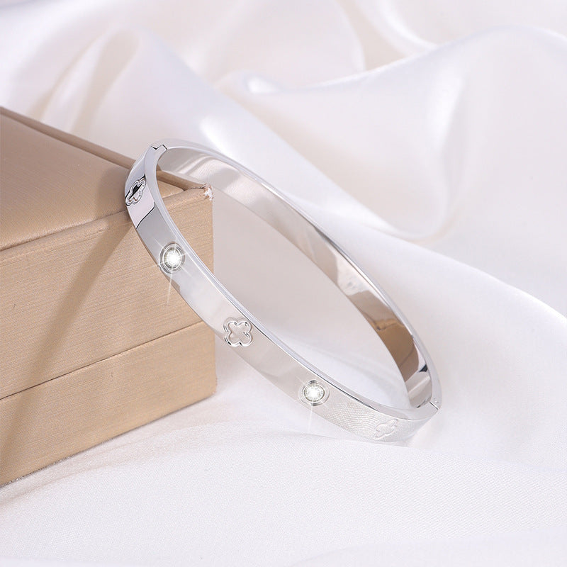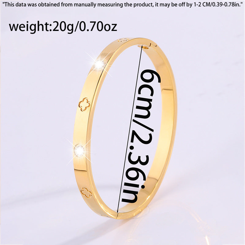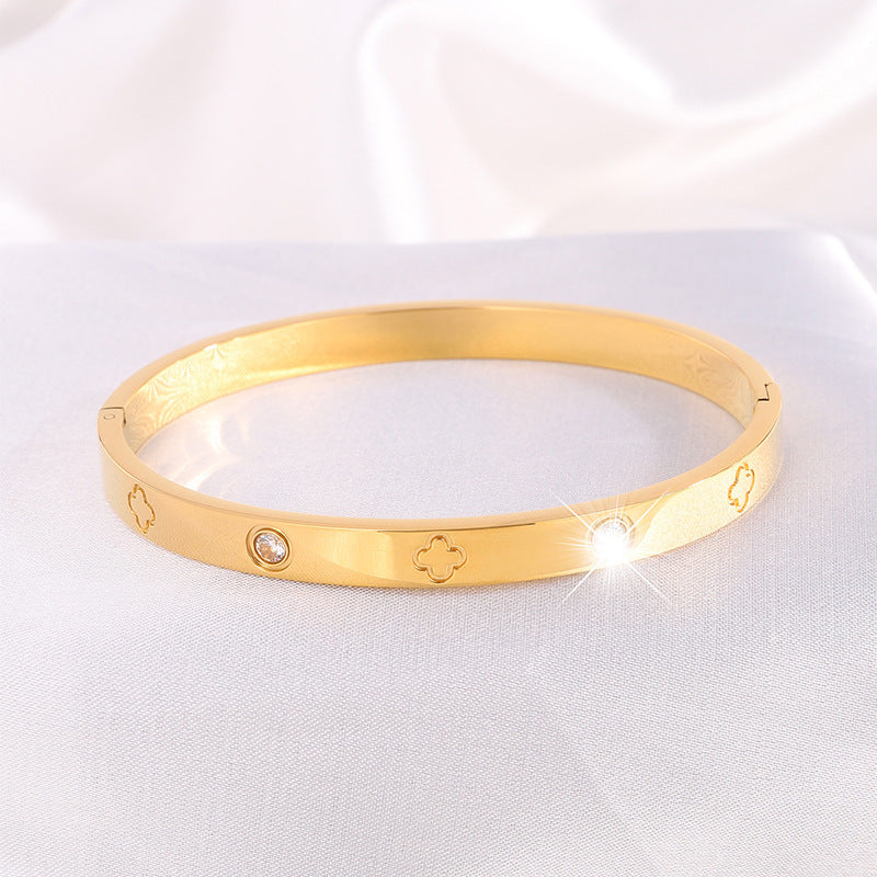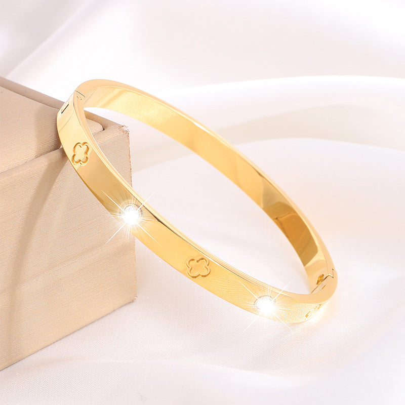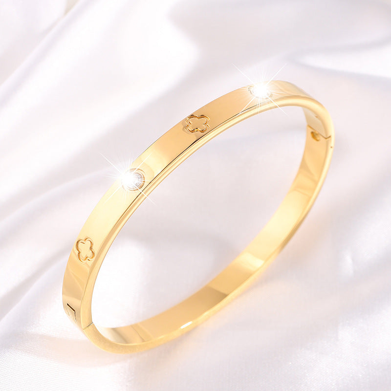 鈦鋼手鐲四葉花壓印手鐲女生高級感時尚網紅爆款不鏽鋼手鐲飾品