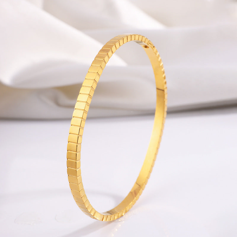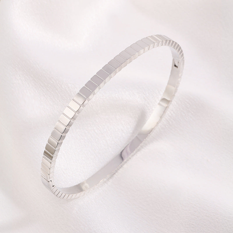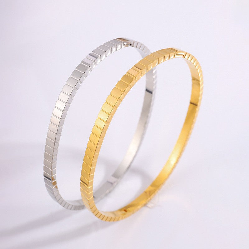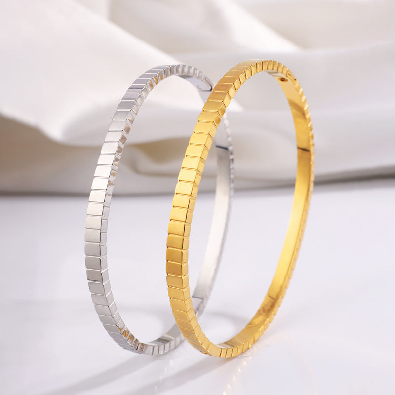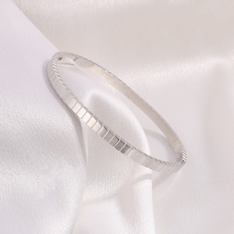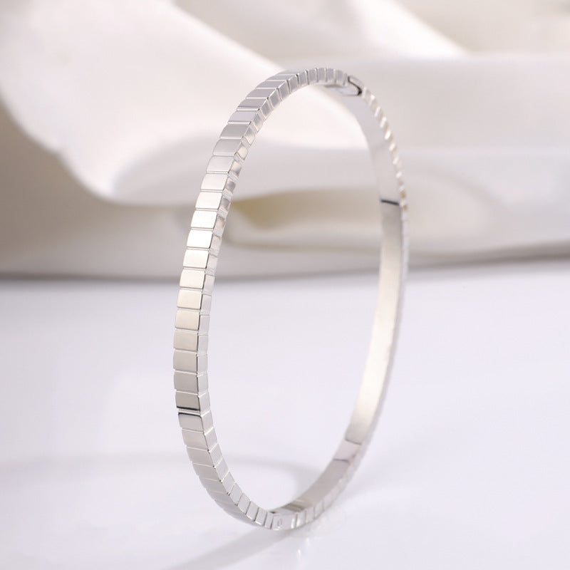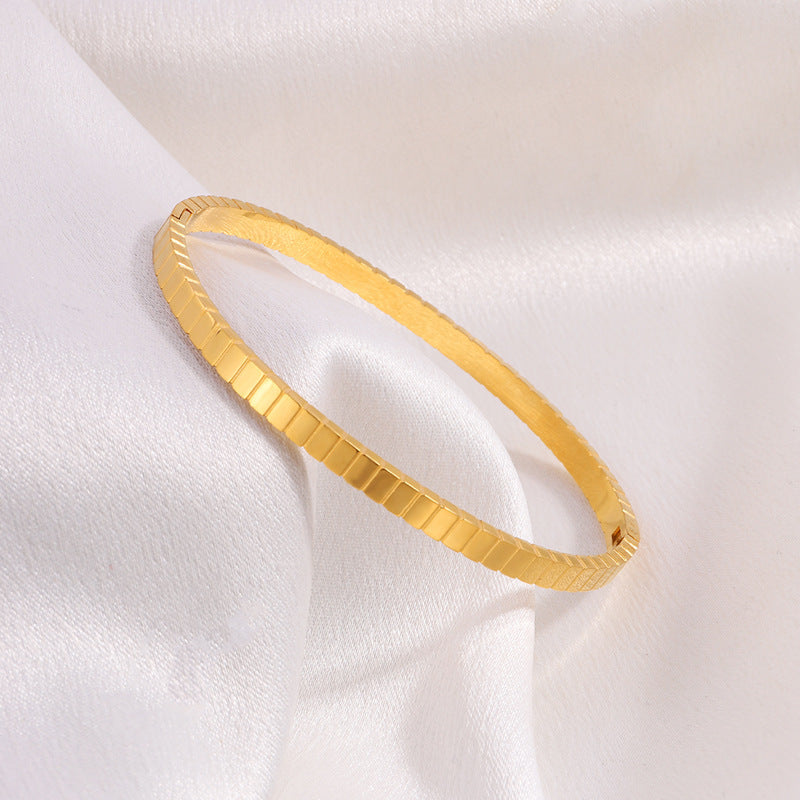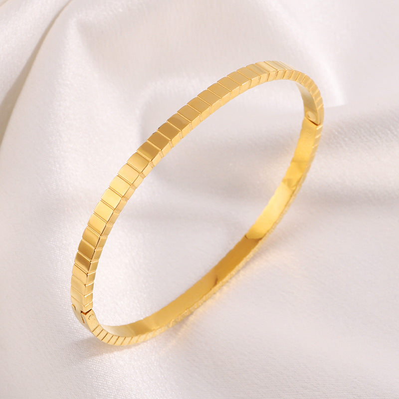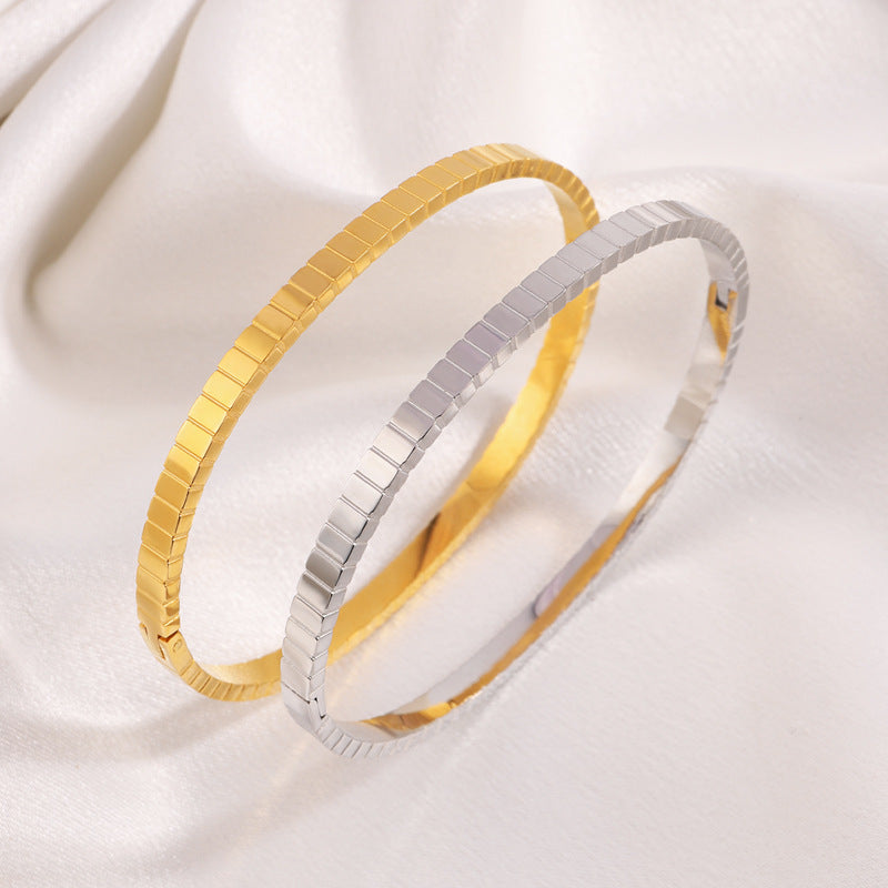 鈦鋼手鐲時尚簡約條紋開口不鏽鋼手鐲女生高級感不掉色百搭手環