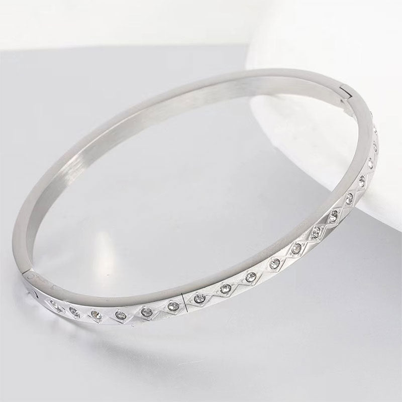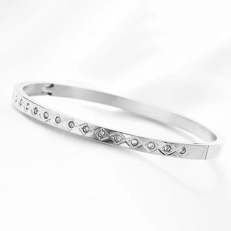 鈦鋼手鐲菱形電鍍圓形不鏽鋼手鐲女生高級感時尚輕奢風不掉色手環