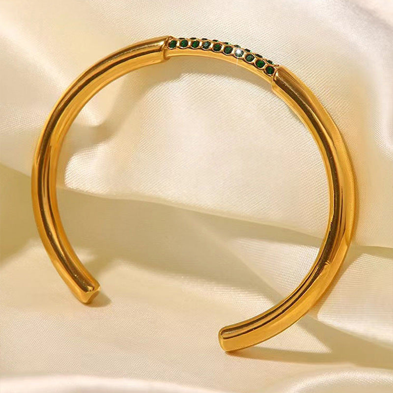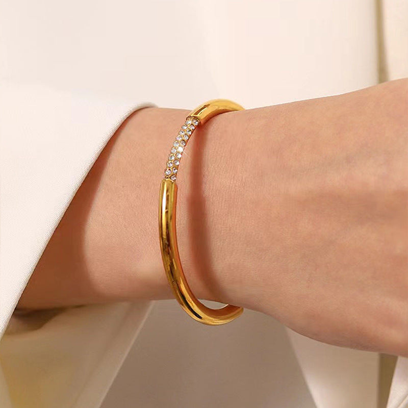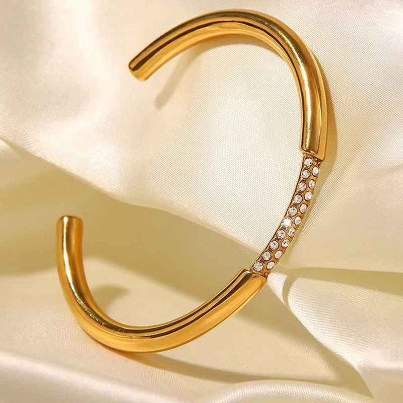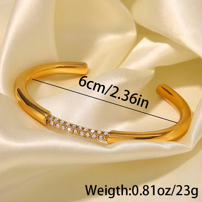 鈦鋼手鐲鑲鑽C形小衆設計歐美風排鑽簡約氣質光面復古不鏽鋼手環