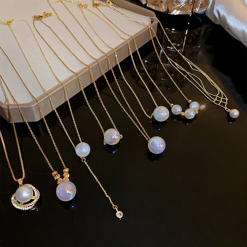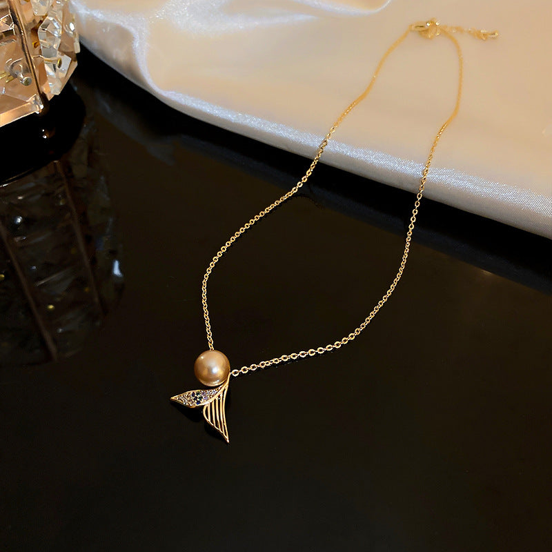 韓國氣質幾何魚尾珍珠項鍊輕奢高級感鎖骨鏈時尚百搭精緻項飾