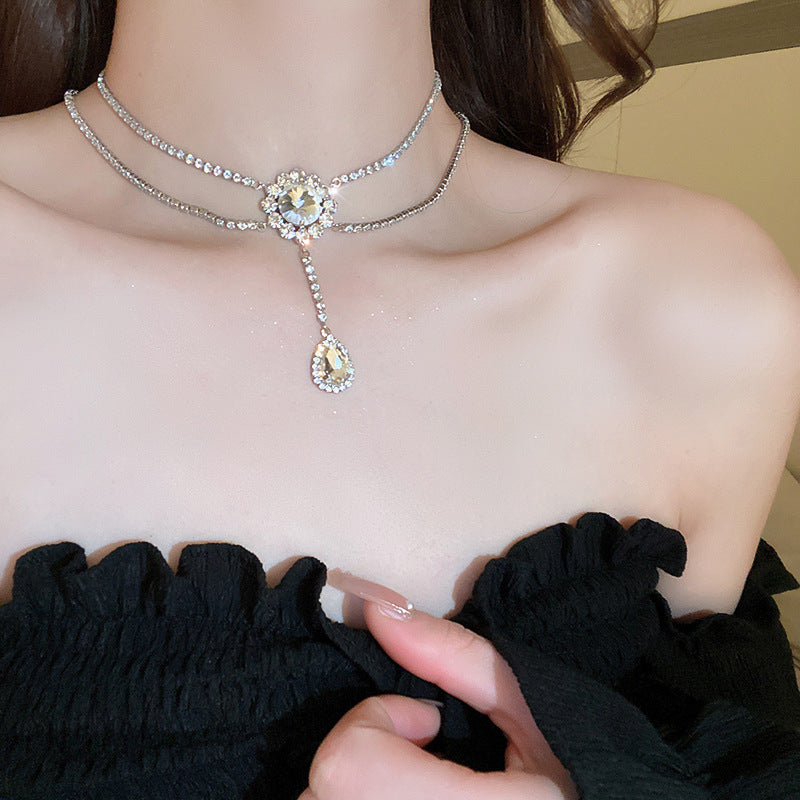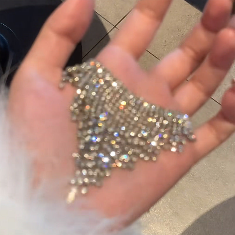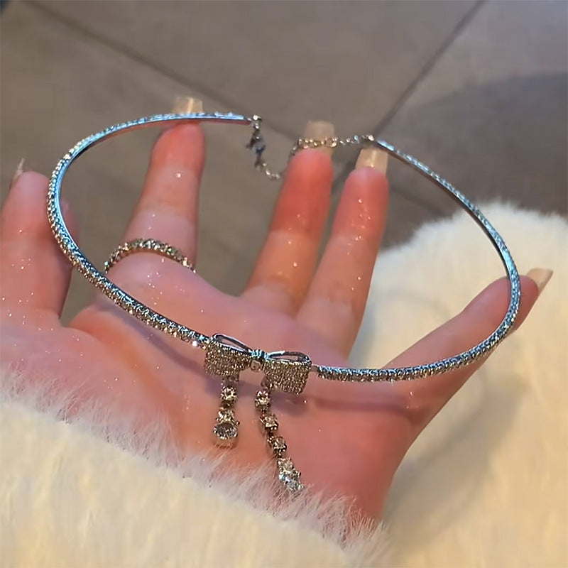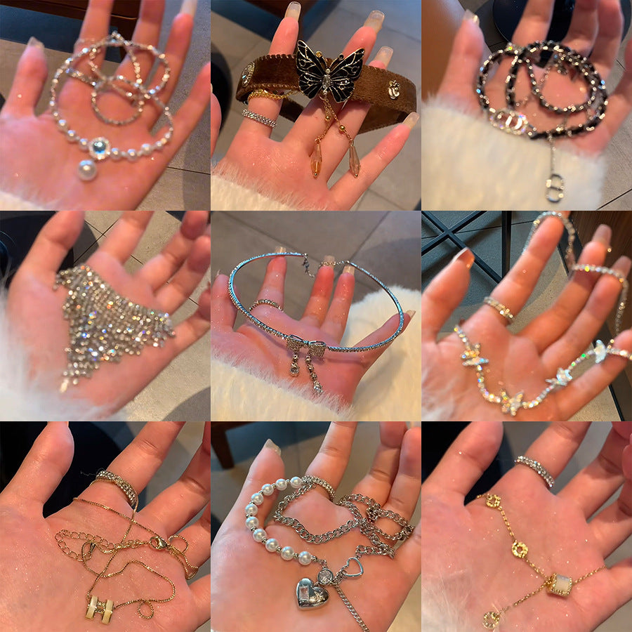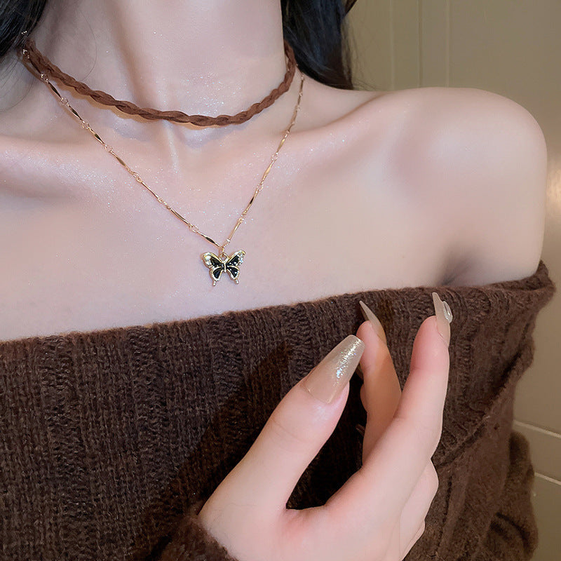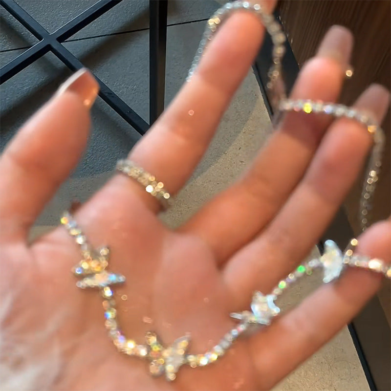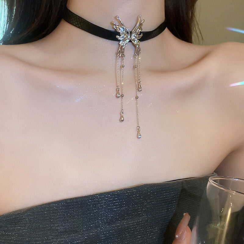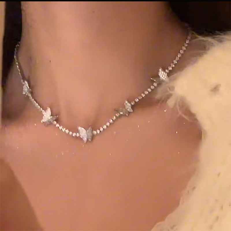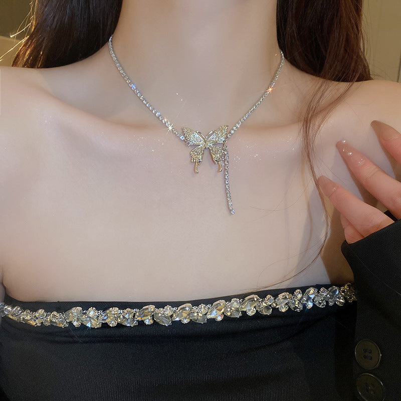 韓國超仙鑲鑽蝴蝶流蘇珍珠項鍊通勤百搭鎖骨鏈網紅輕奢高級感項飾