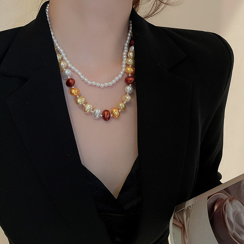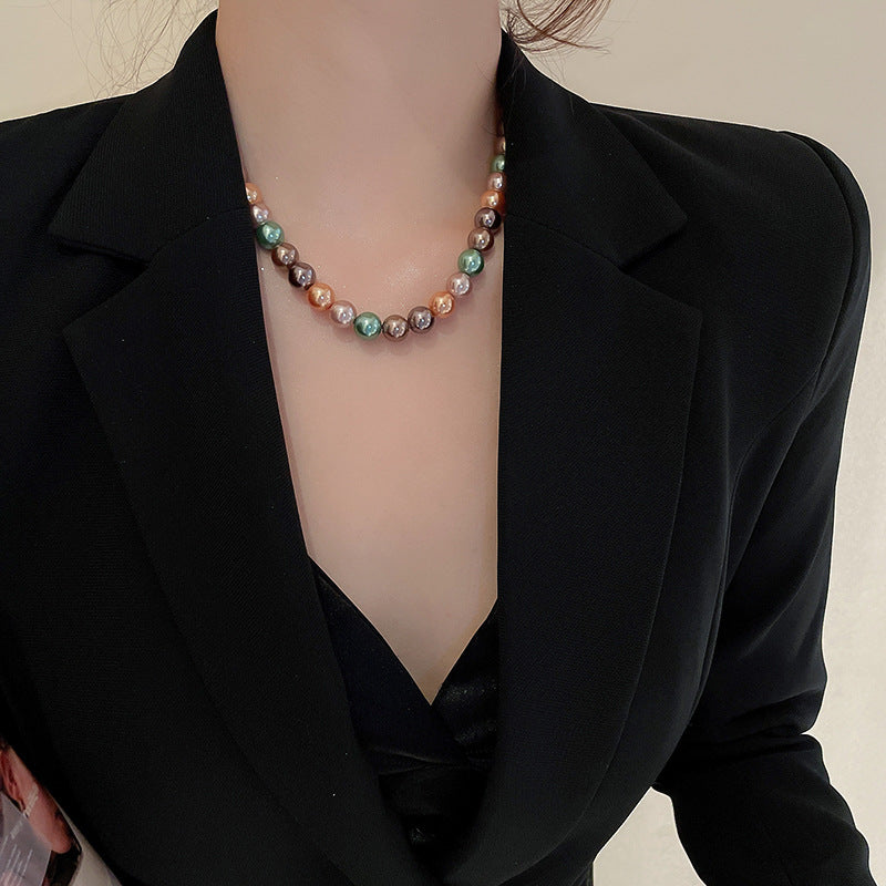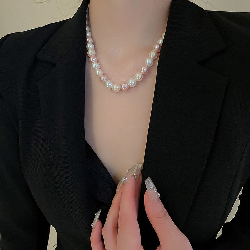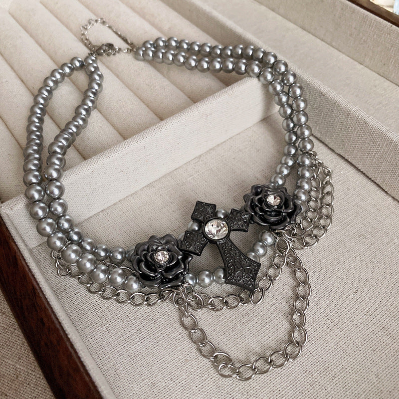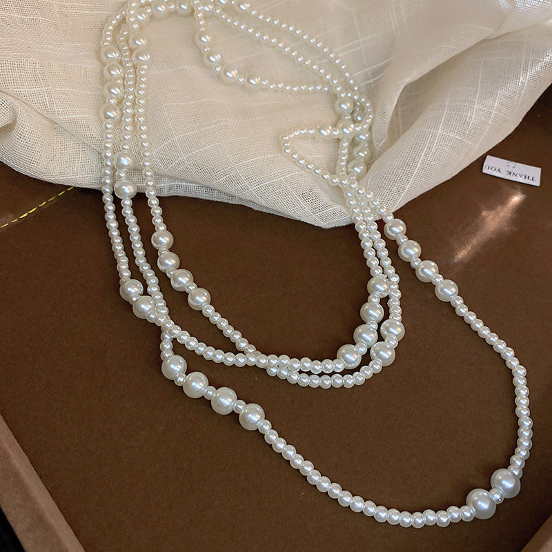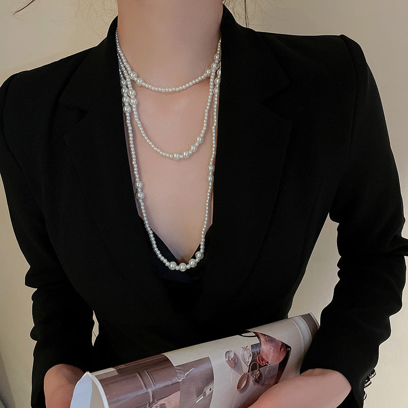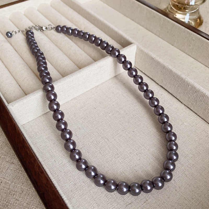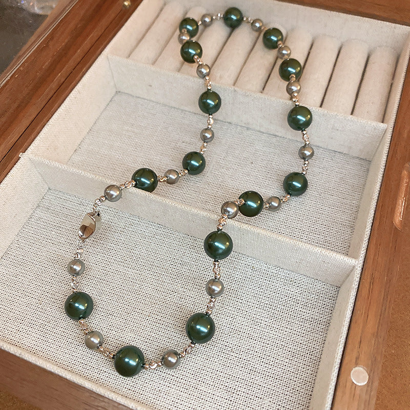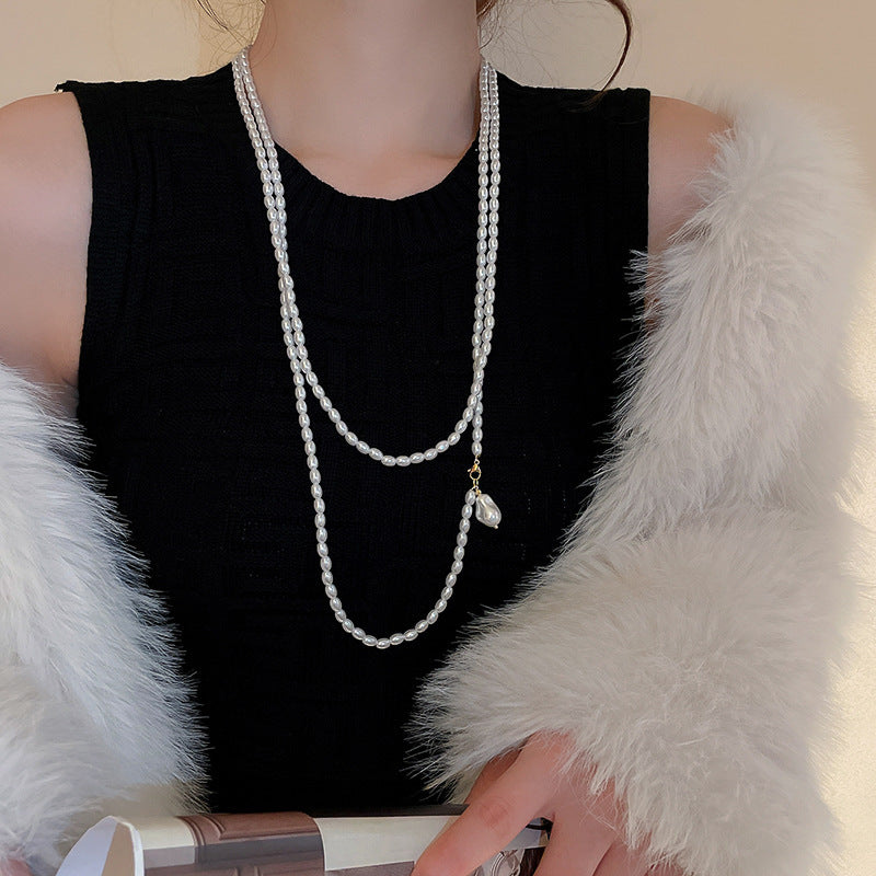 高級感鑲鑽灰色珍珠項鍊網紅氣質鎖骨鏈毛衣鏈秋冬輕奢復古項飾女