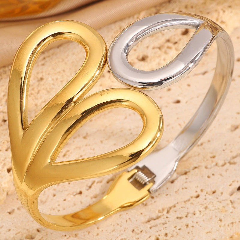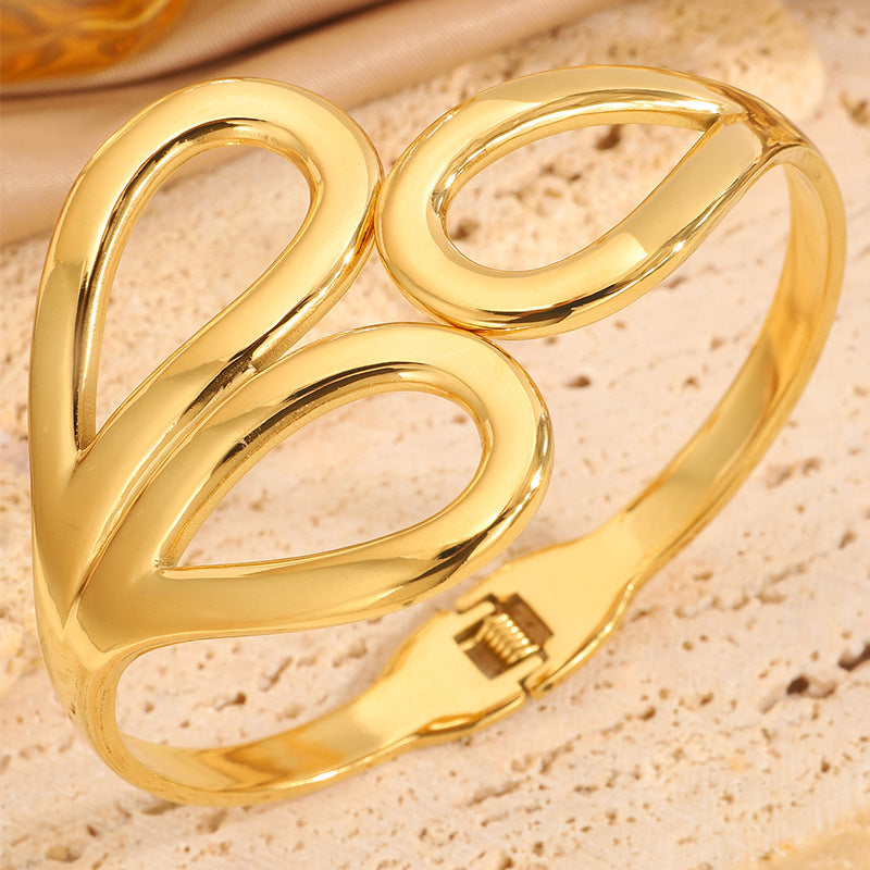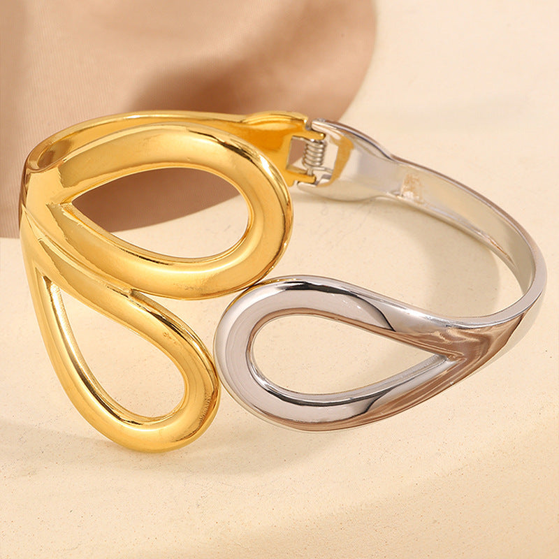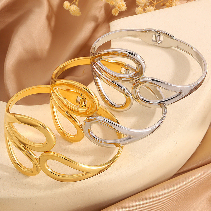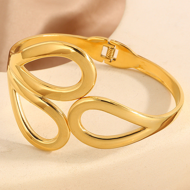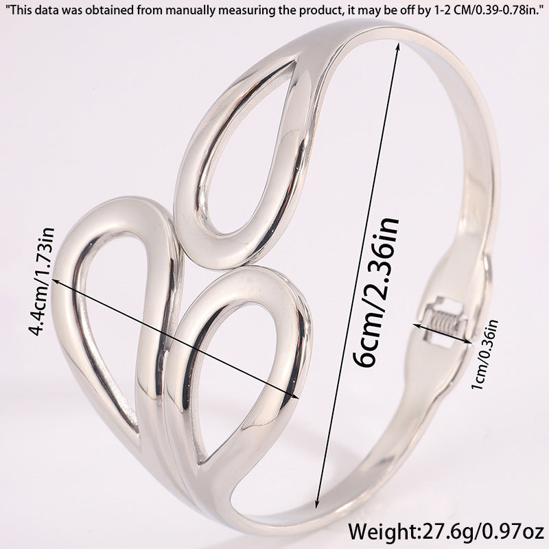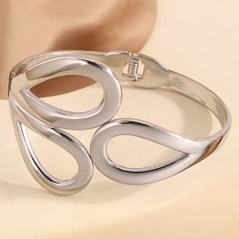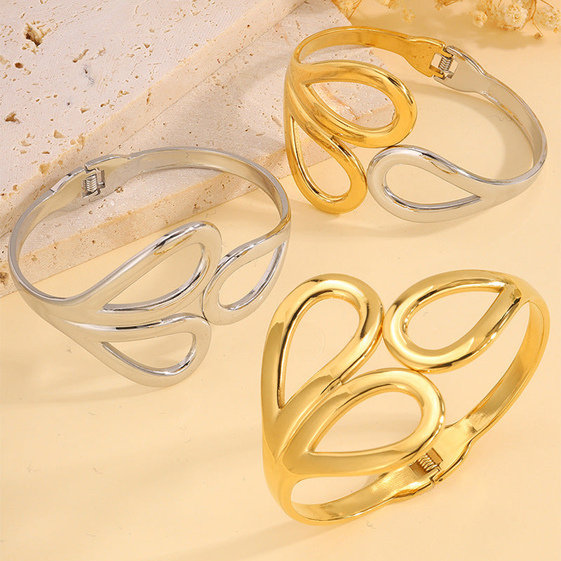 個性小衆設計感橢圓鏤空水滴開口鈦鋼手鐲ing冷淡風氣質手鐲飾品
