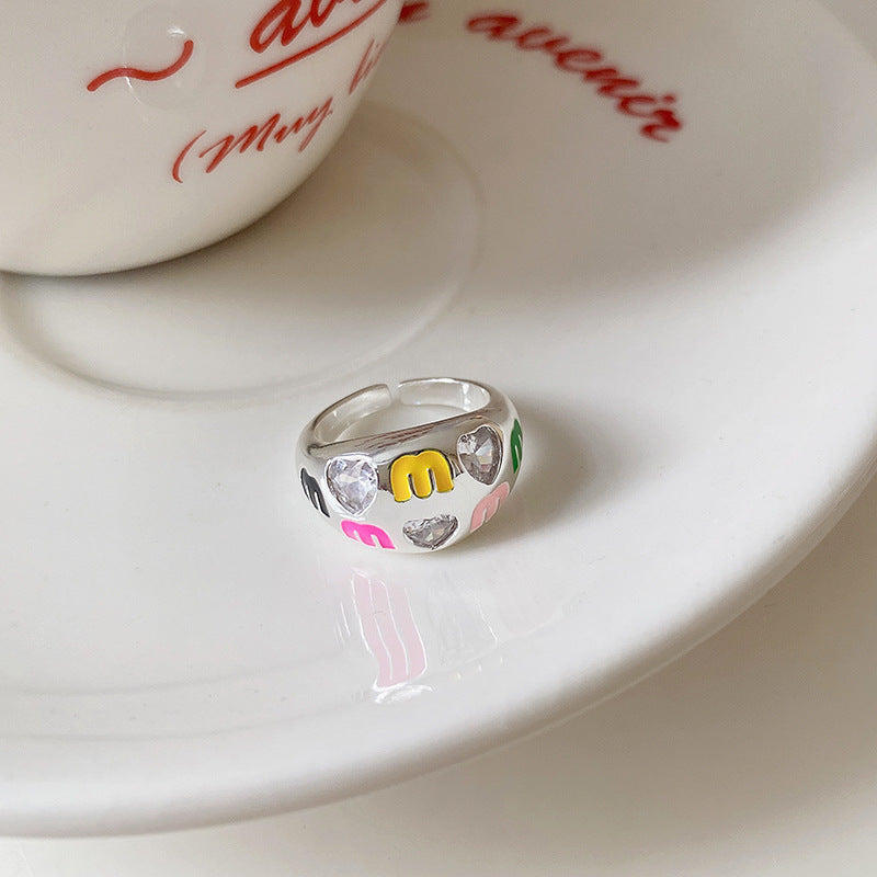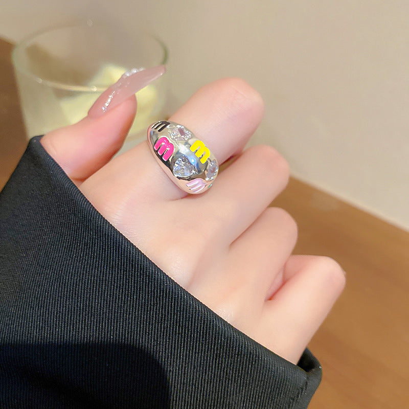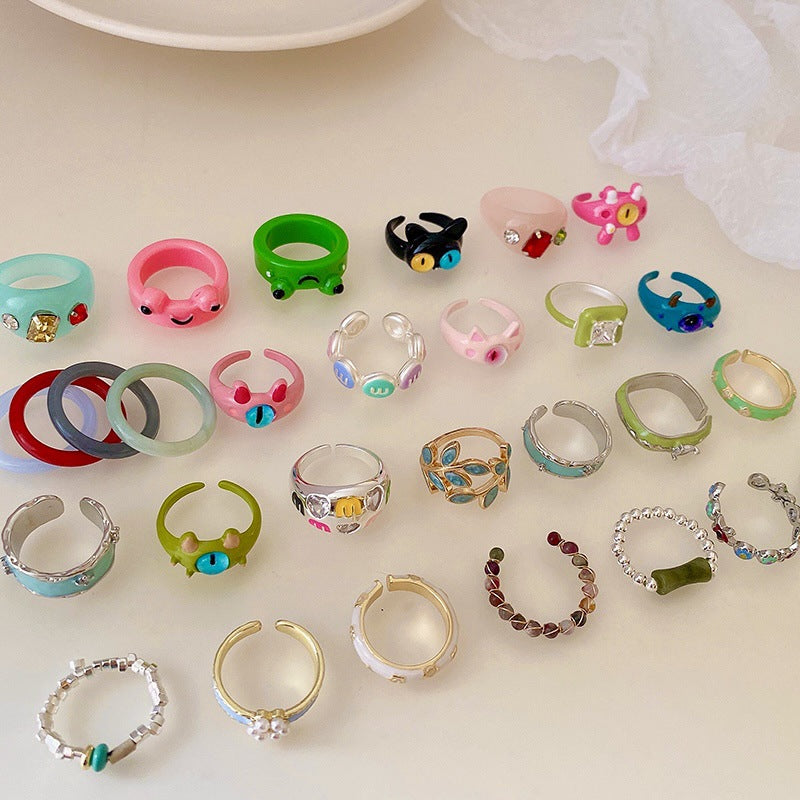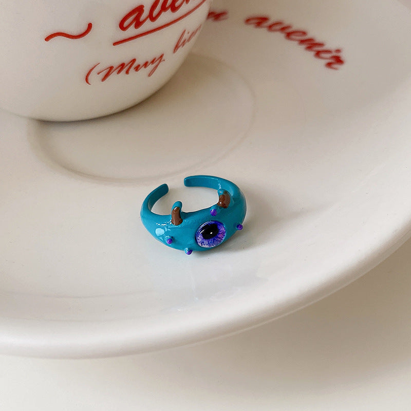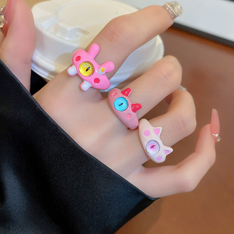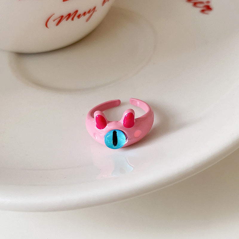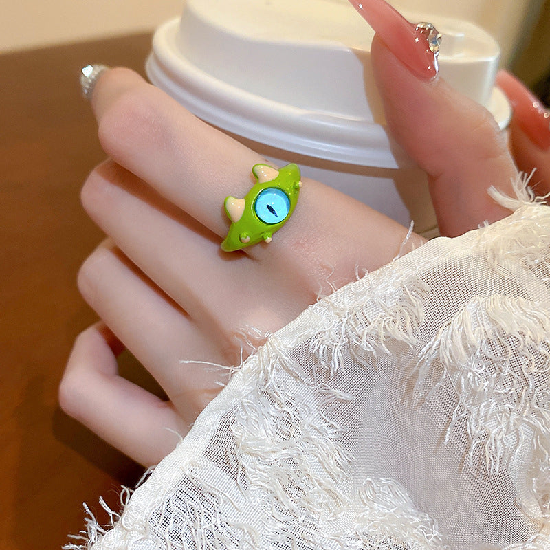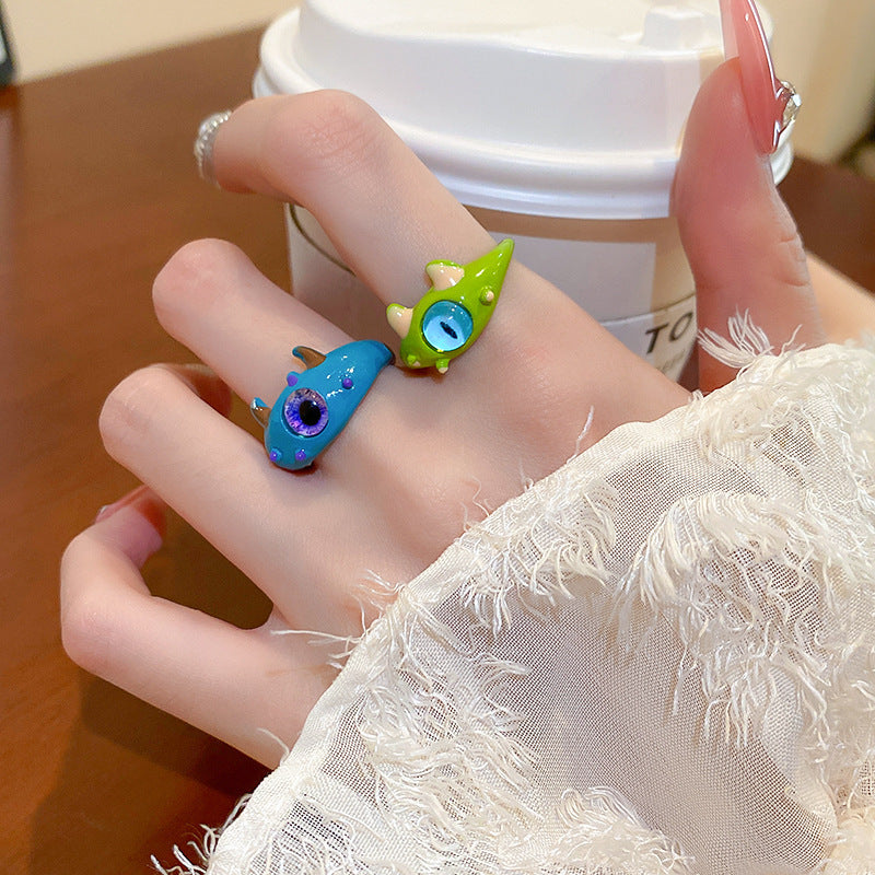 卡通惡魔眼睛青蛙人造碎銀形開口戒指時尚指環食指戒可愛新款手飾