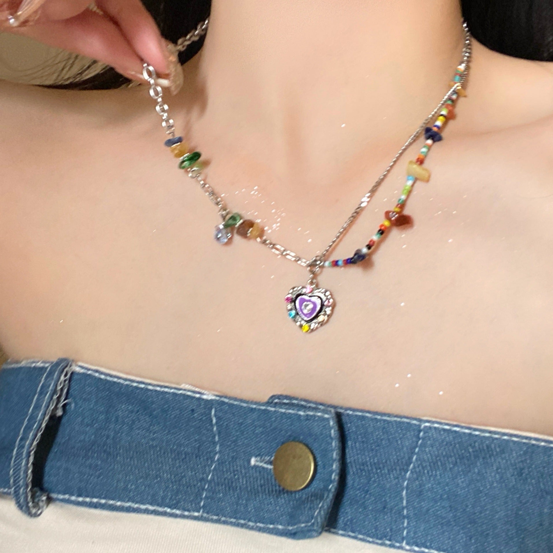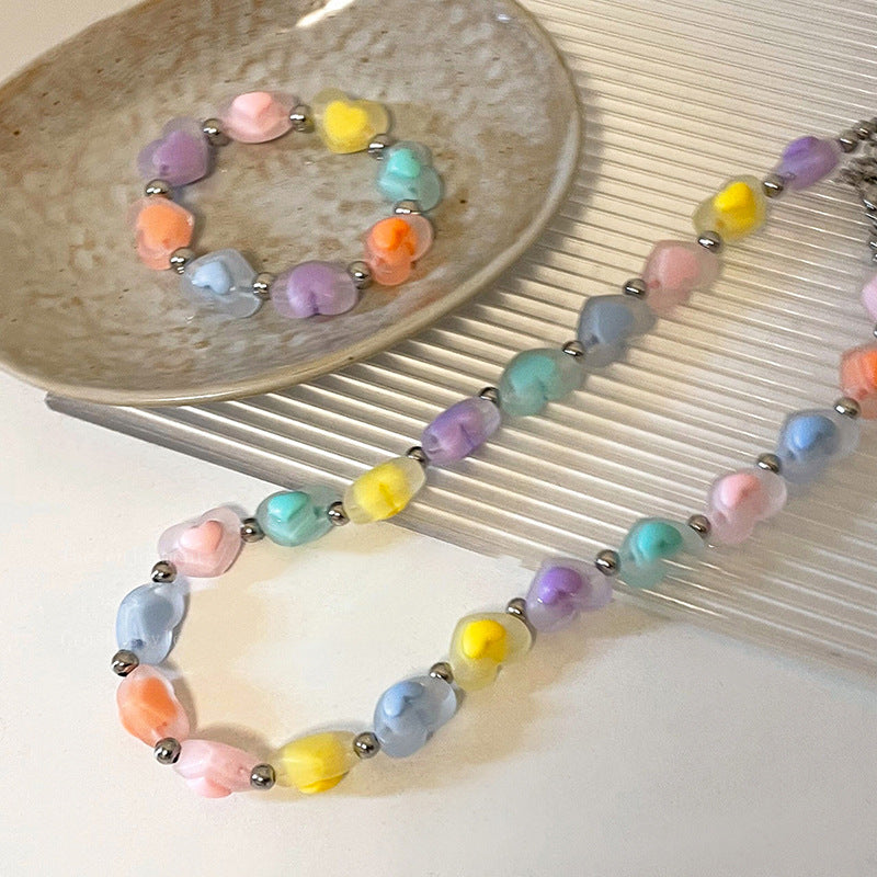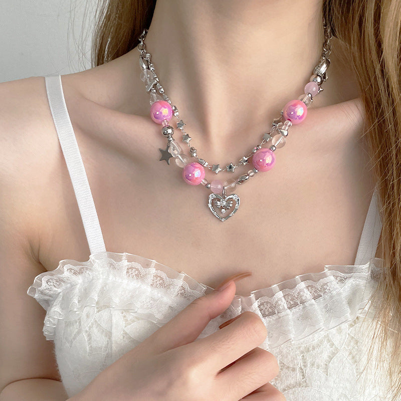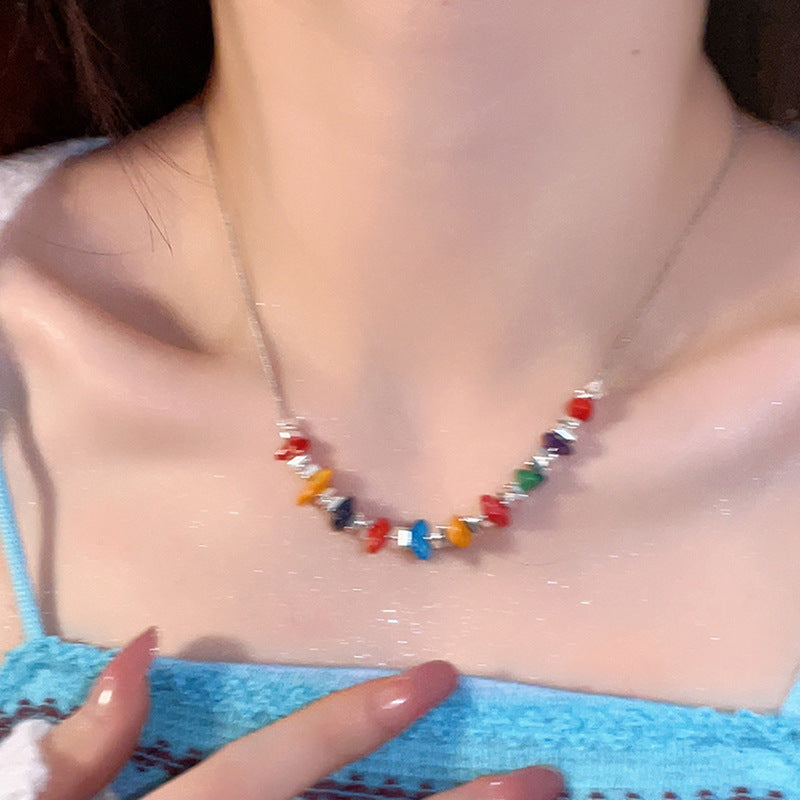 多巴胺彩色愛心星星蝴蝶花朵項鍊甜美小清新鎖骨鏈甜酷風超仙項飾