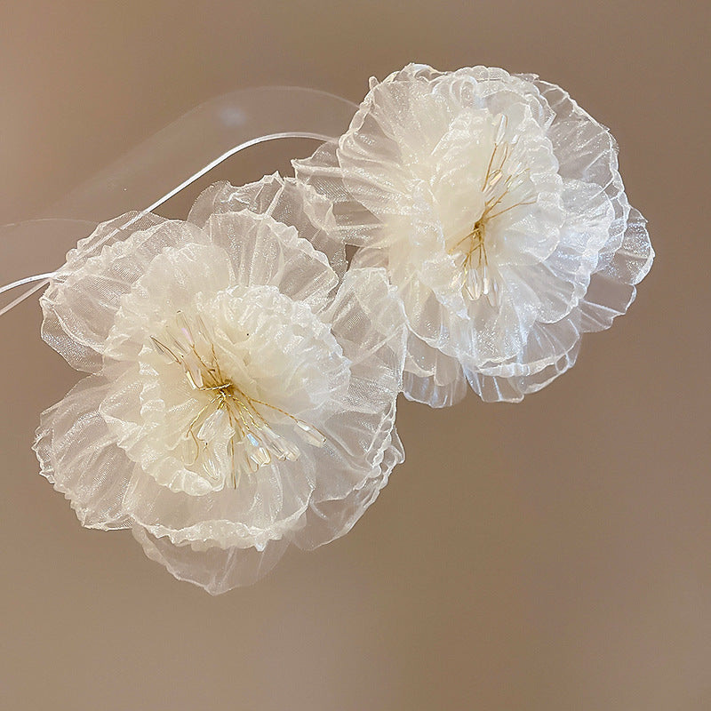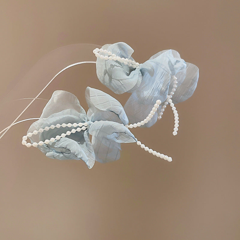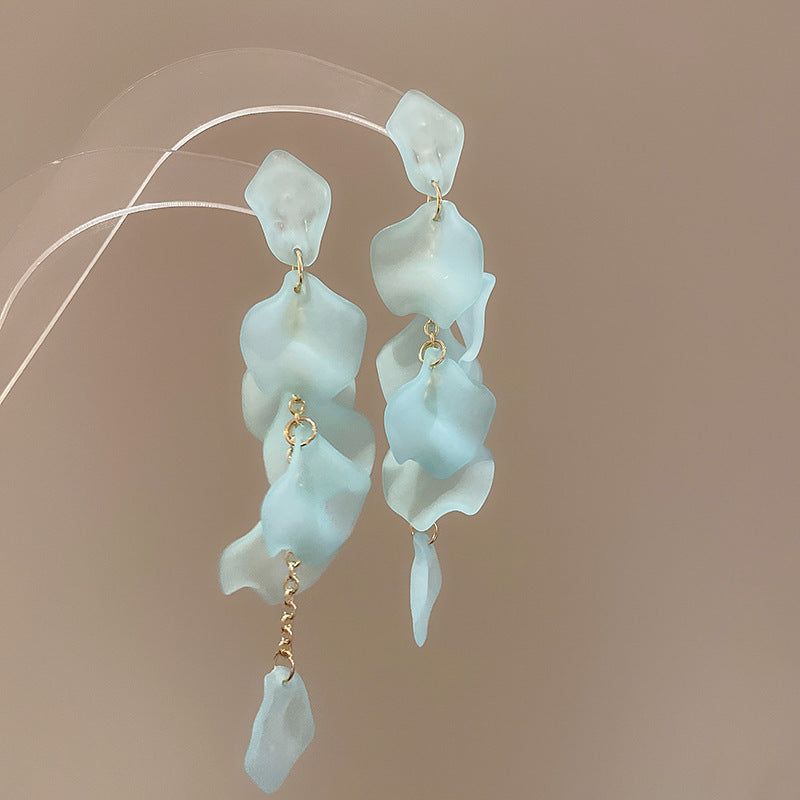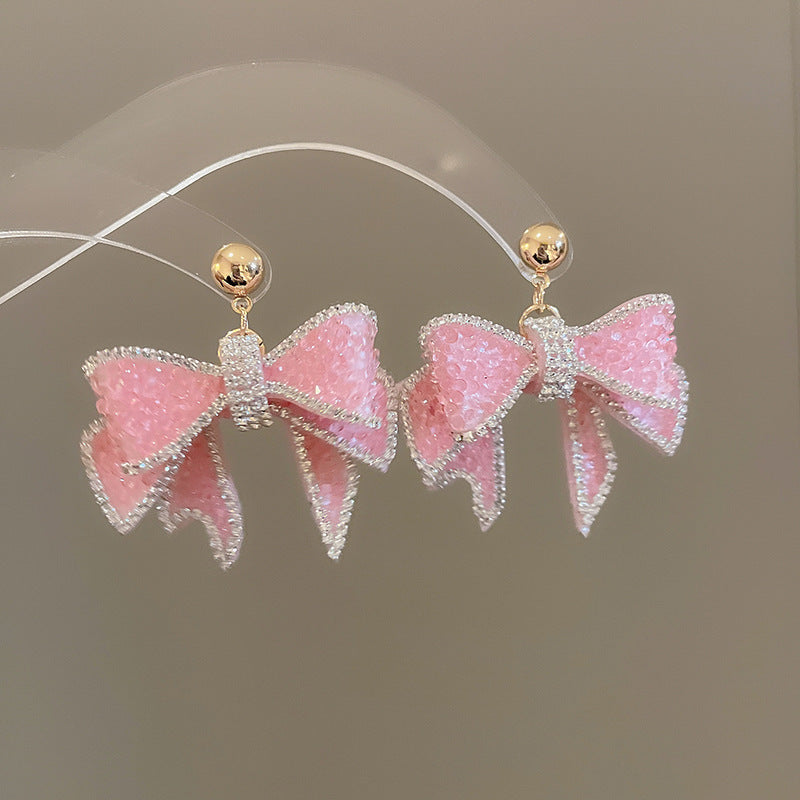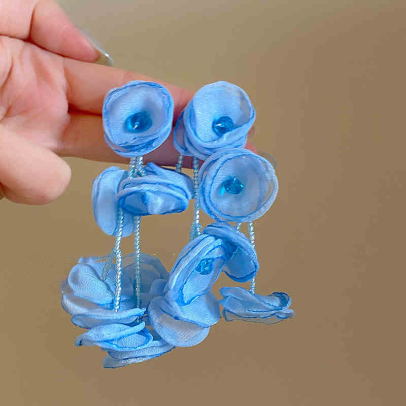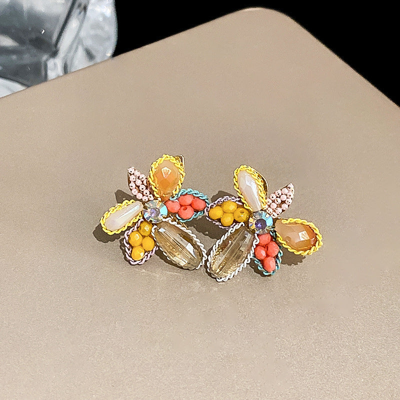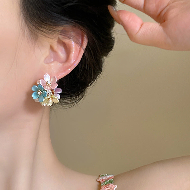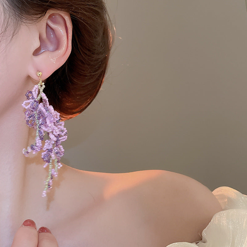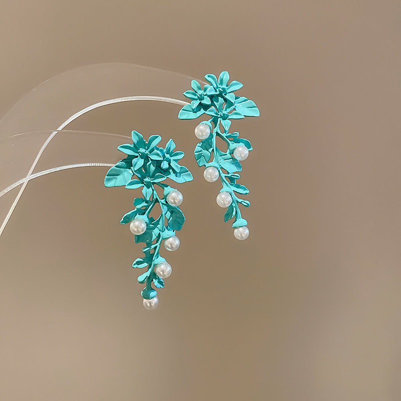 度假風粉色米珠花朵珍珠流蘇耳環少女氛圍感耳釘波西米亞甜美耳飾