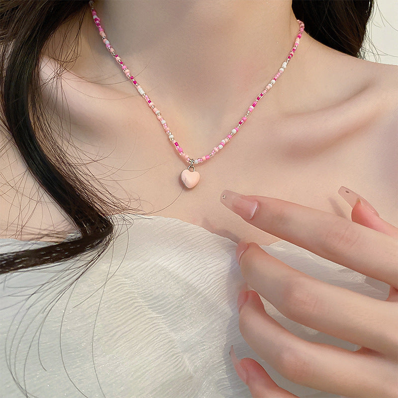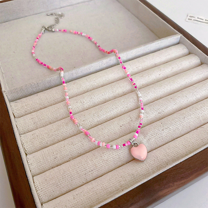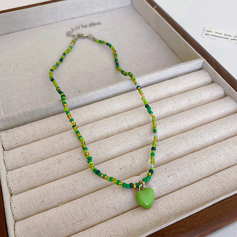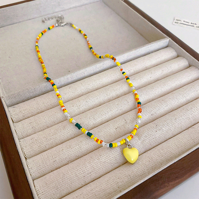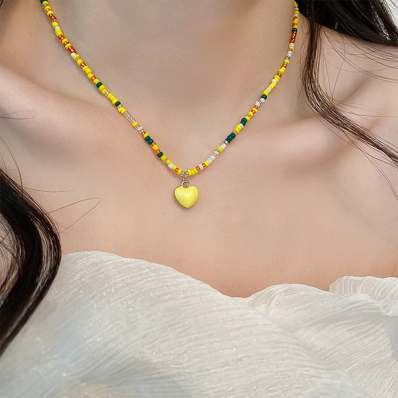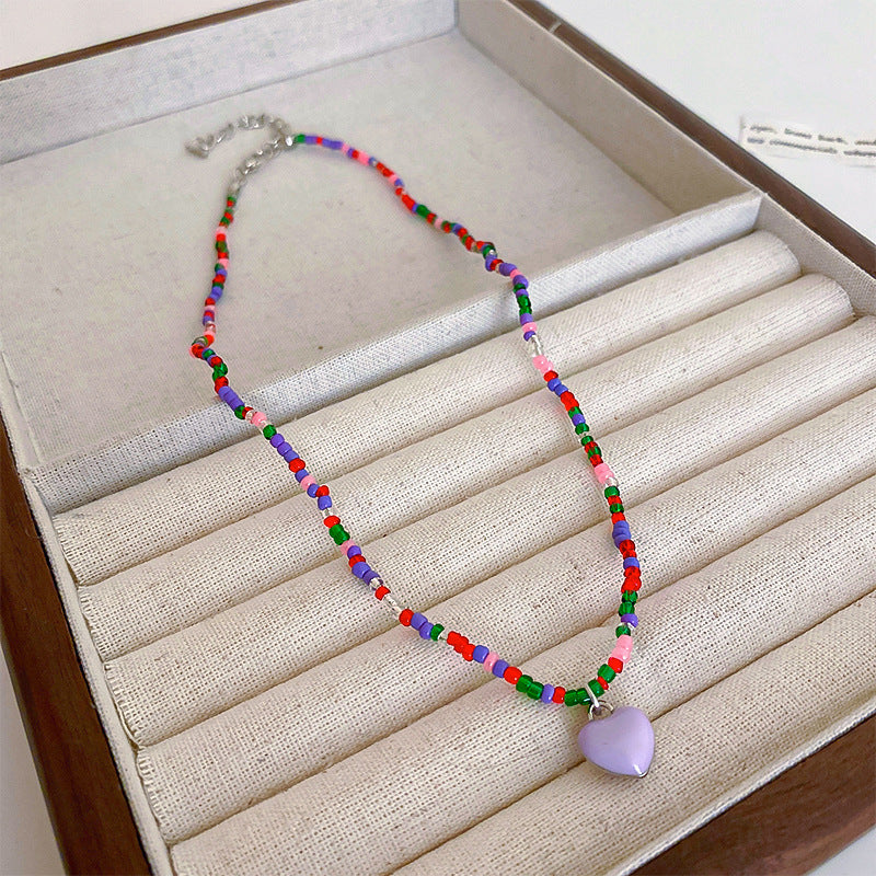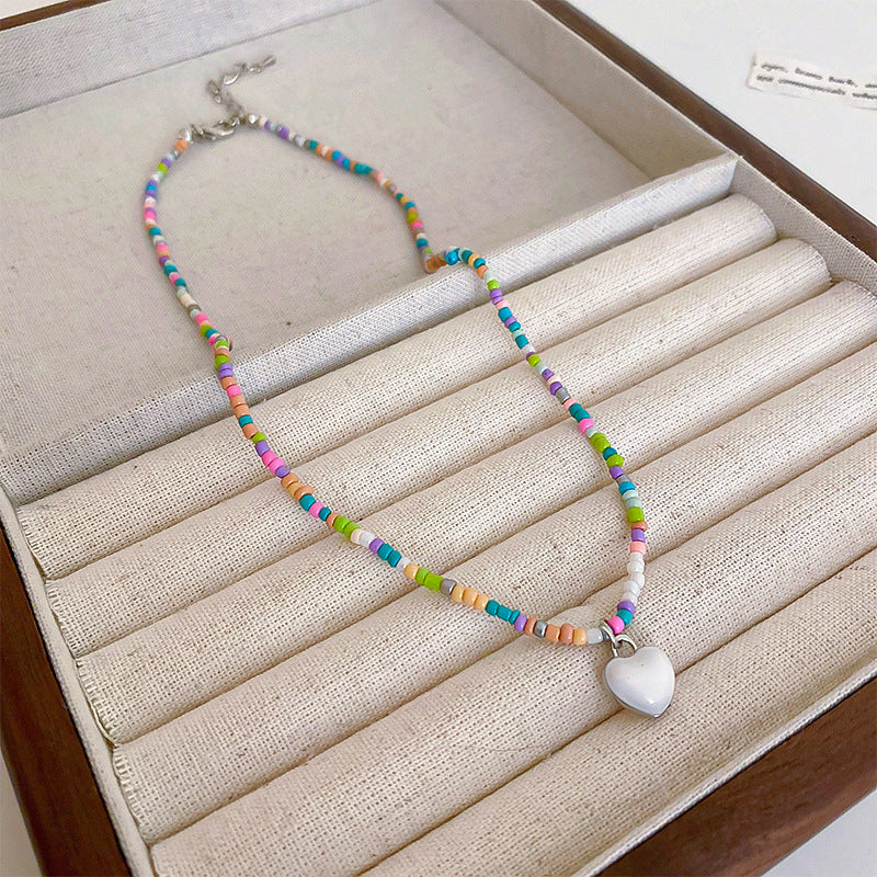 彩色米珠拼接愛心吊墜項鍊波西米亞小清新ins鎖骨鏈項墜甜美項飾