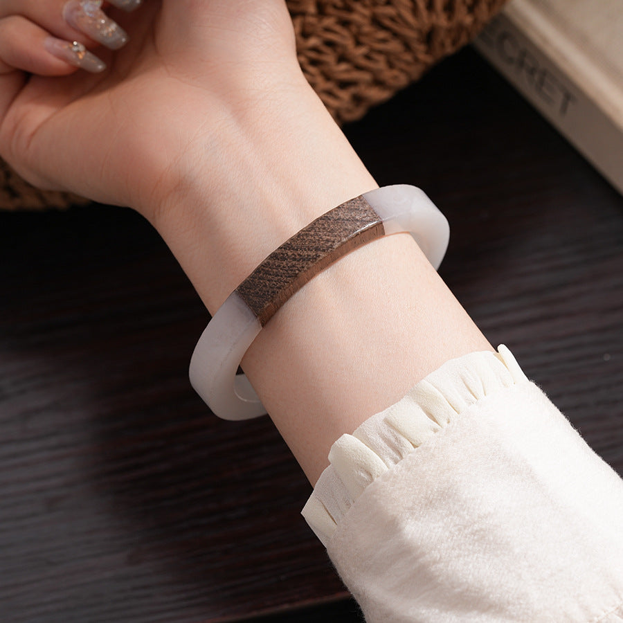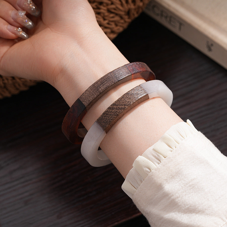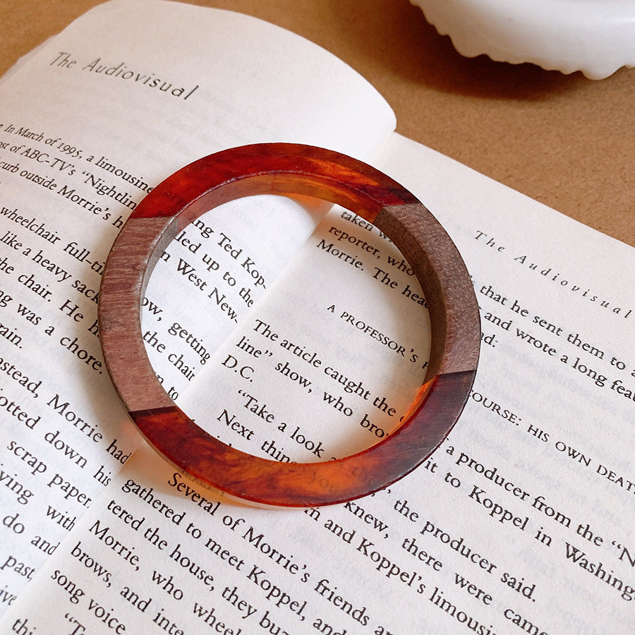 復古古風撞色圓形暈染手鐲時尚個性手鍊輕奢高級感手飾設計感樹脂