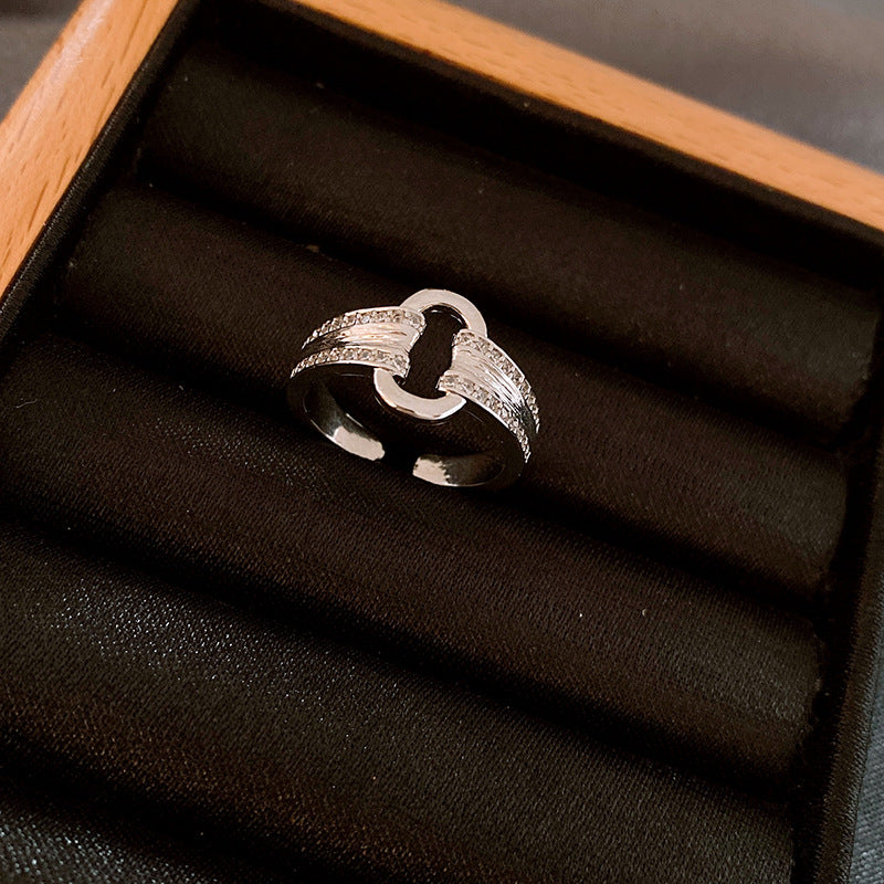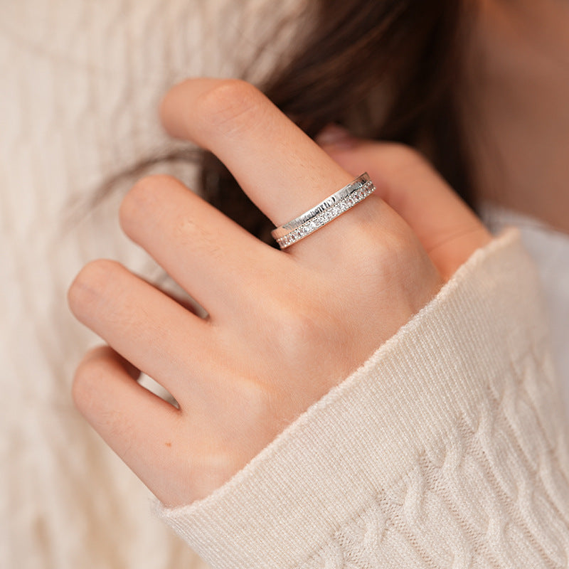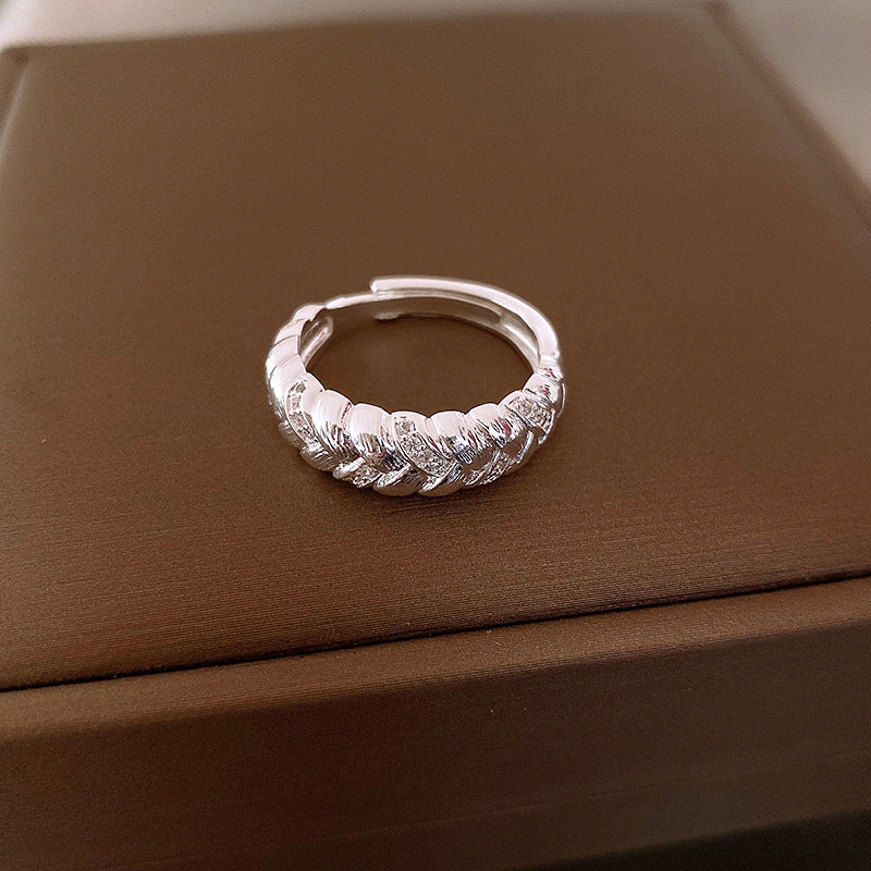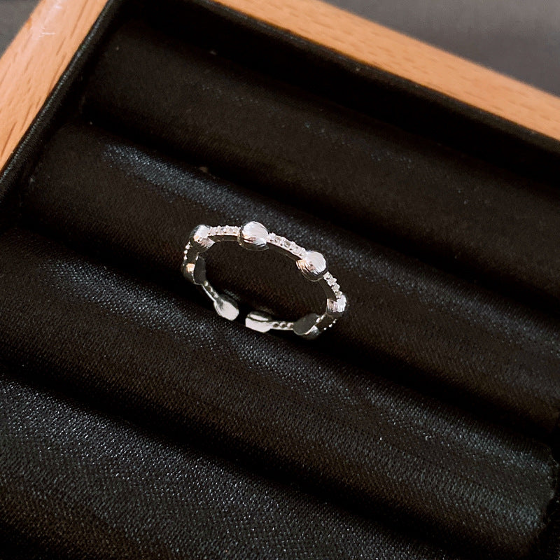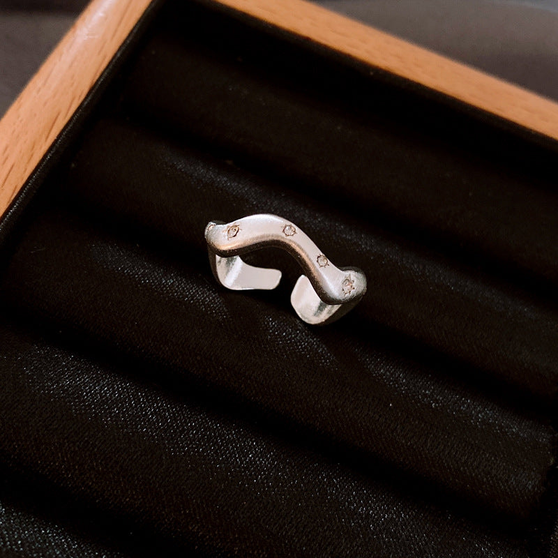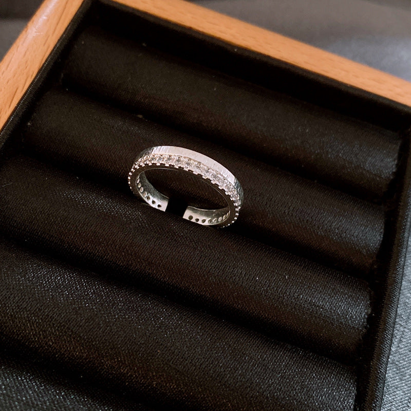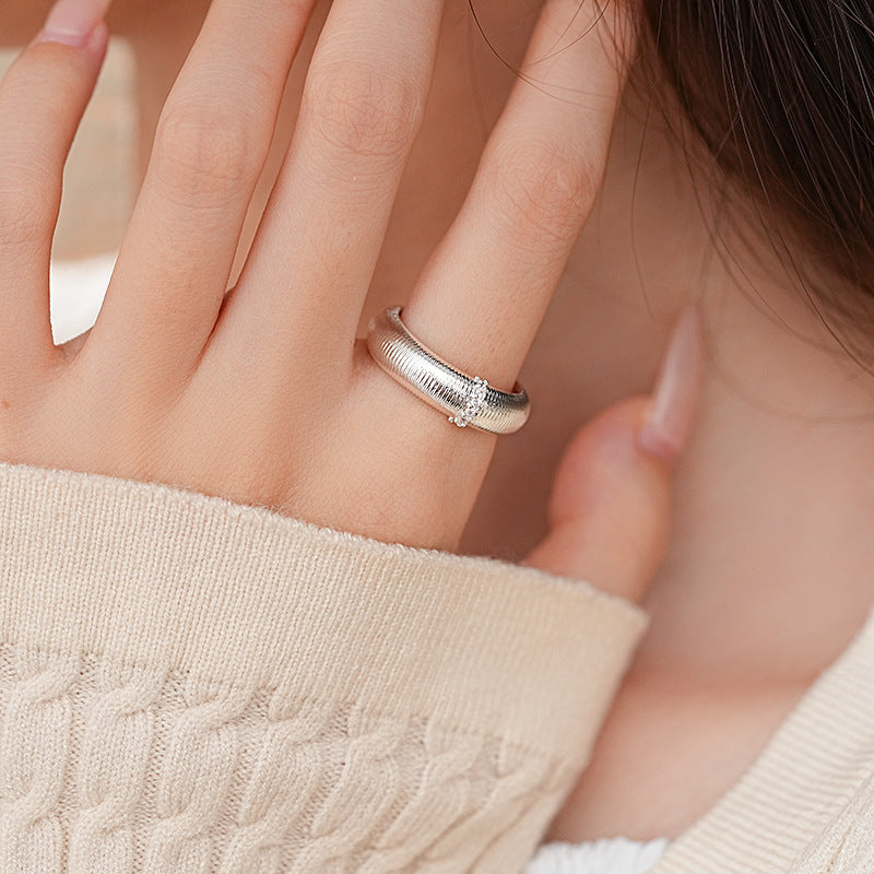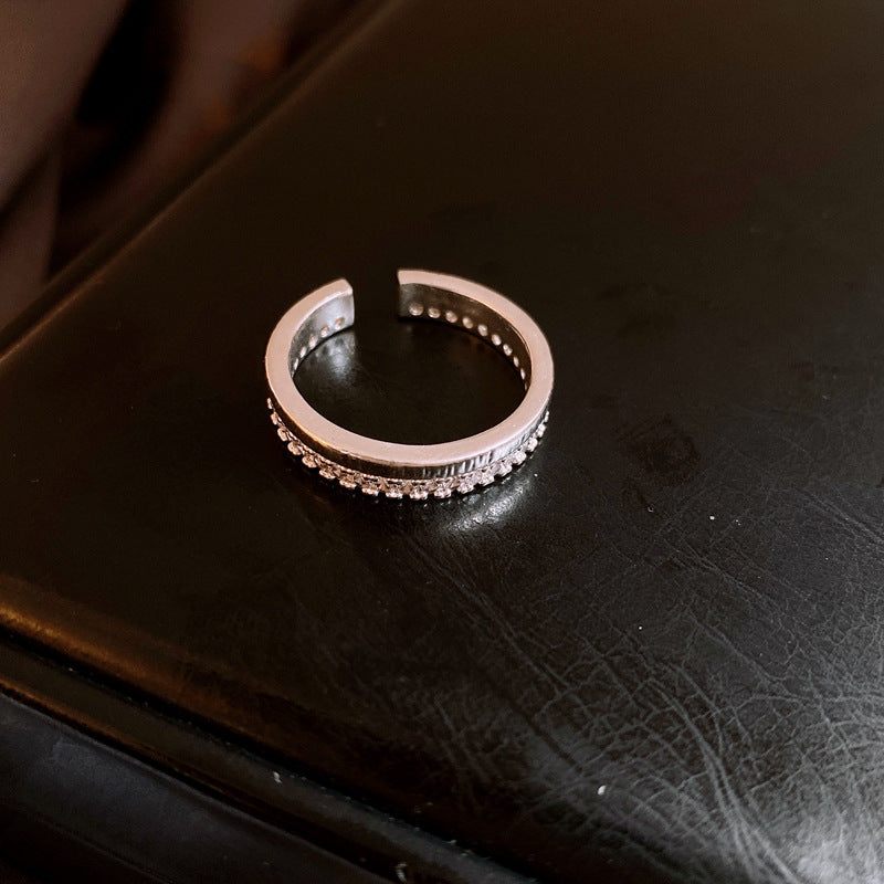 復古銀色拉絲竹節鋯石開口戒指時尚冷淡風食指戒簡約高級感手飾女