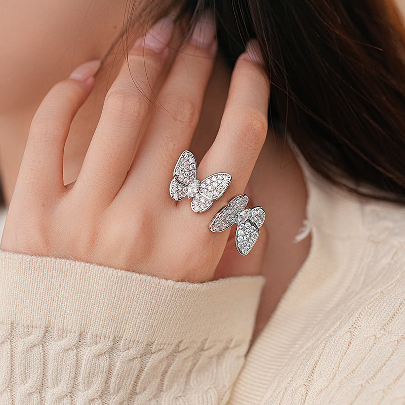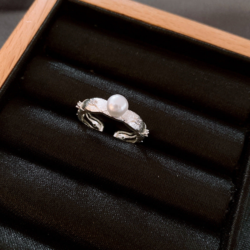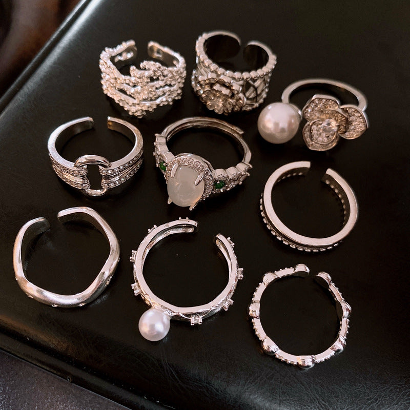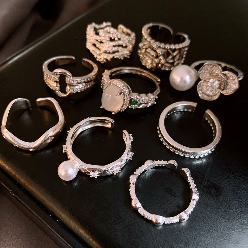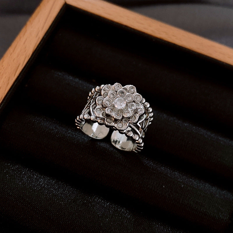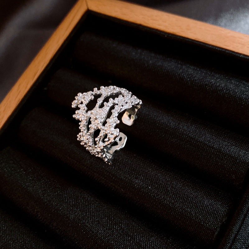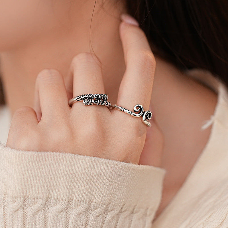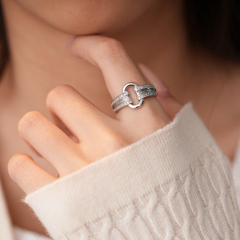 復古銀色拉絲竹節鋯石開口戒指時尚冷淡風食指戒簡約高級感手飾女
