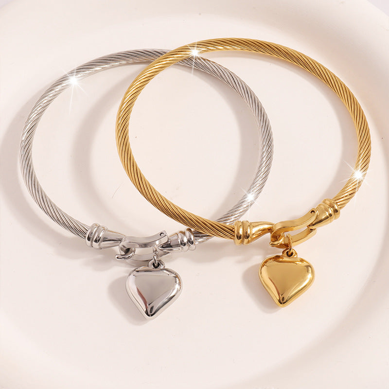 愛心鈦鋼手鐲滿天星馬蹄鉤精緻鑲鑽電鍍不鏽鋼小衆百搭風跨境手環