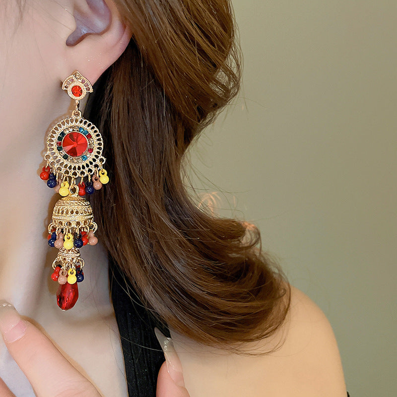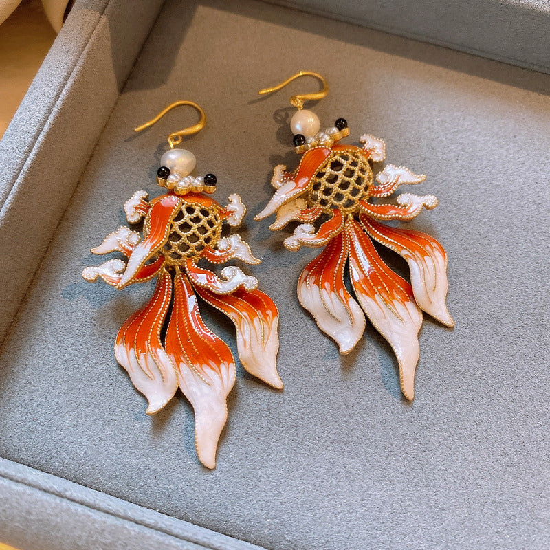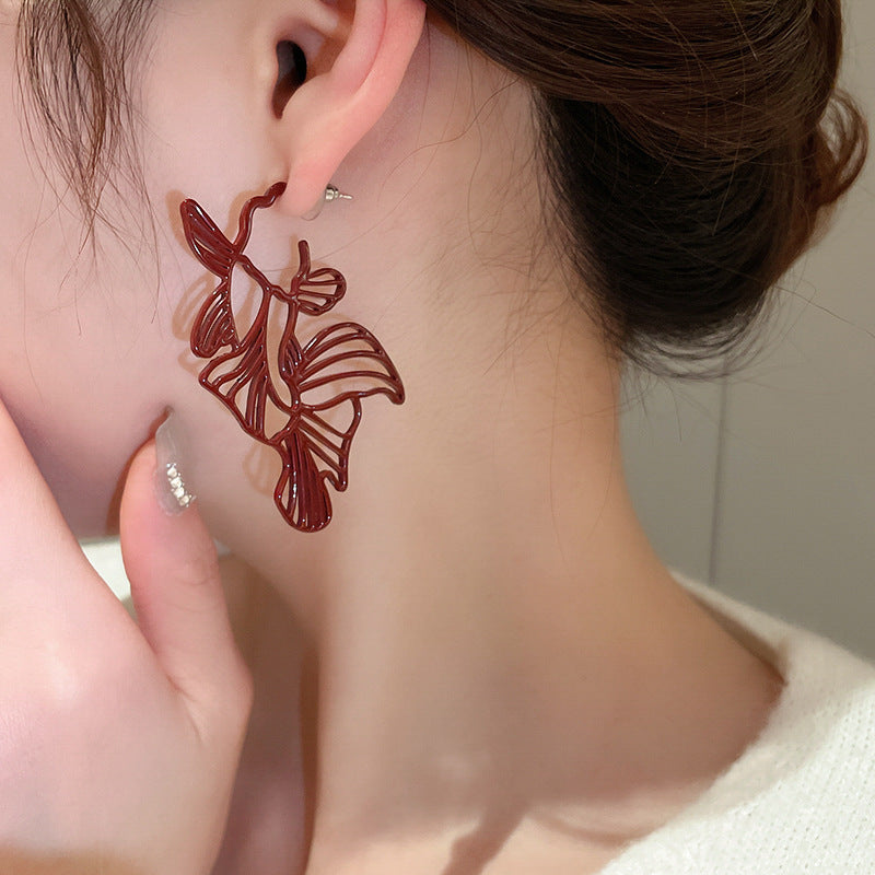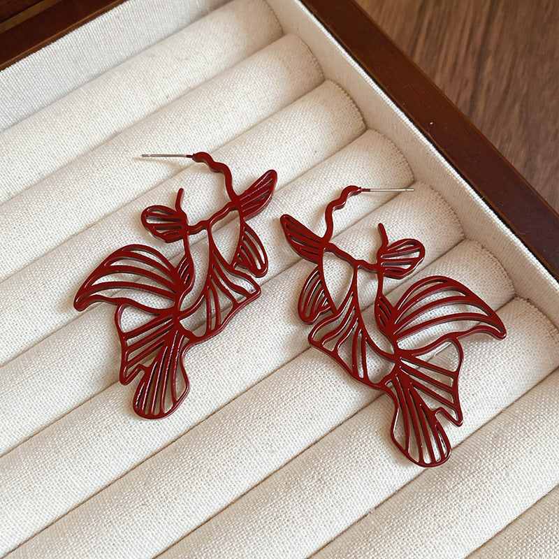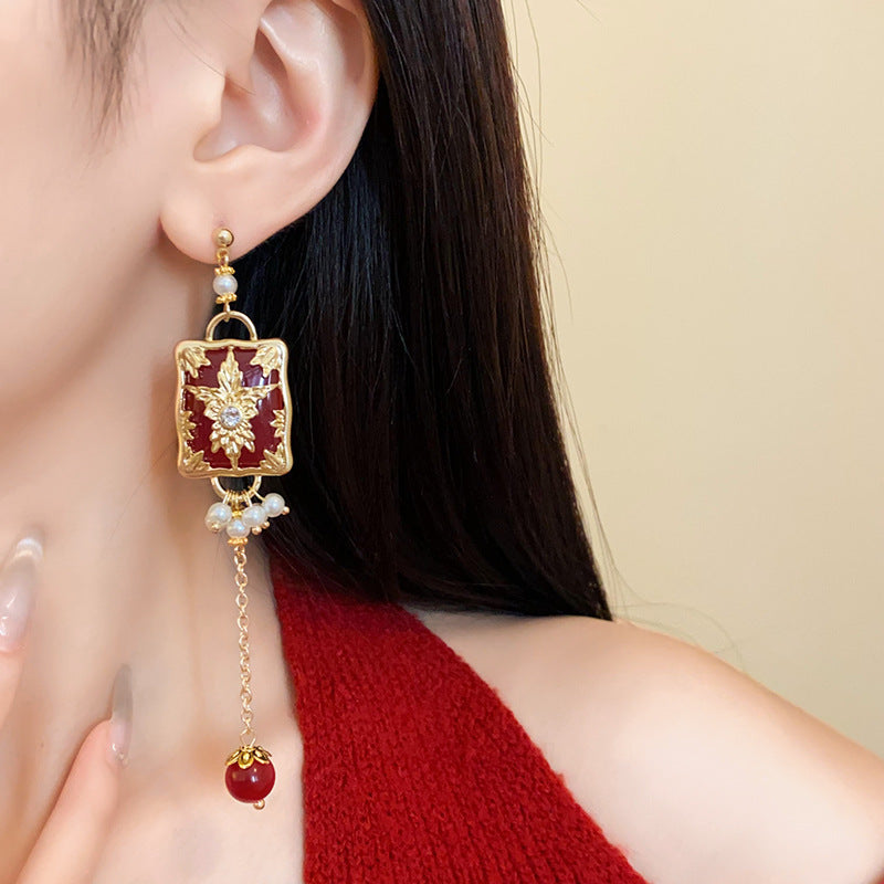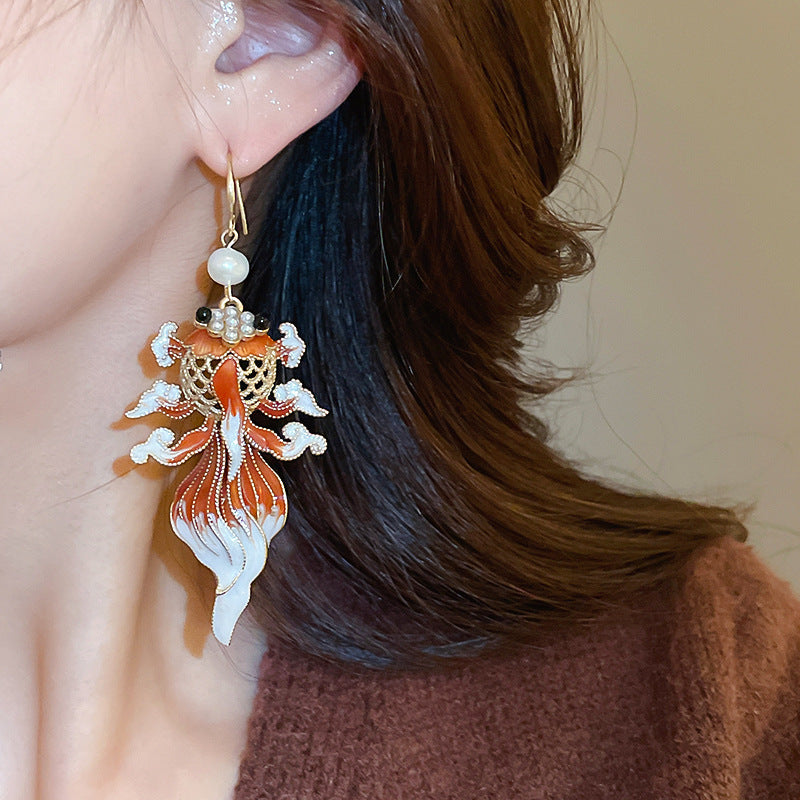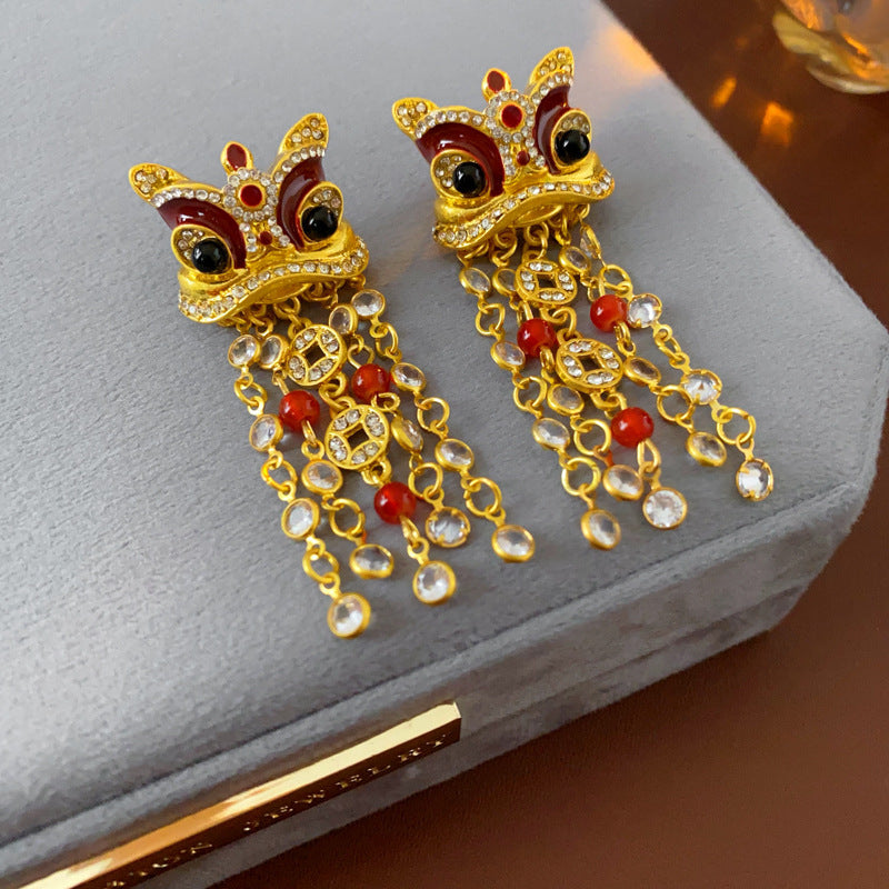 新中式紅色錦鯉醒獅流蘇耳環復古氣質宮廷風耳釘輕奢高級感耳飾女