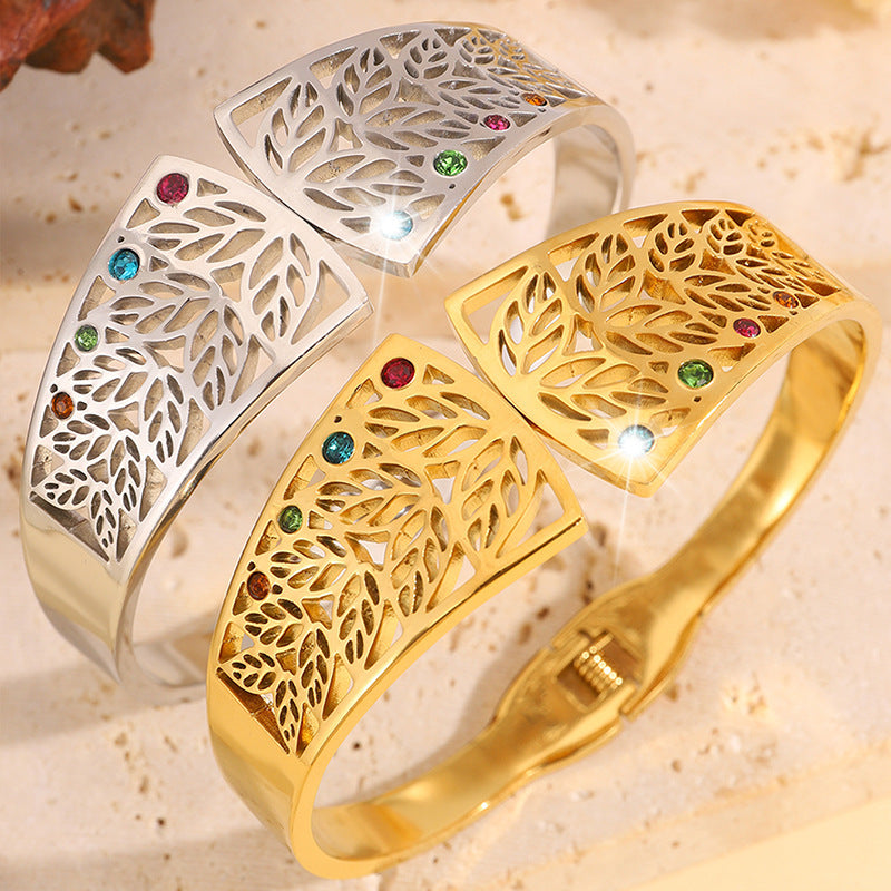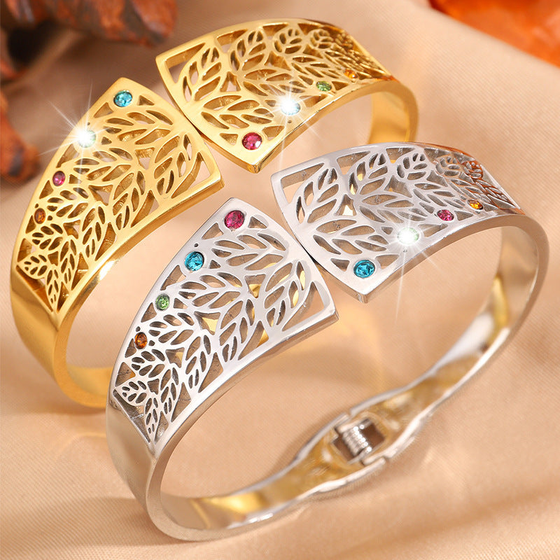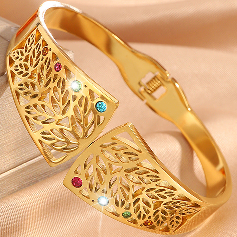 6CM/2.36IN: 金色鏤空樹葉彩鑽手鐲