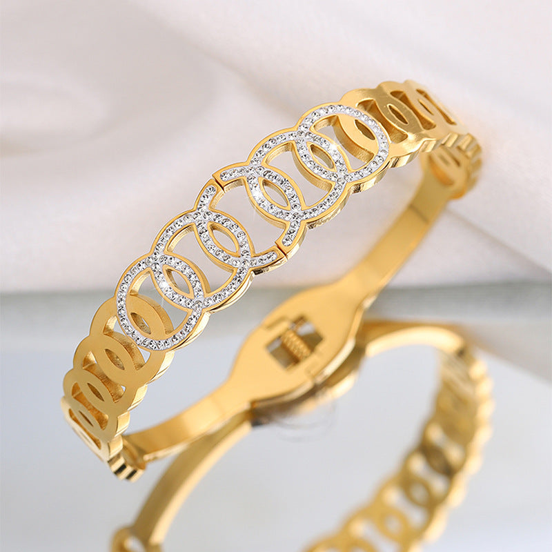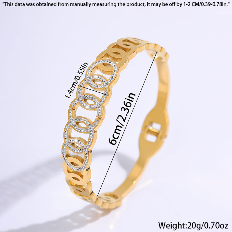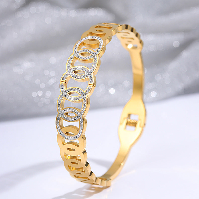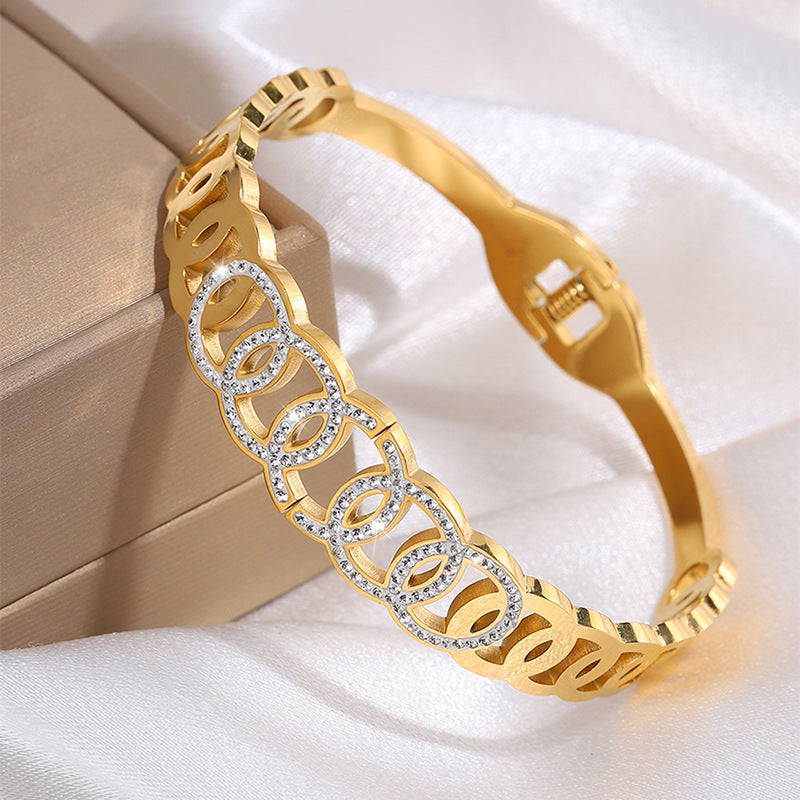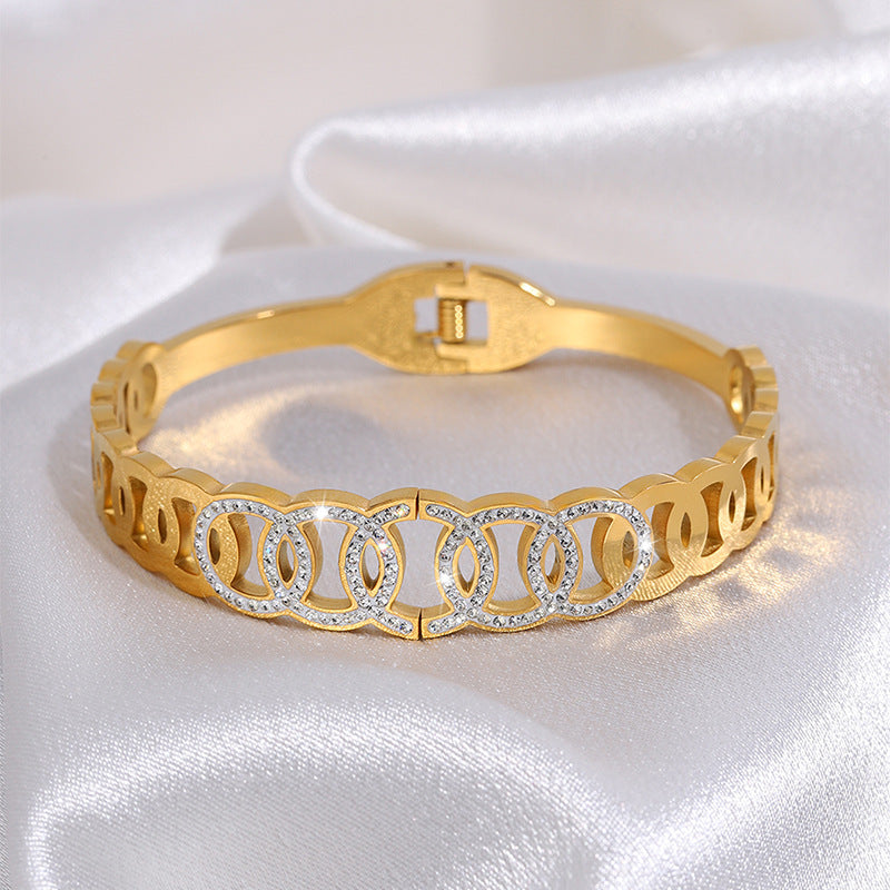 新款幸運五環滿鑽彈力開口手鐲女高級輕奢個性百搭鈦鋼不掉色手鐲
