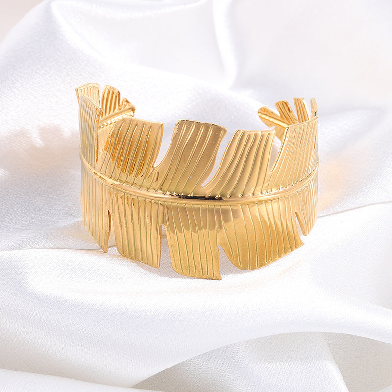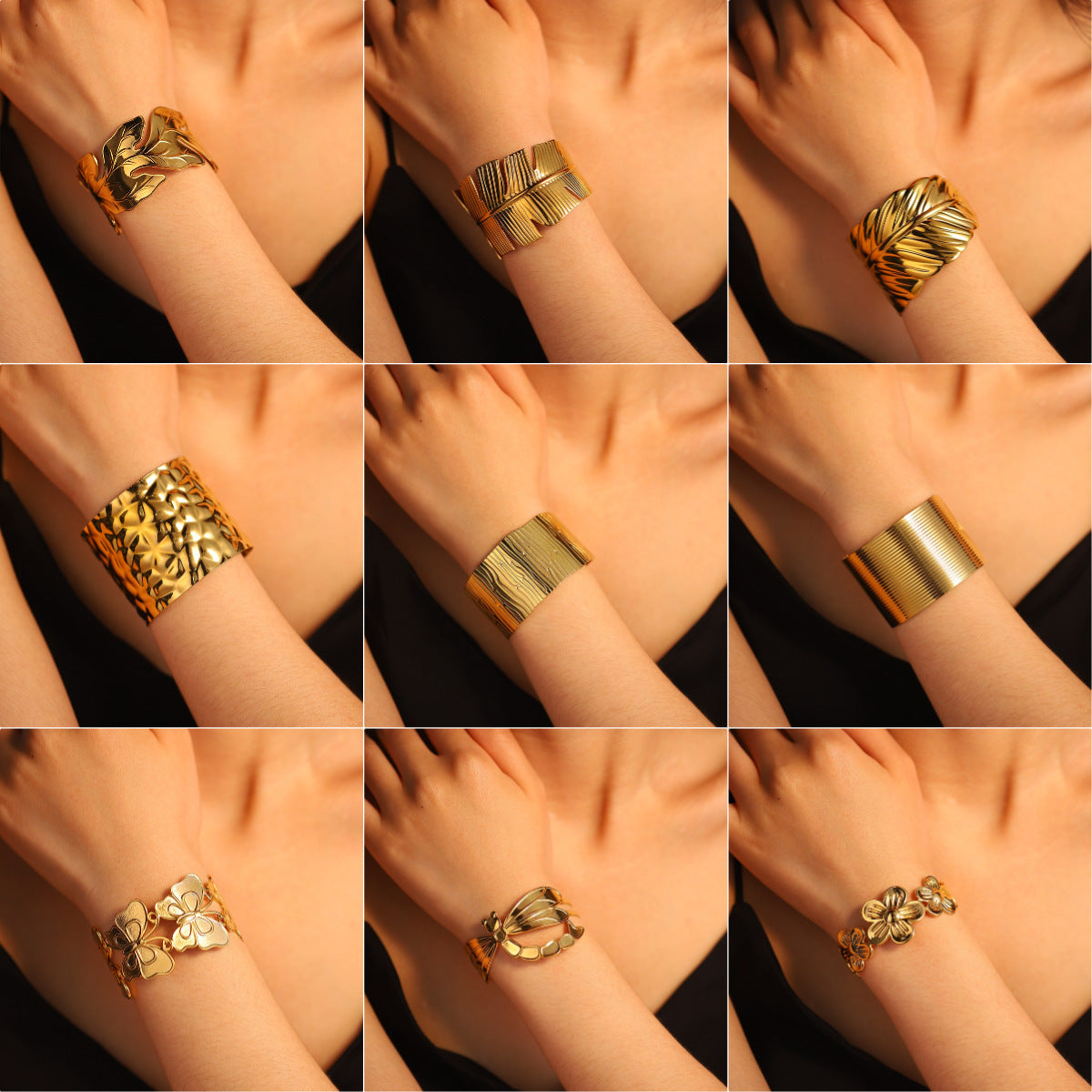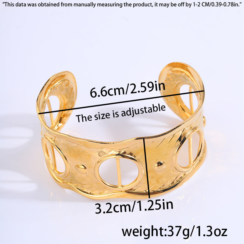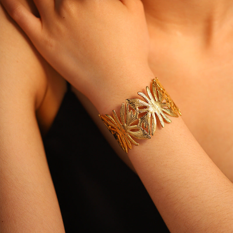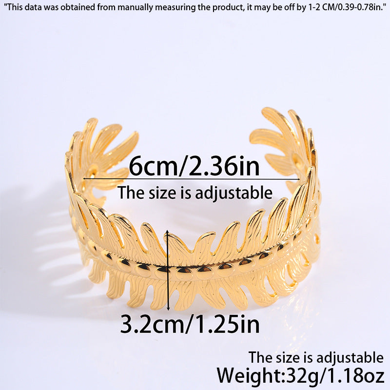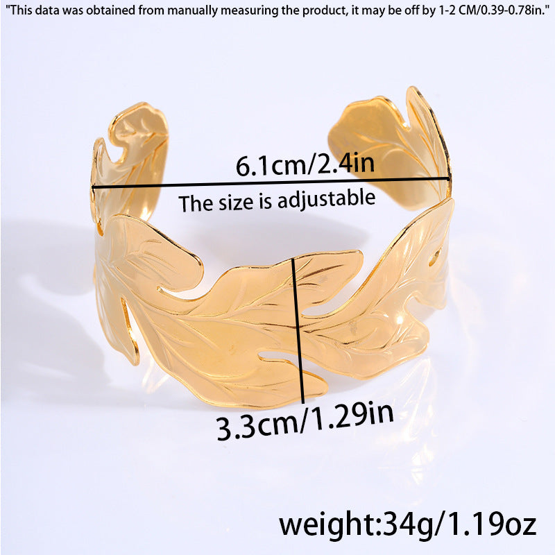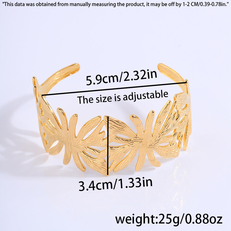 新款歐美寬版不鏽鋼手鐲可調節大小女樹葉系列鏤空氣質優雅手鐲