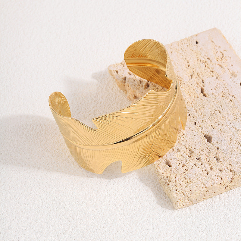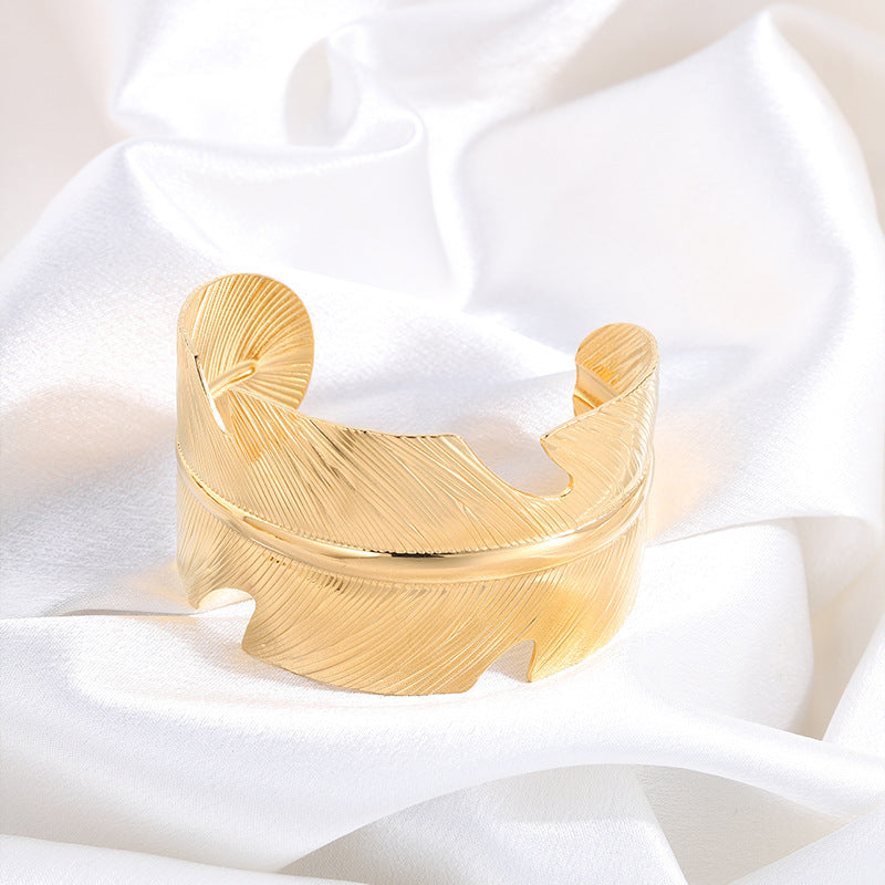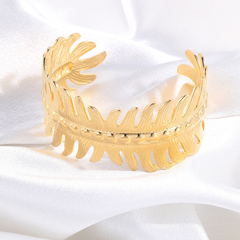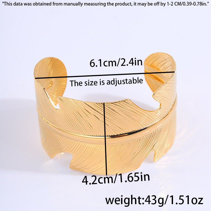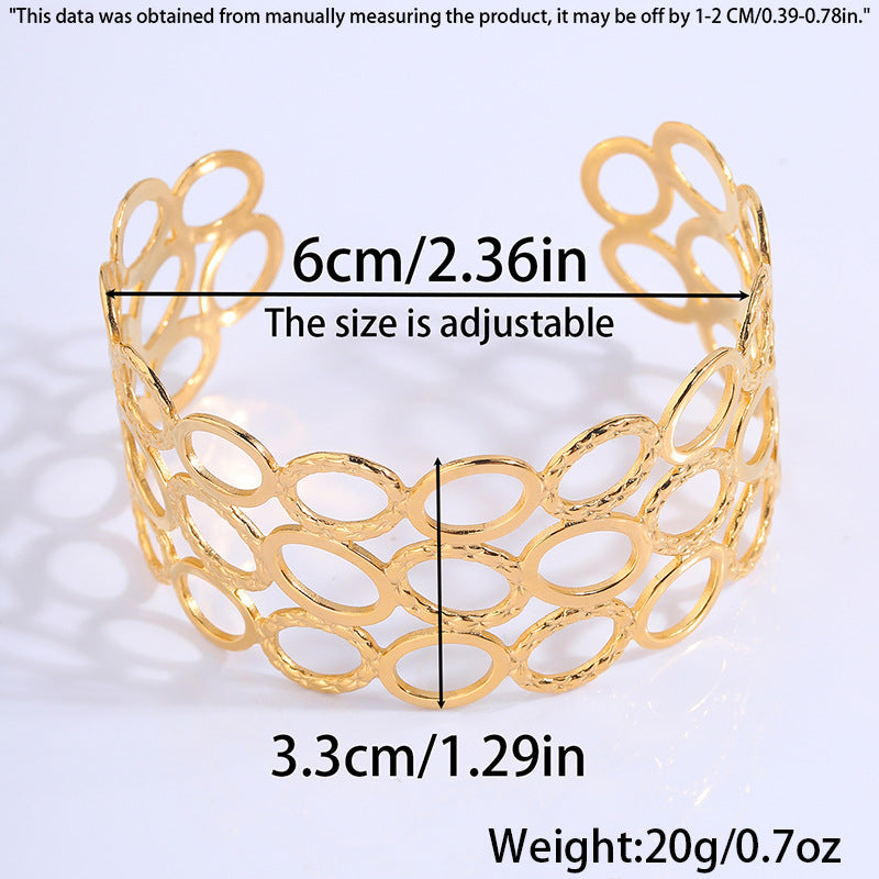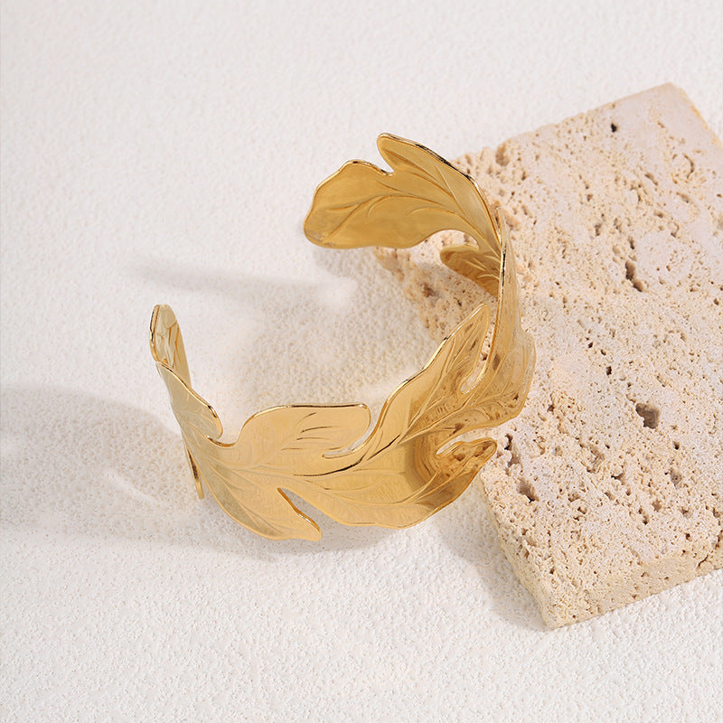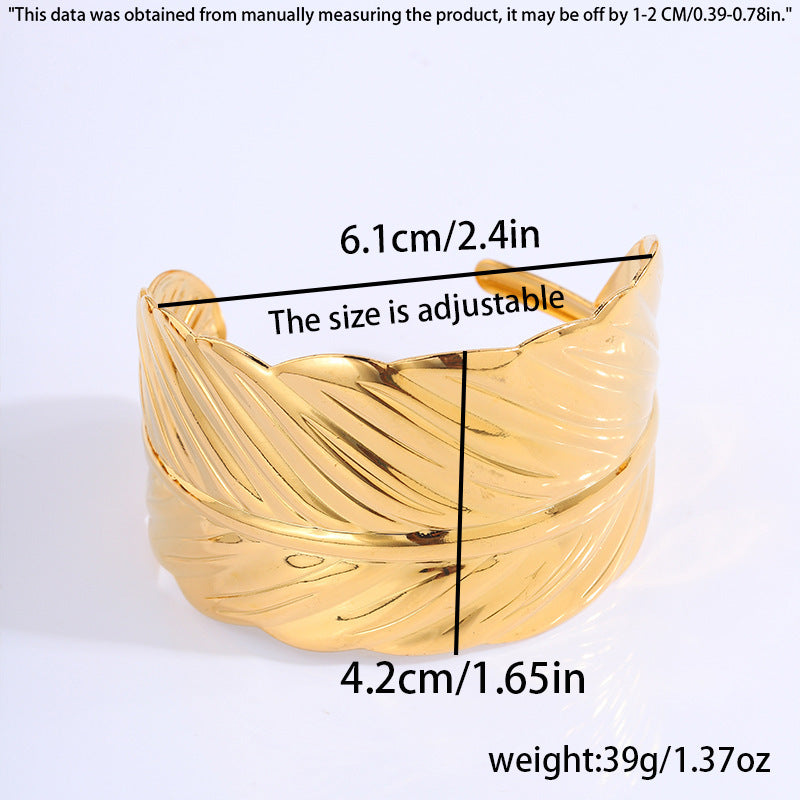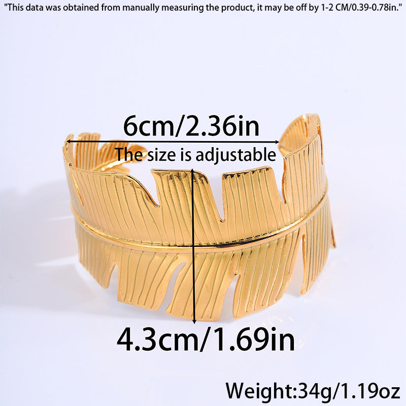 新款歐美寬版不鏽鋼手鐲可調節大小女樹葉系列鏤空氣質優雅手鐲