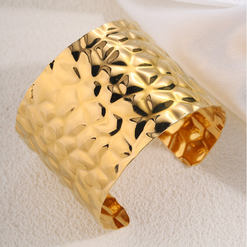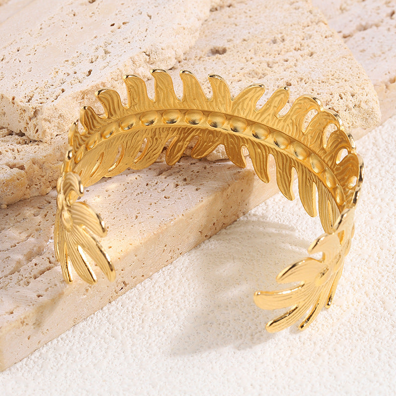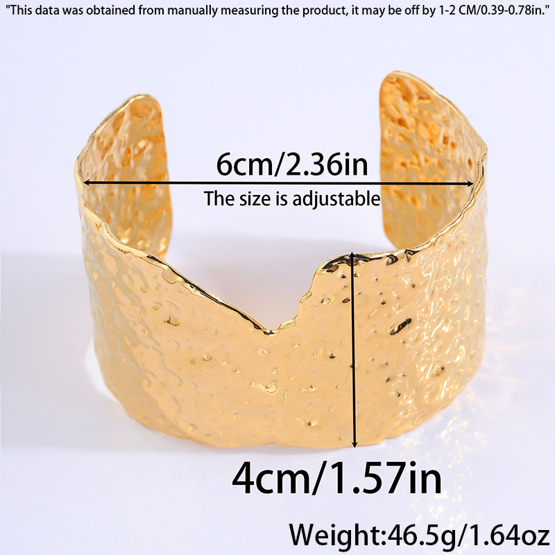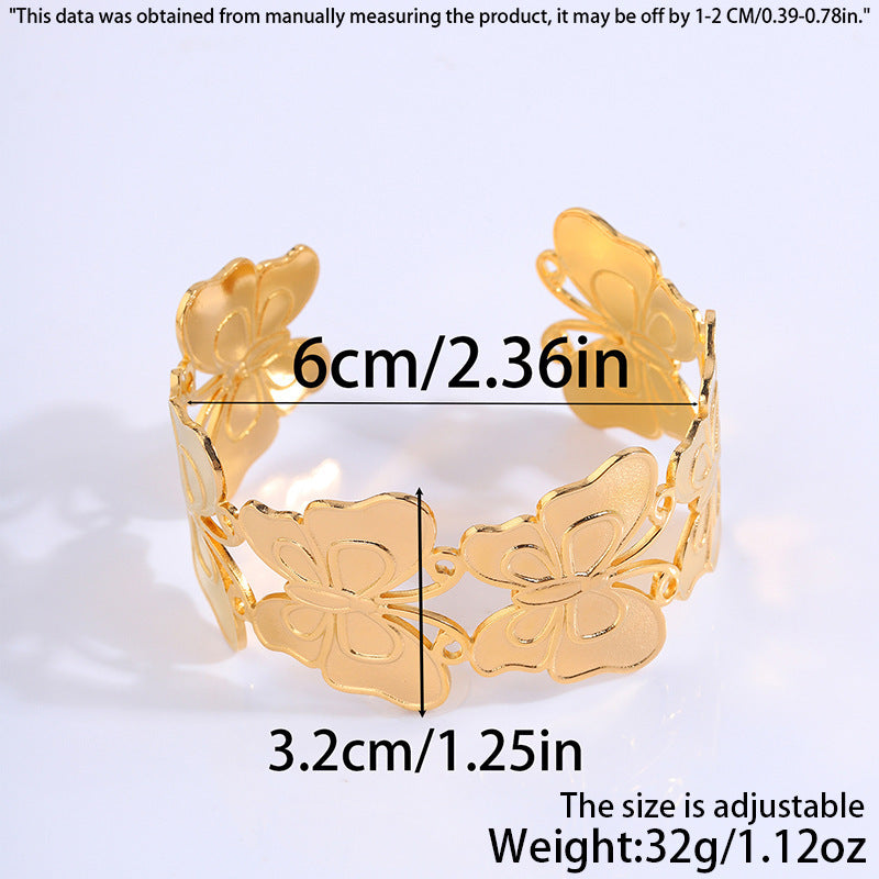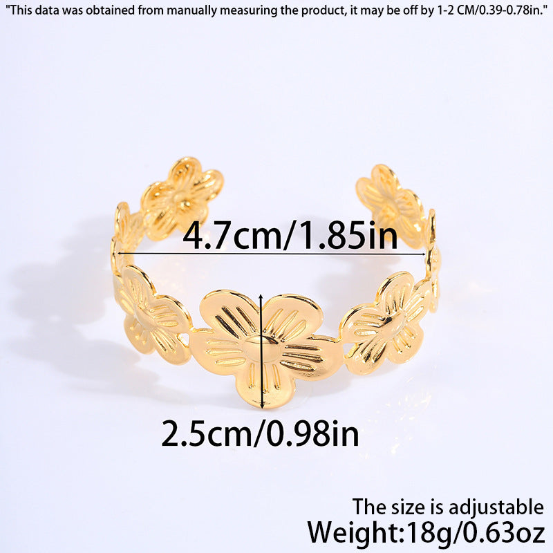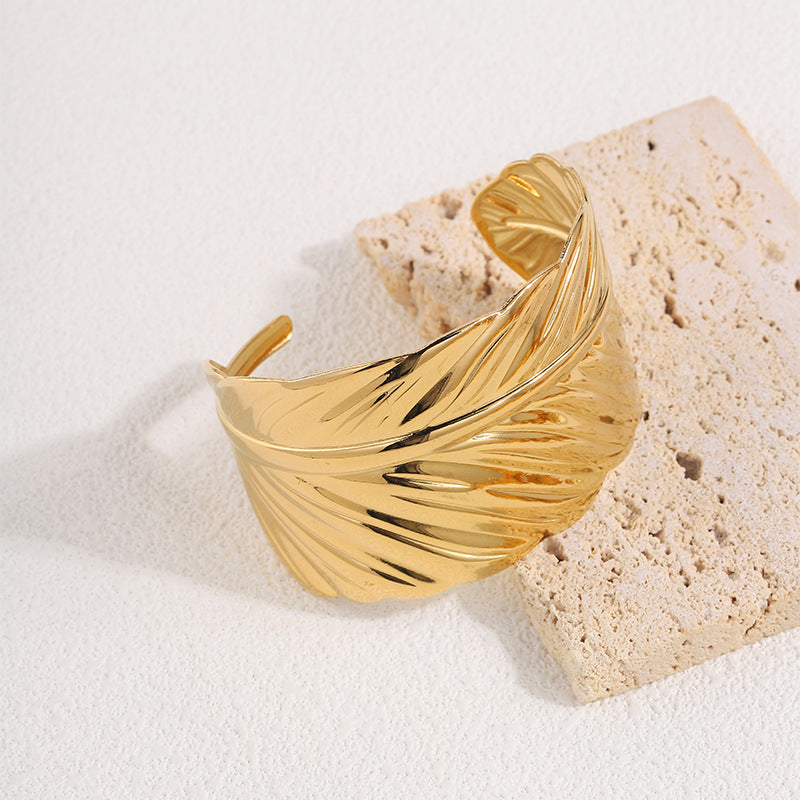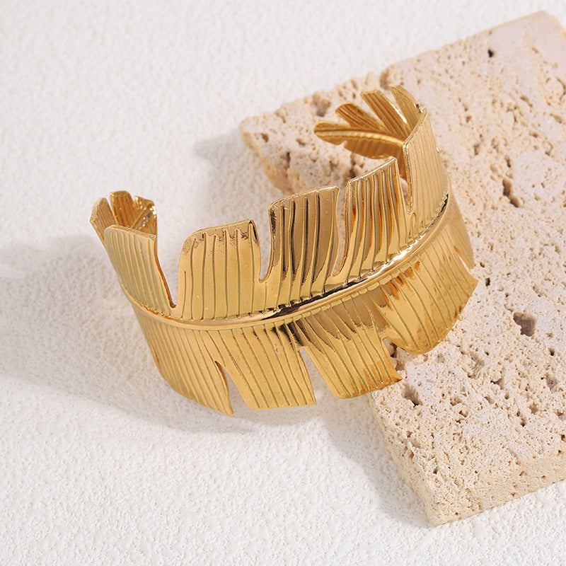 新款歐美寬版不鏽鋼手鐲可調節大小女樹葉系列鏤空氣質優雅手鐲