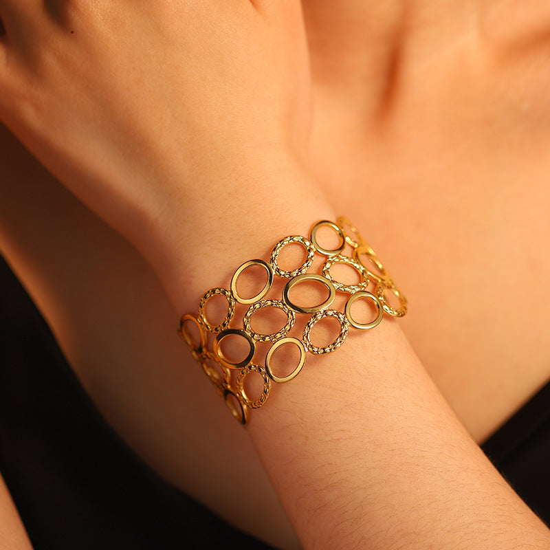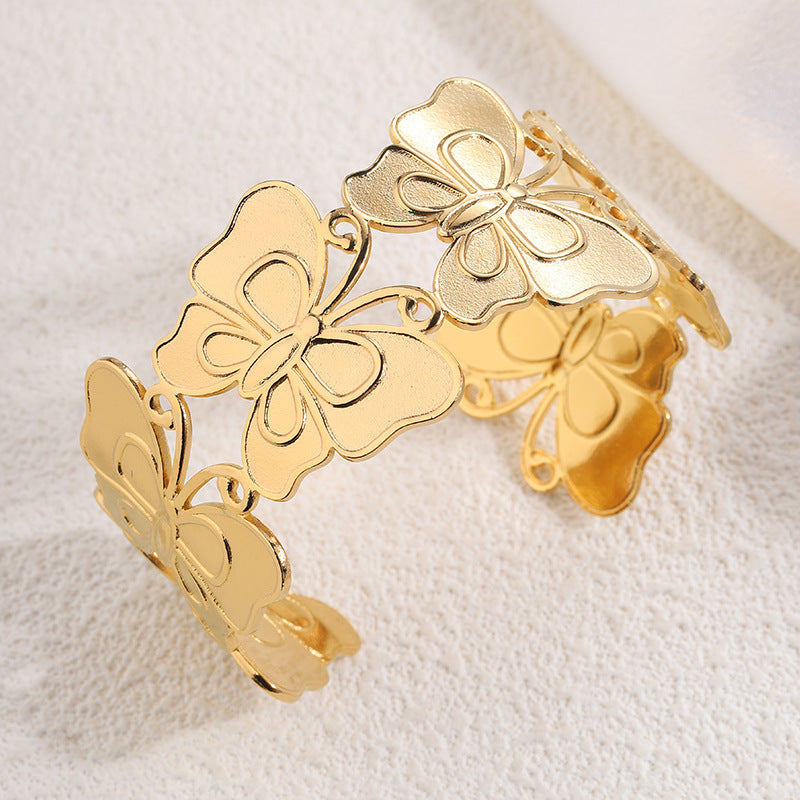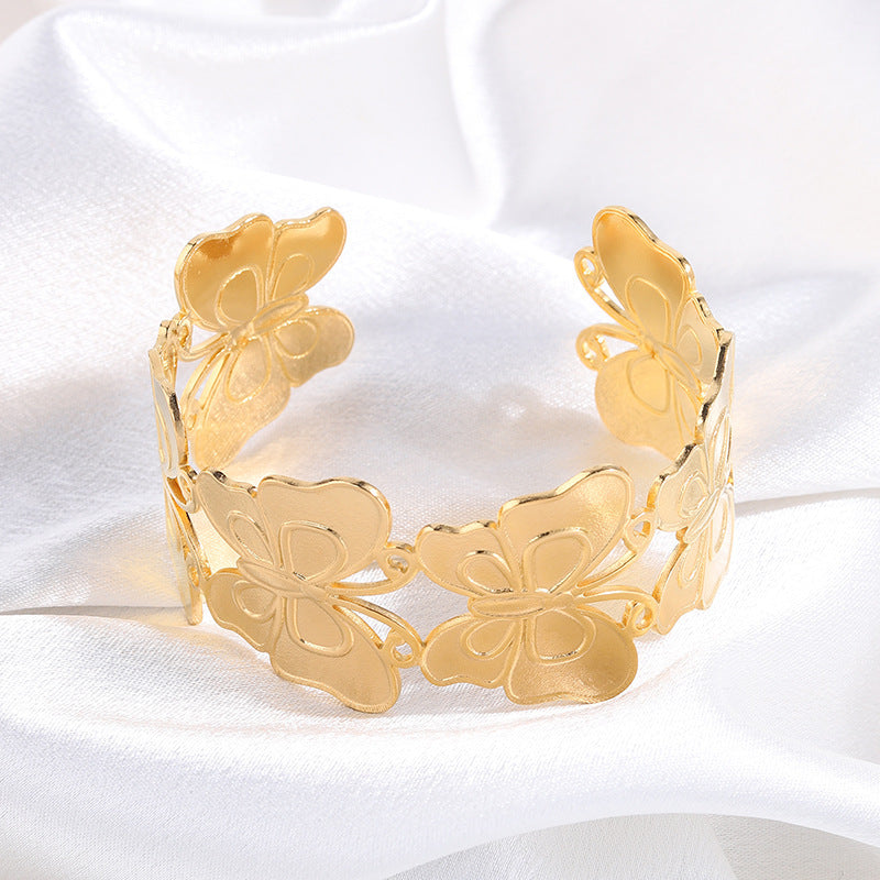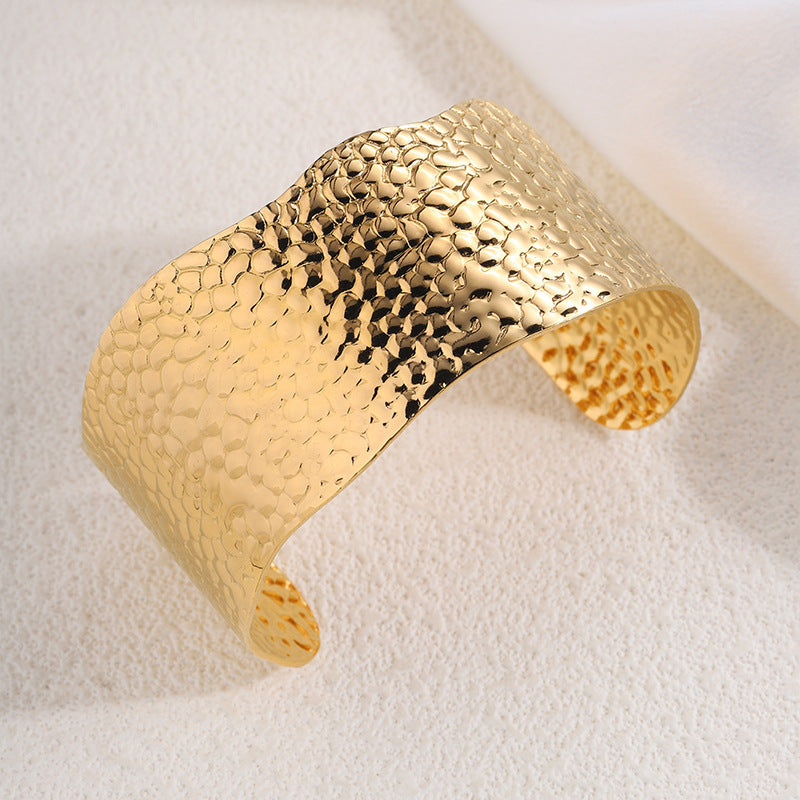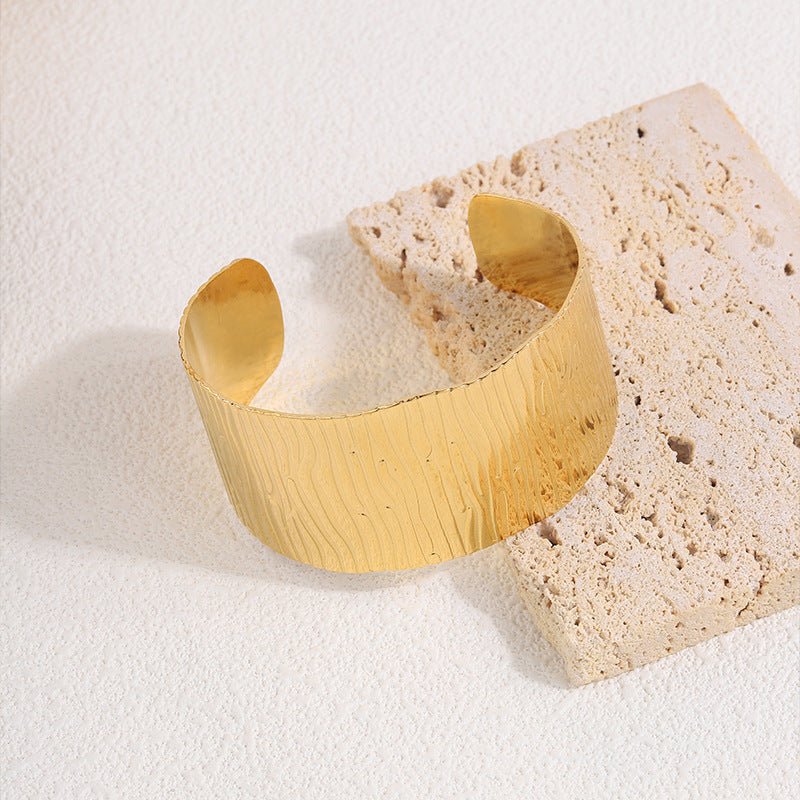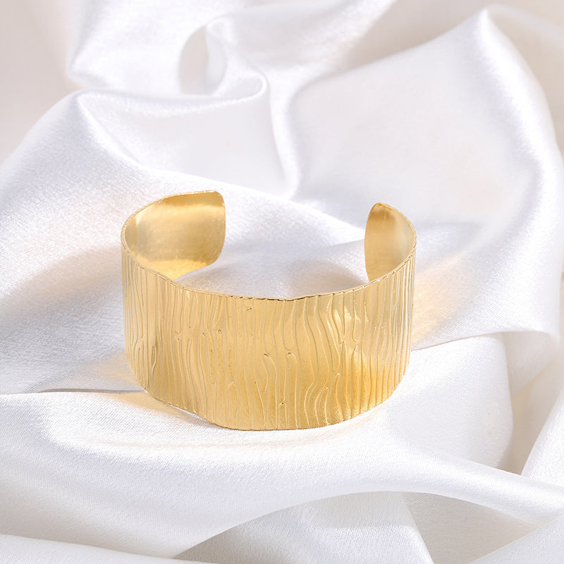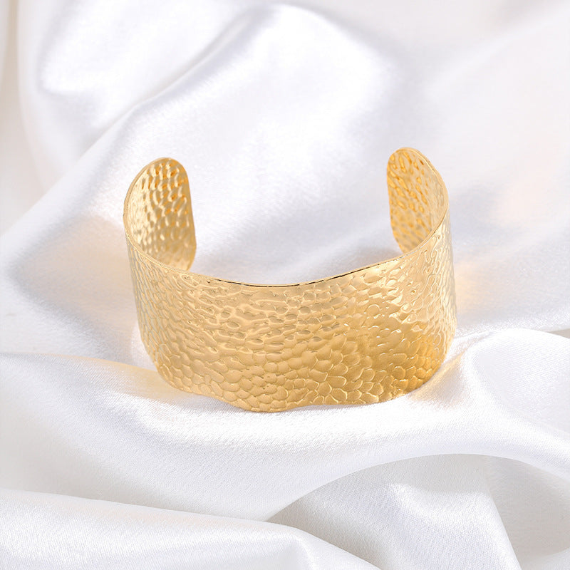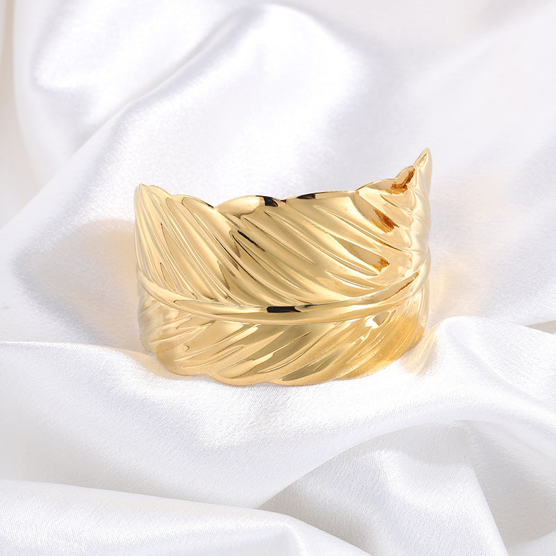 新款歐美寬版不鏽鋼手鐲可調節大小女樹葉系列鏤空氣質優雅手鐲