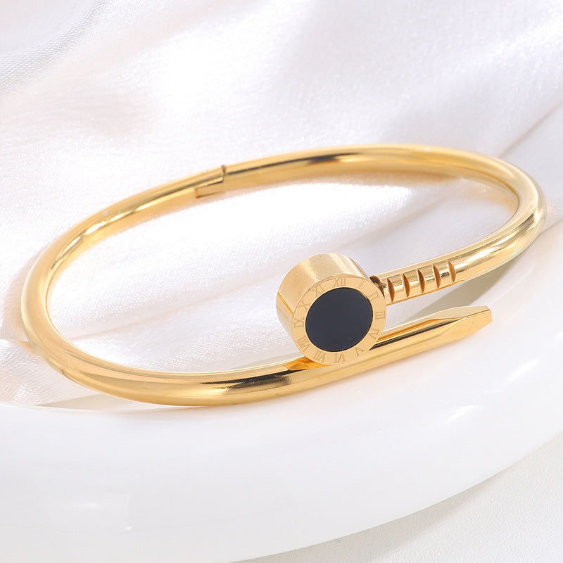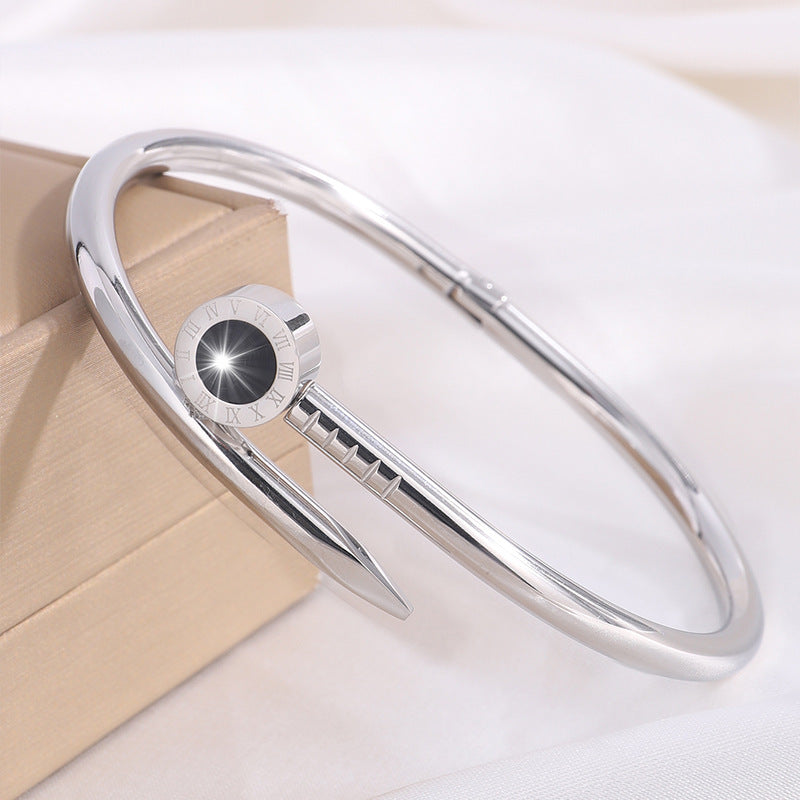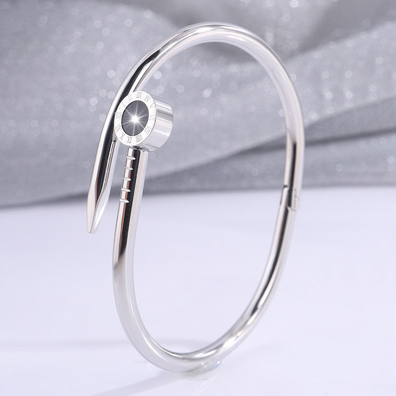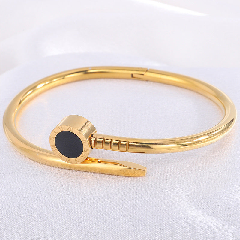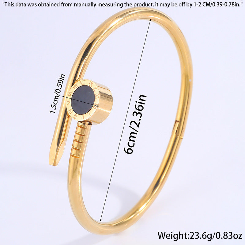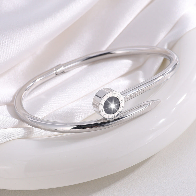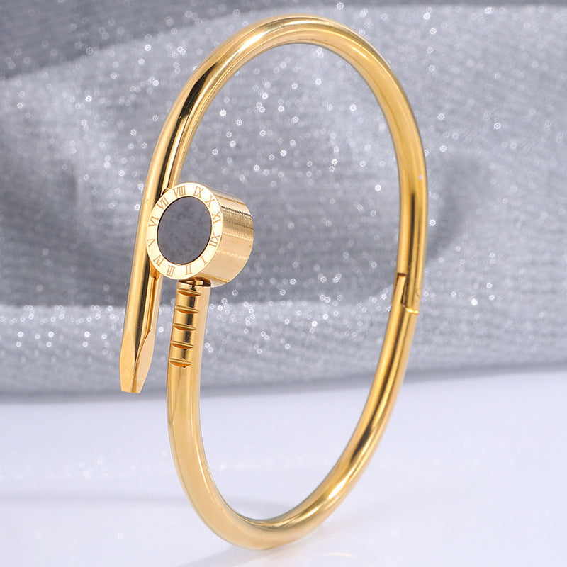 新款羅馬文鈦鋼手鐲歐美跨境釘子不掉色手環女高級感時尚輕奢手飾