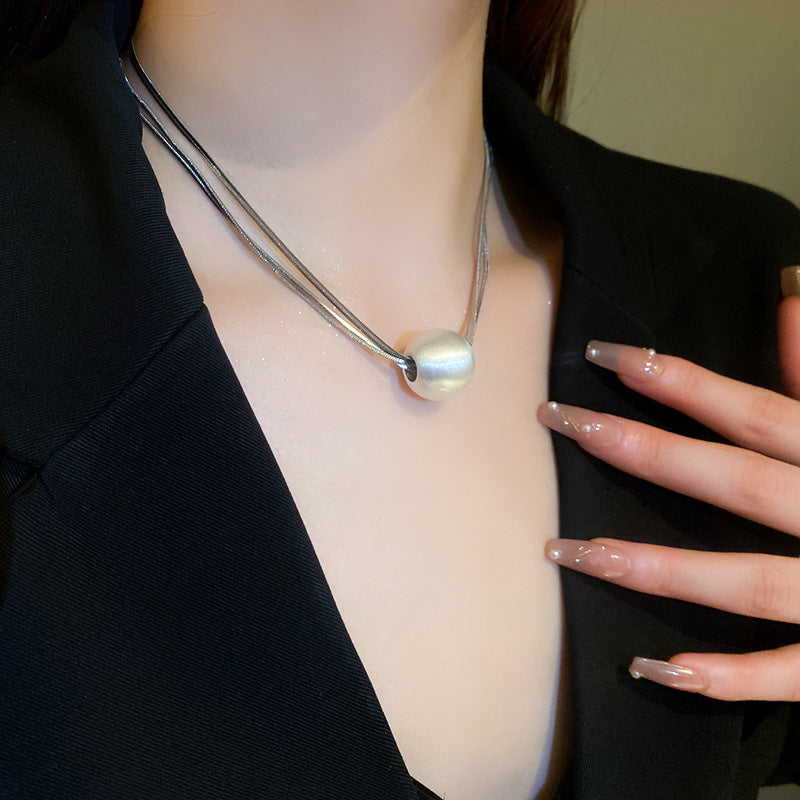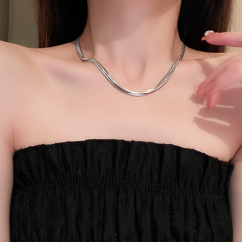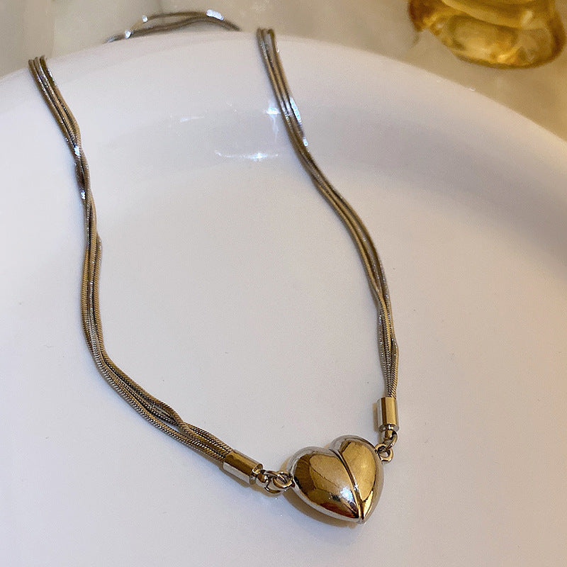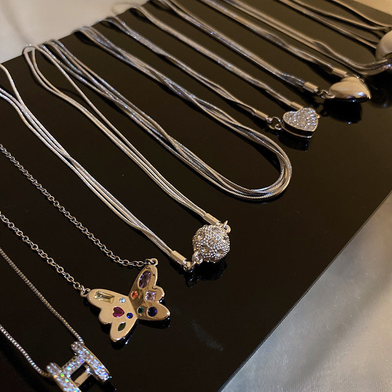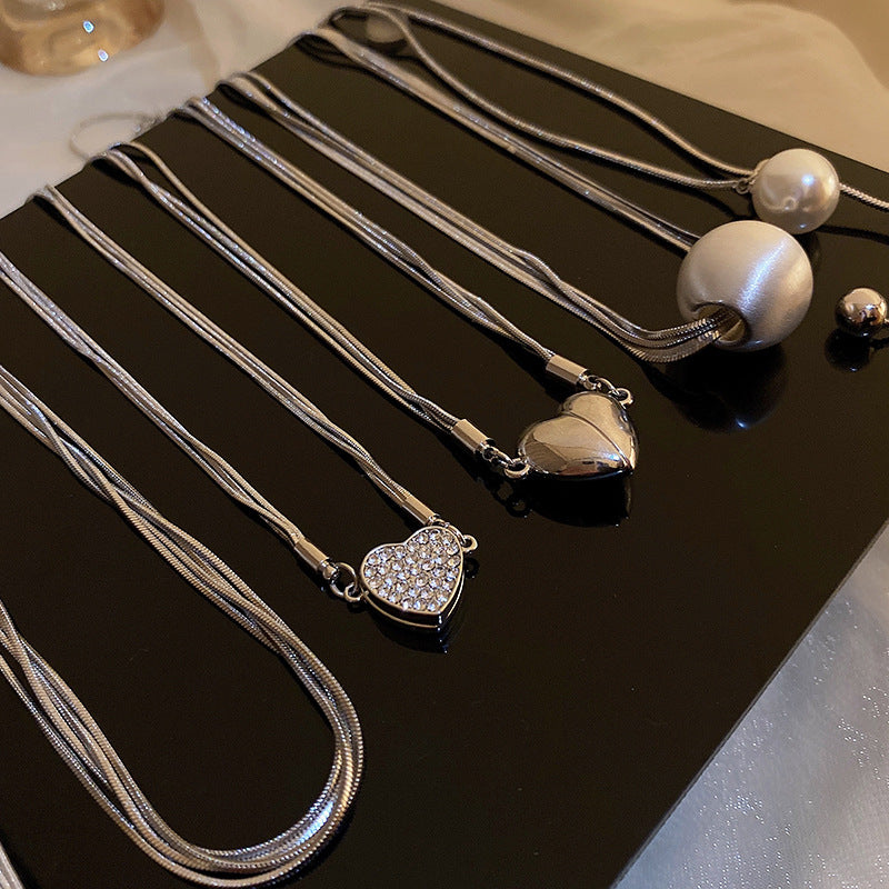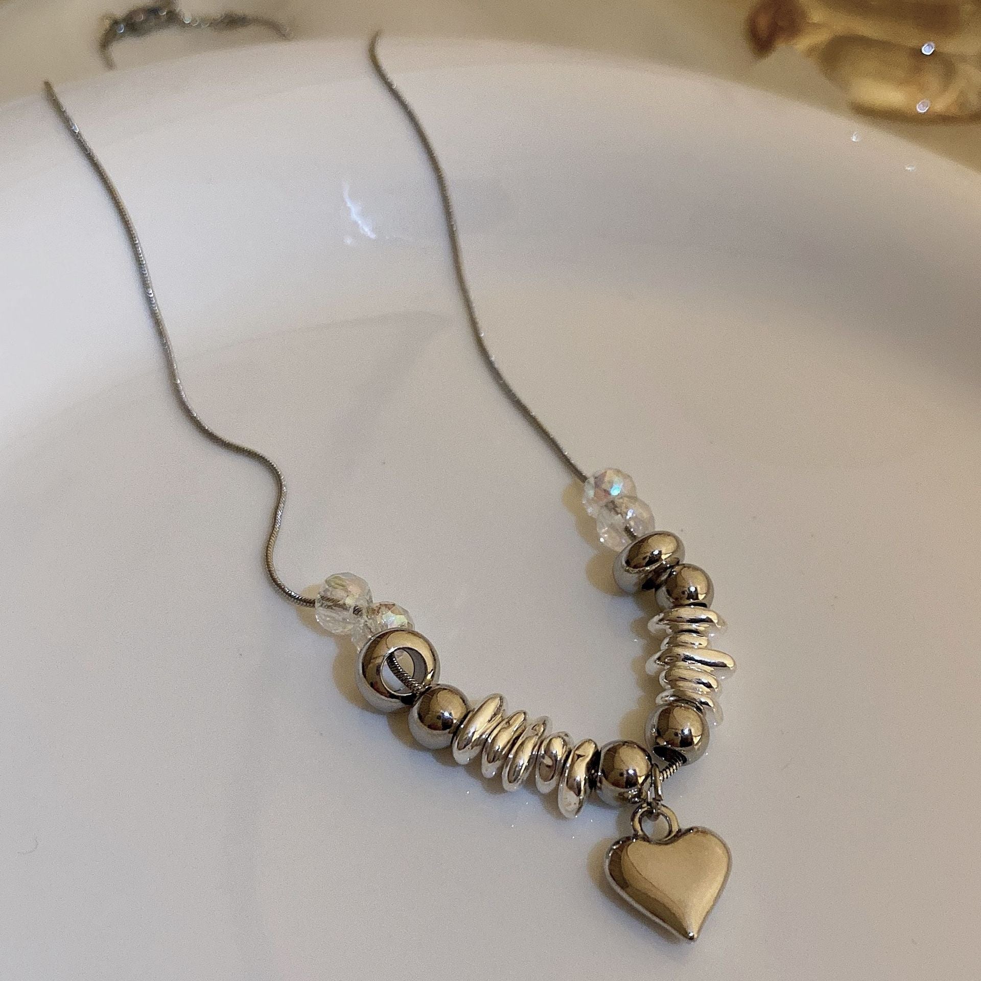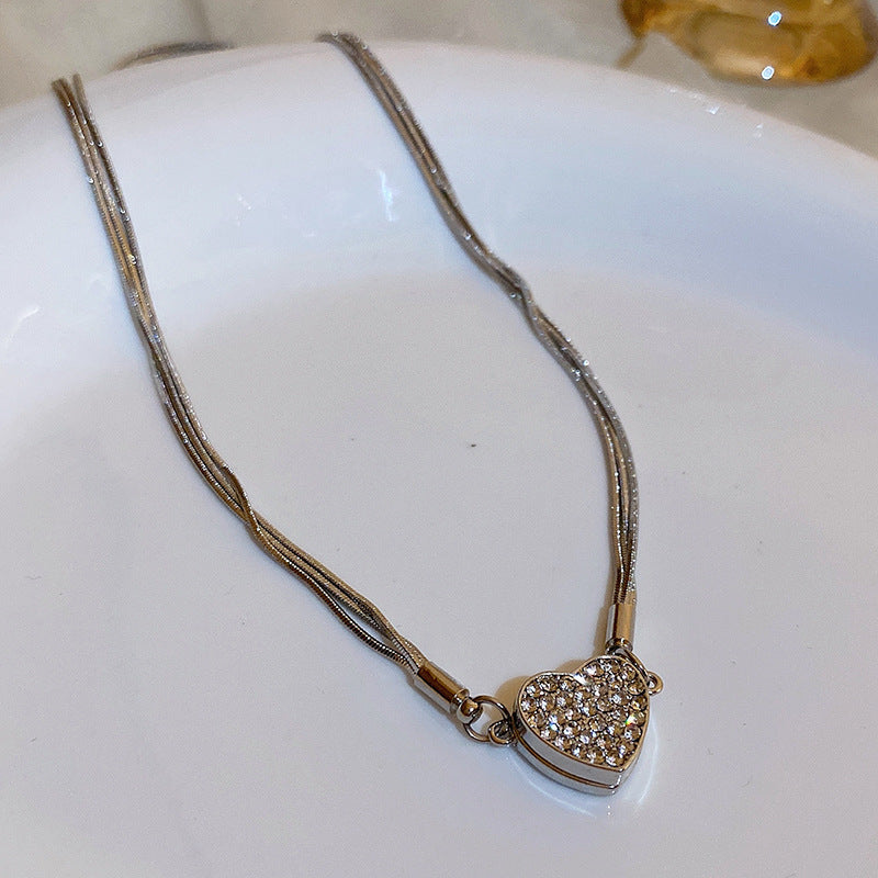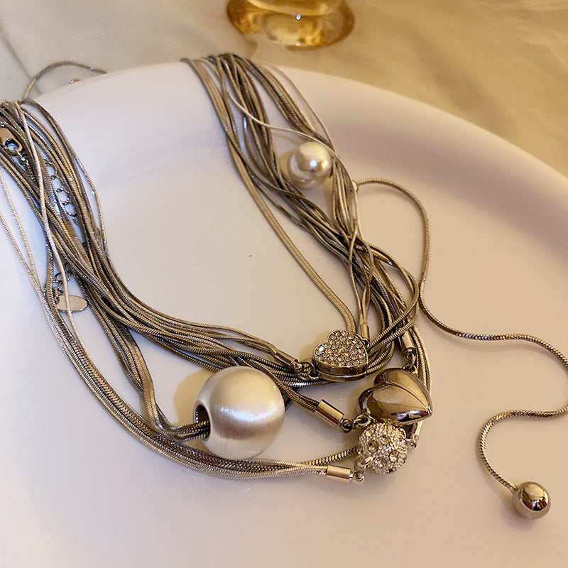 時尚冷淡風鑲鑽愛心圓珠多層蛇骨項鍊氣質鎖骨鏈網紅個性輕奢項飾